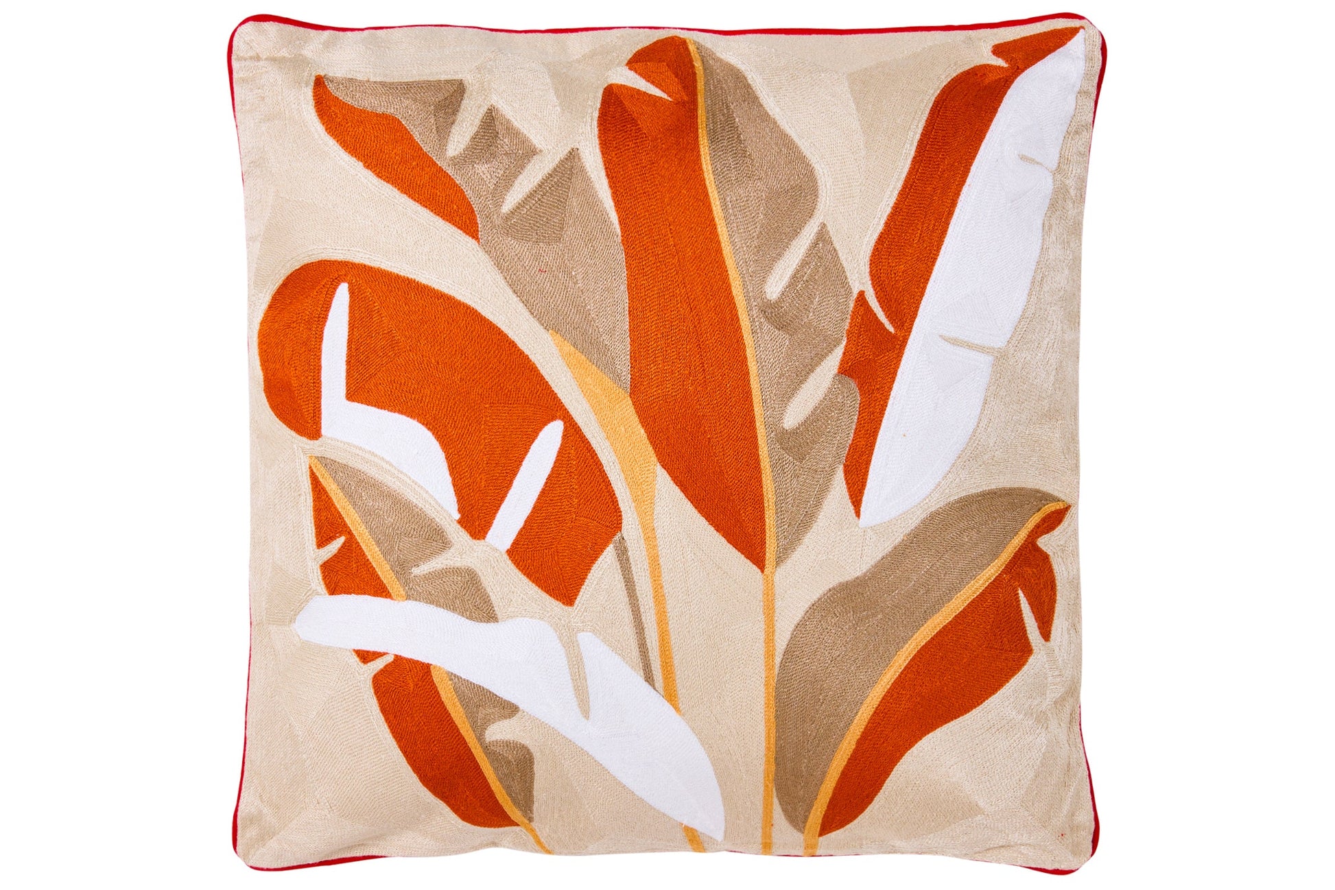 Ricamo - Cuscino Foglie di banano arancioni e beige