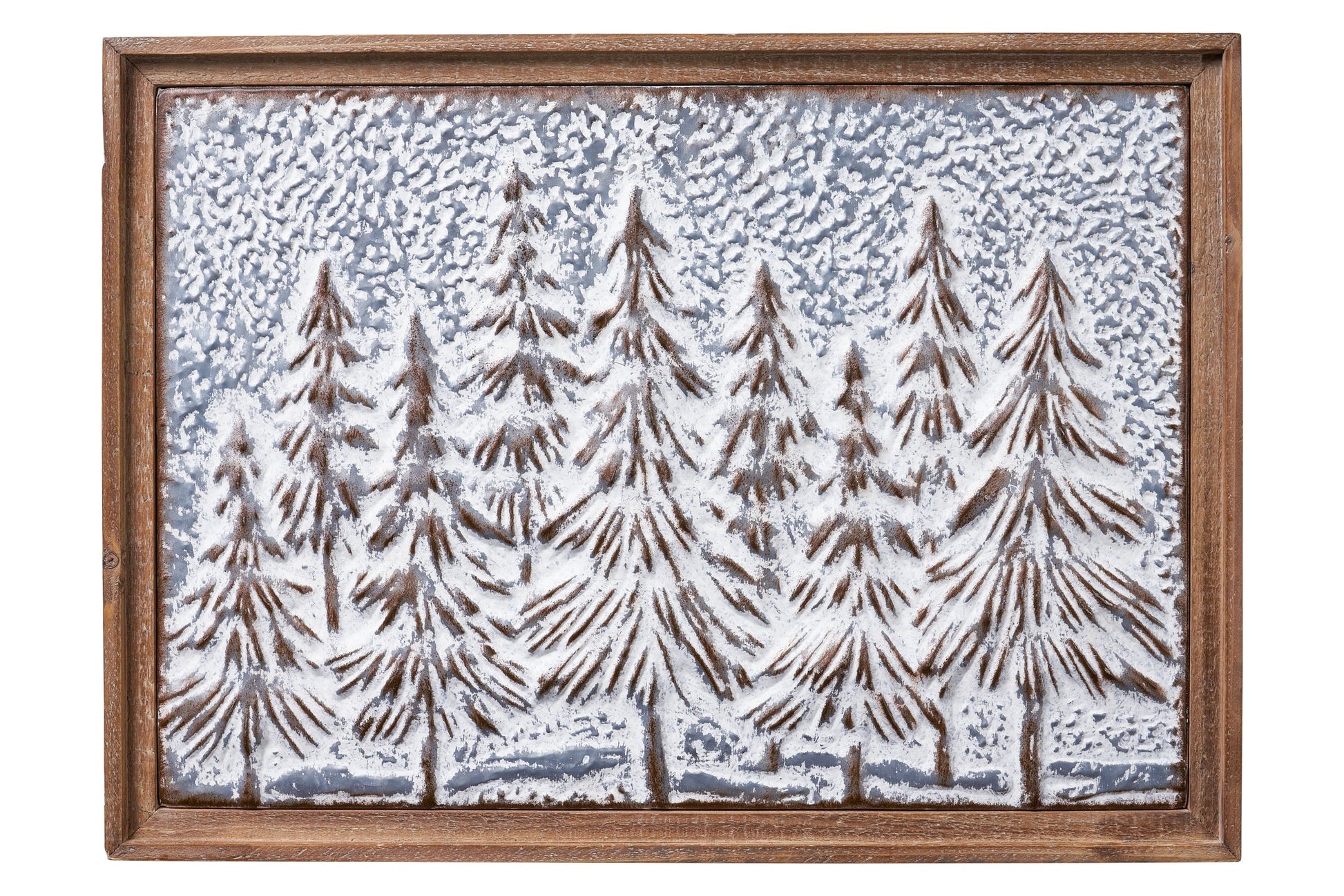 Merry - Quadretto Metallo Cornice Legno Bosco Innevato