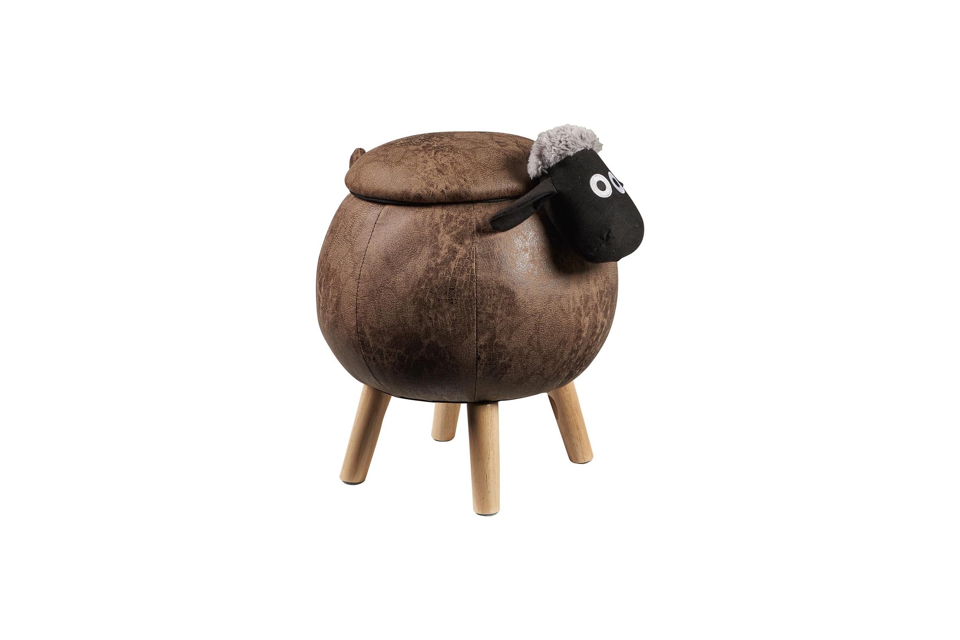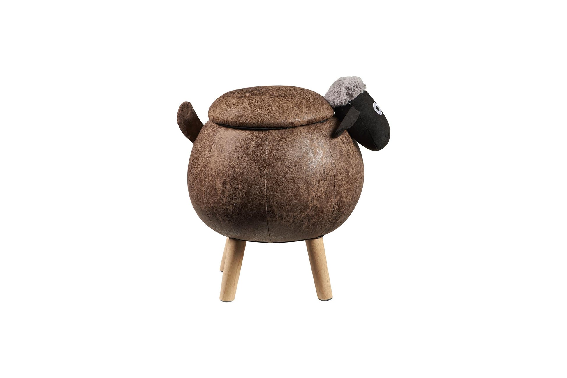 Pouf imbottito finta pelle,legno - pecorella c/contenito