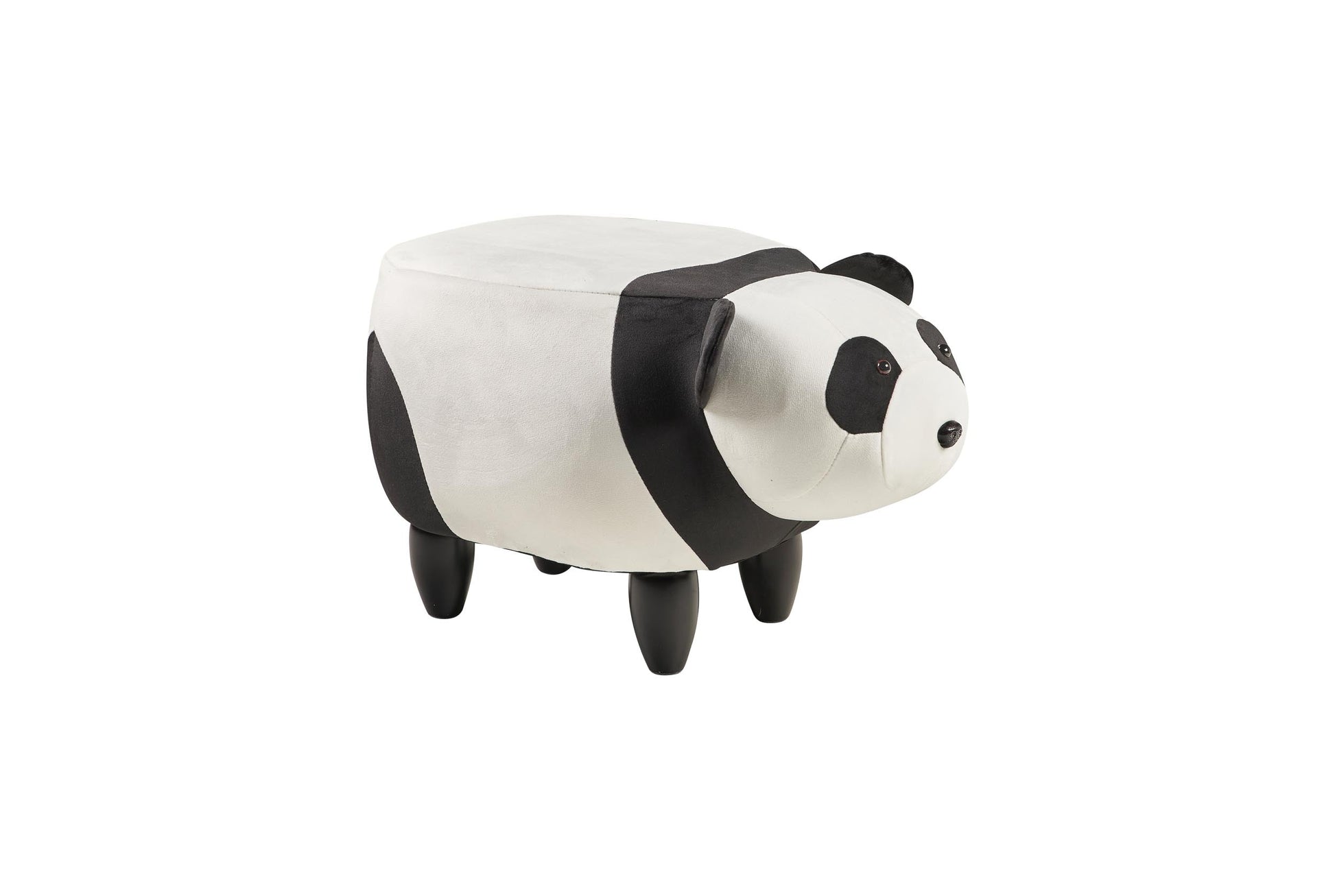 Pouf imbottito pelliccia sintetica, legno - panda