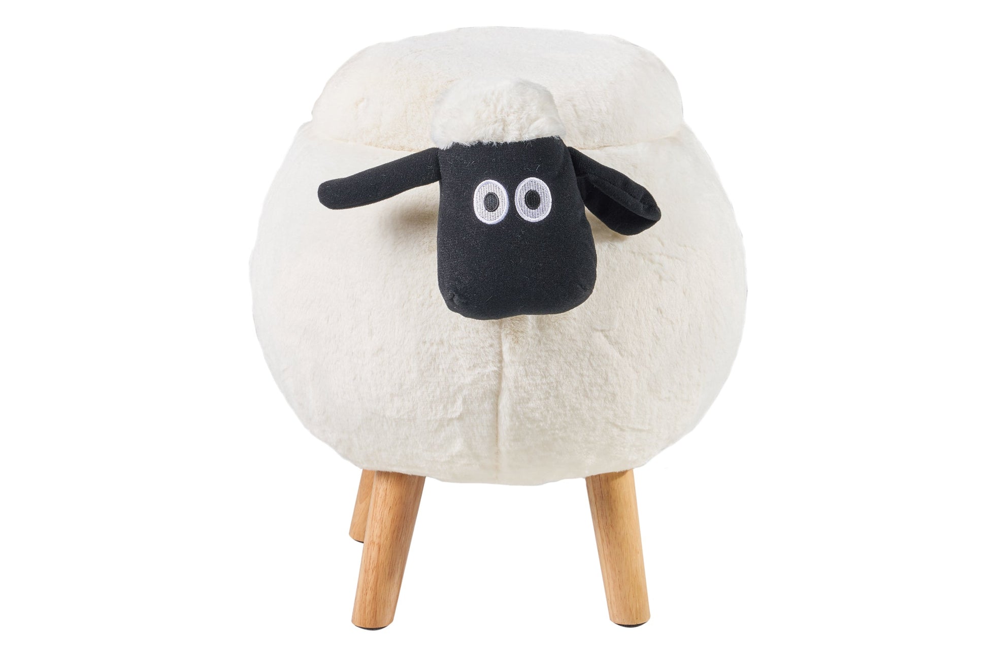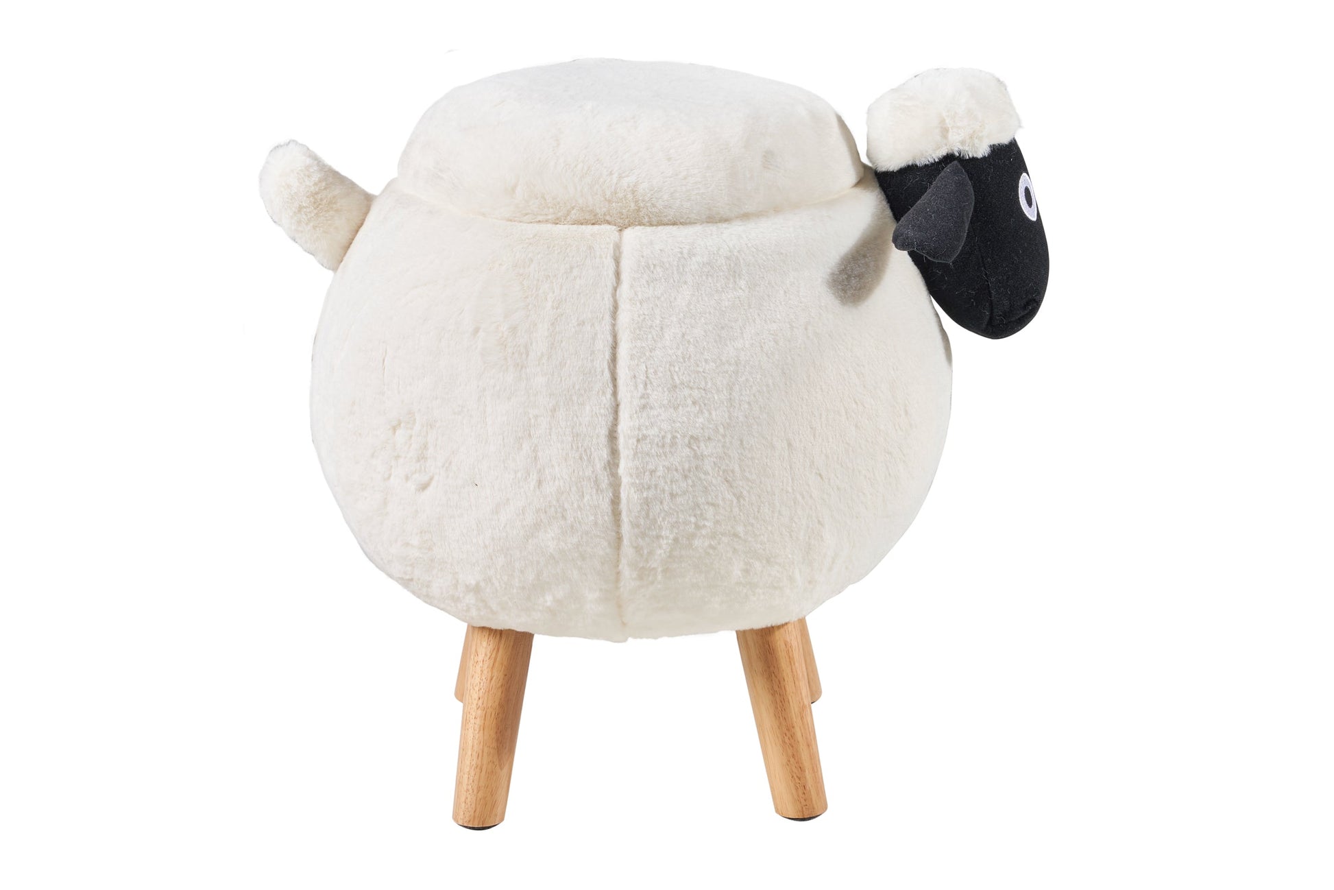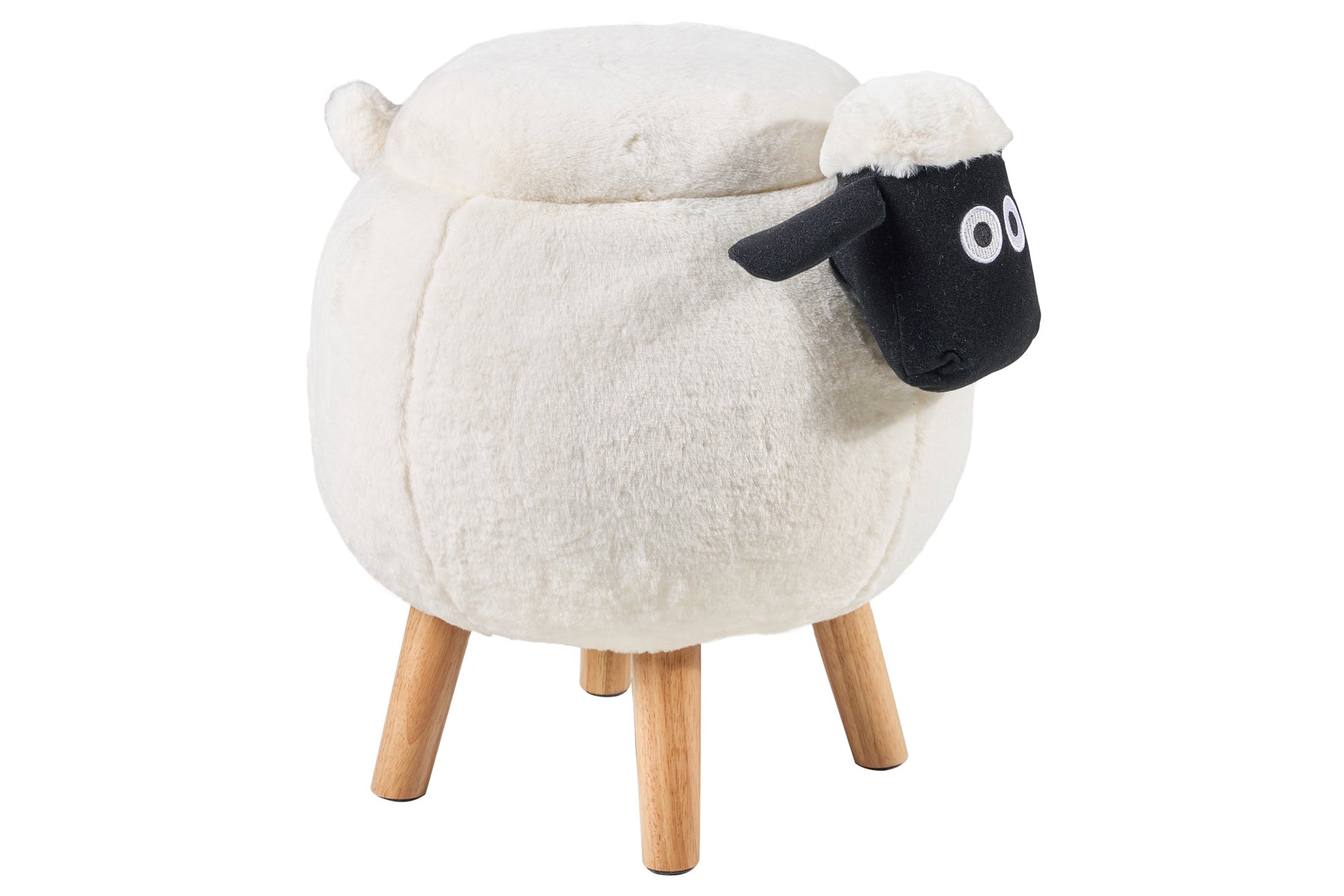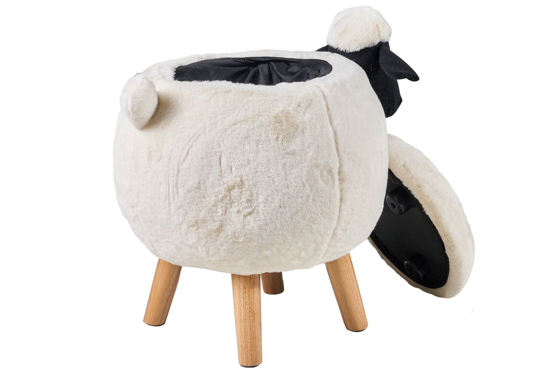 Puof imbottito pelliccia sintetica - pecorella bianca c/contenit
