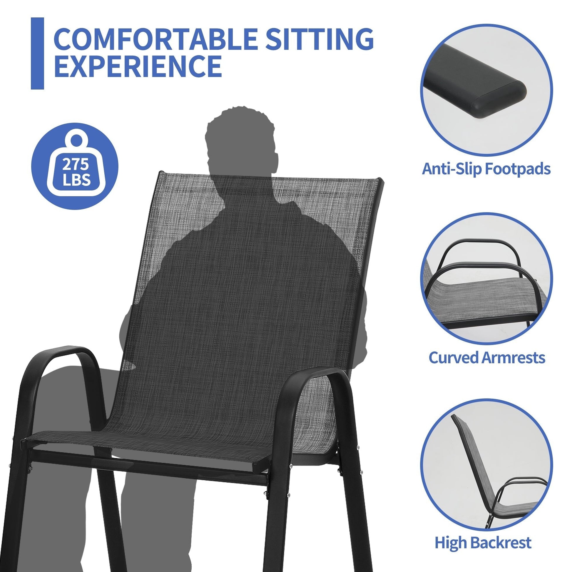 • Il tessuto in textilene della sedia impilabile è traspirante, impermeabile e facile da pulire per un uso duraturo