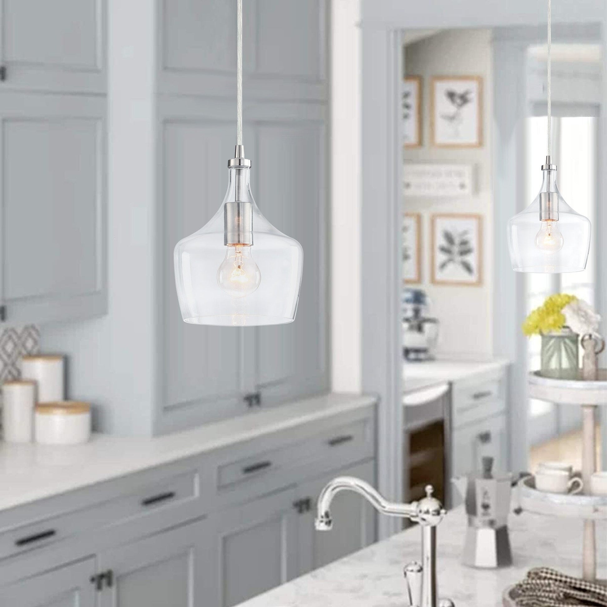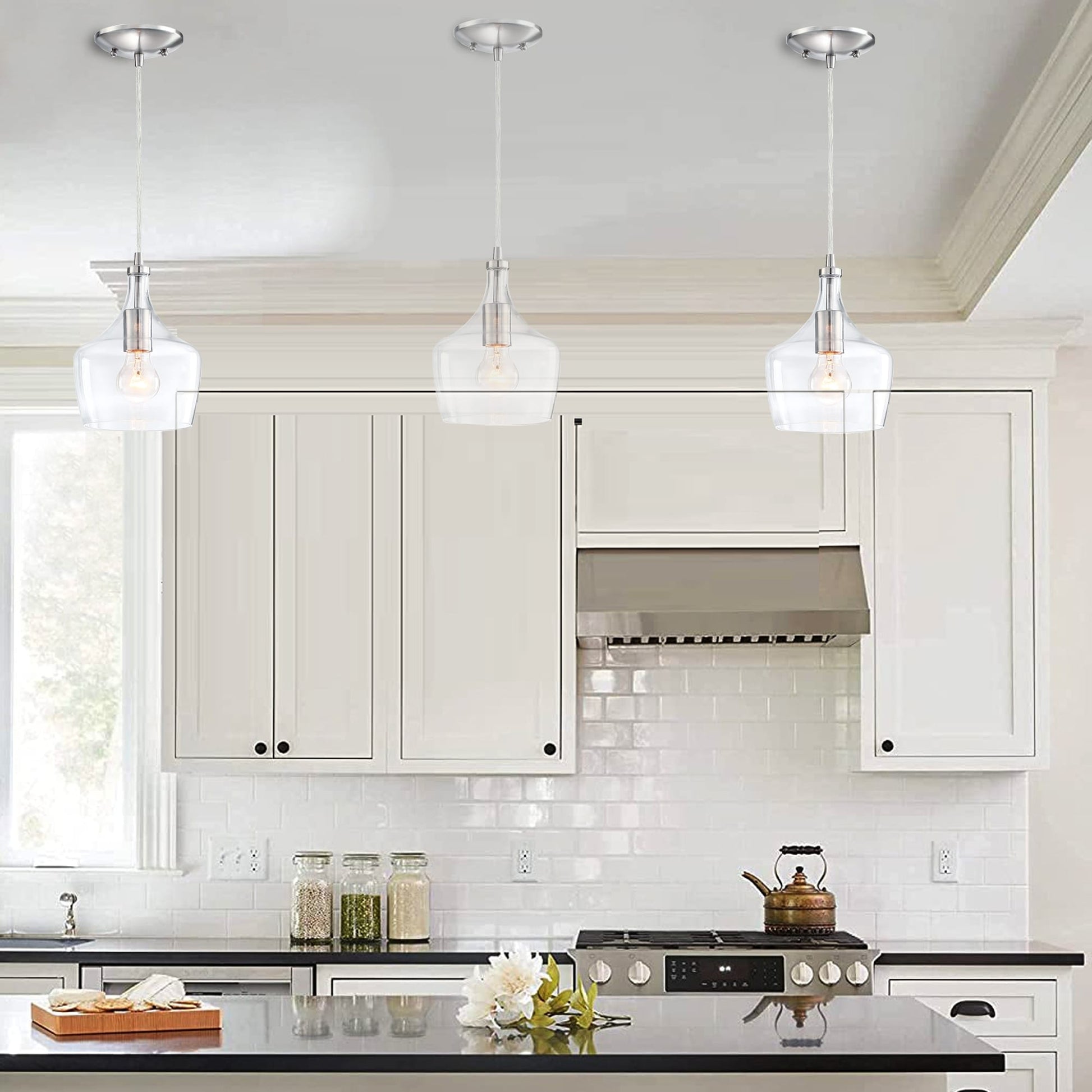 Lampadario a goccia in vetro trasparente per isola da cucina a 1 luce (è possibile scegliere tra 1 o 3 confezioni)