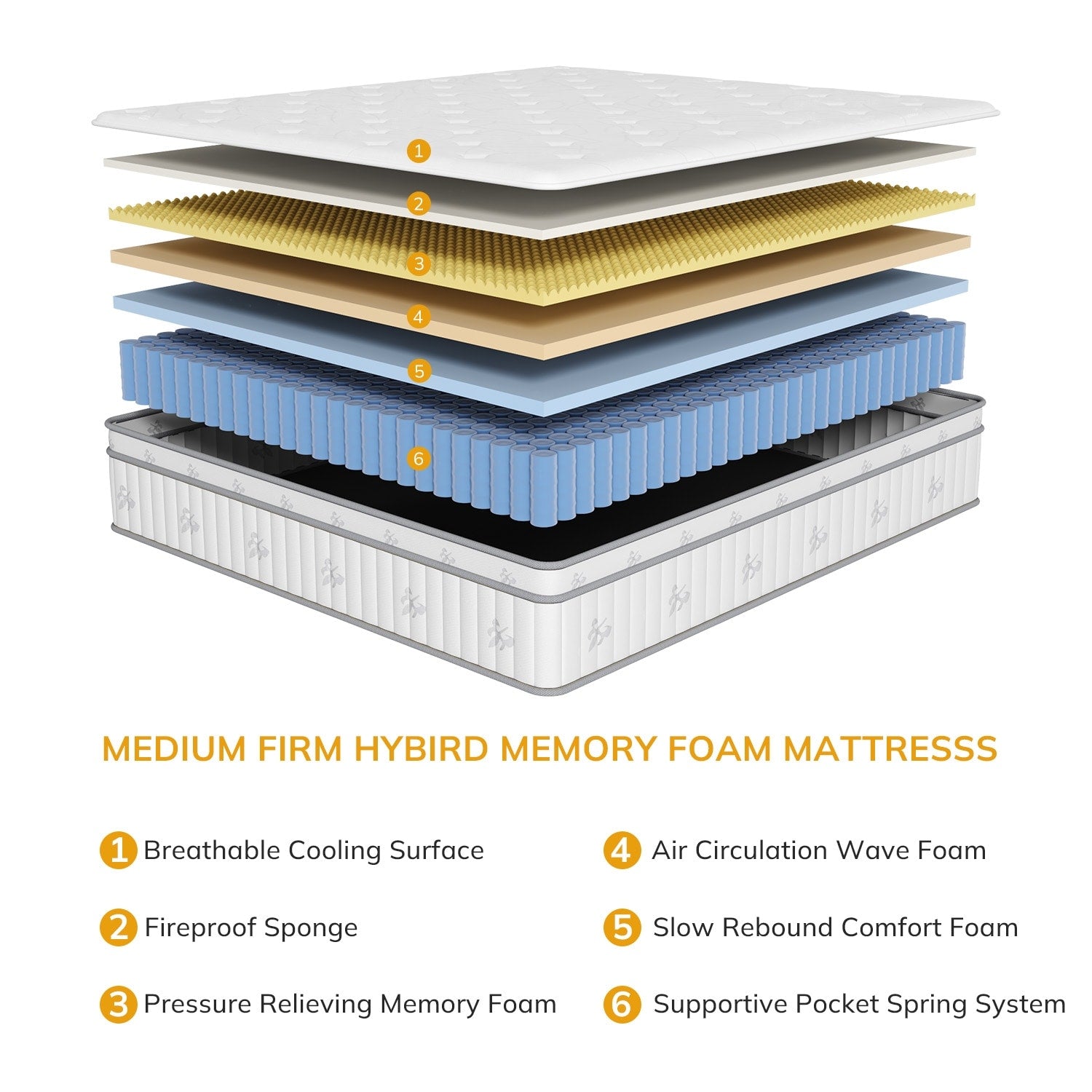 Materasso matrimoniale da 10 pollici, materasso ibrido matrimoniale,...