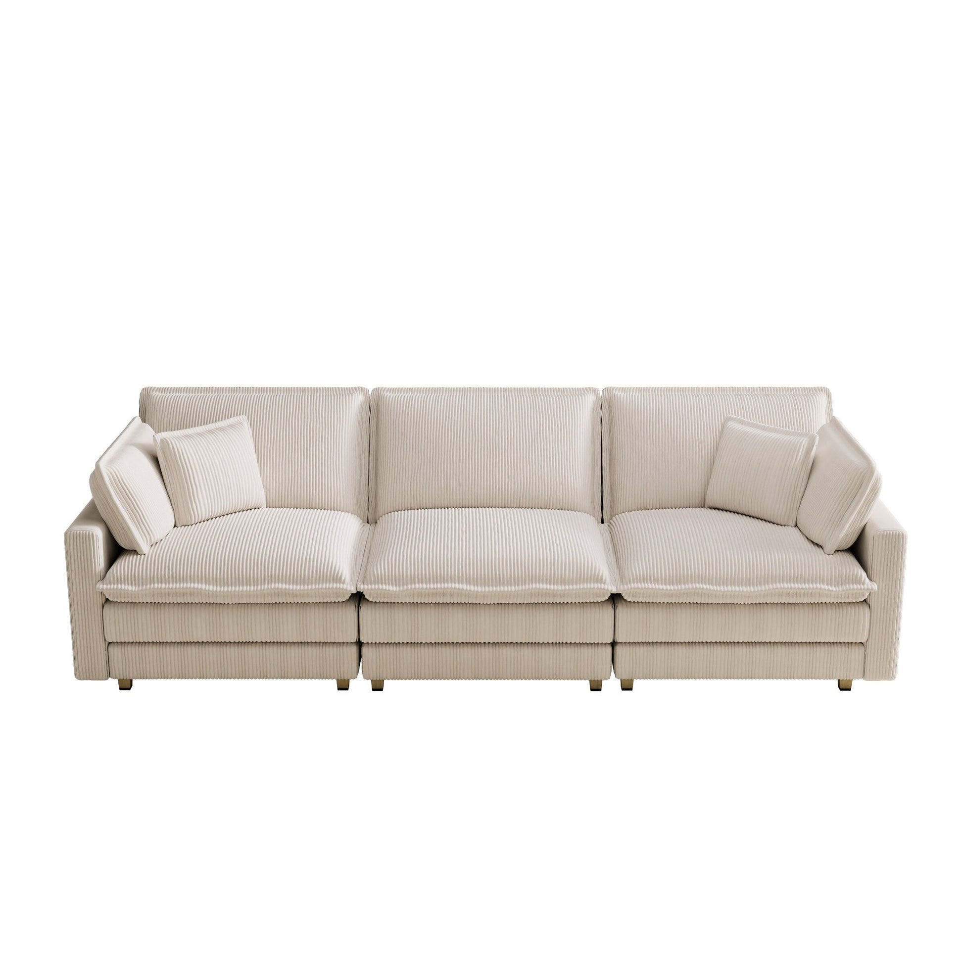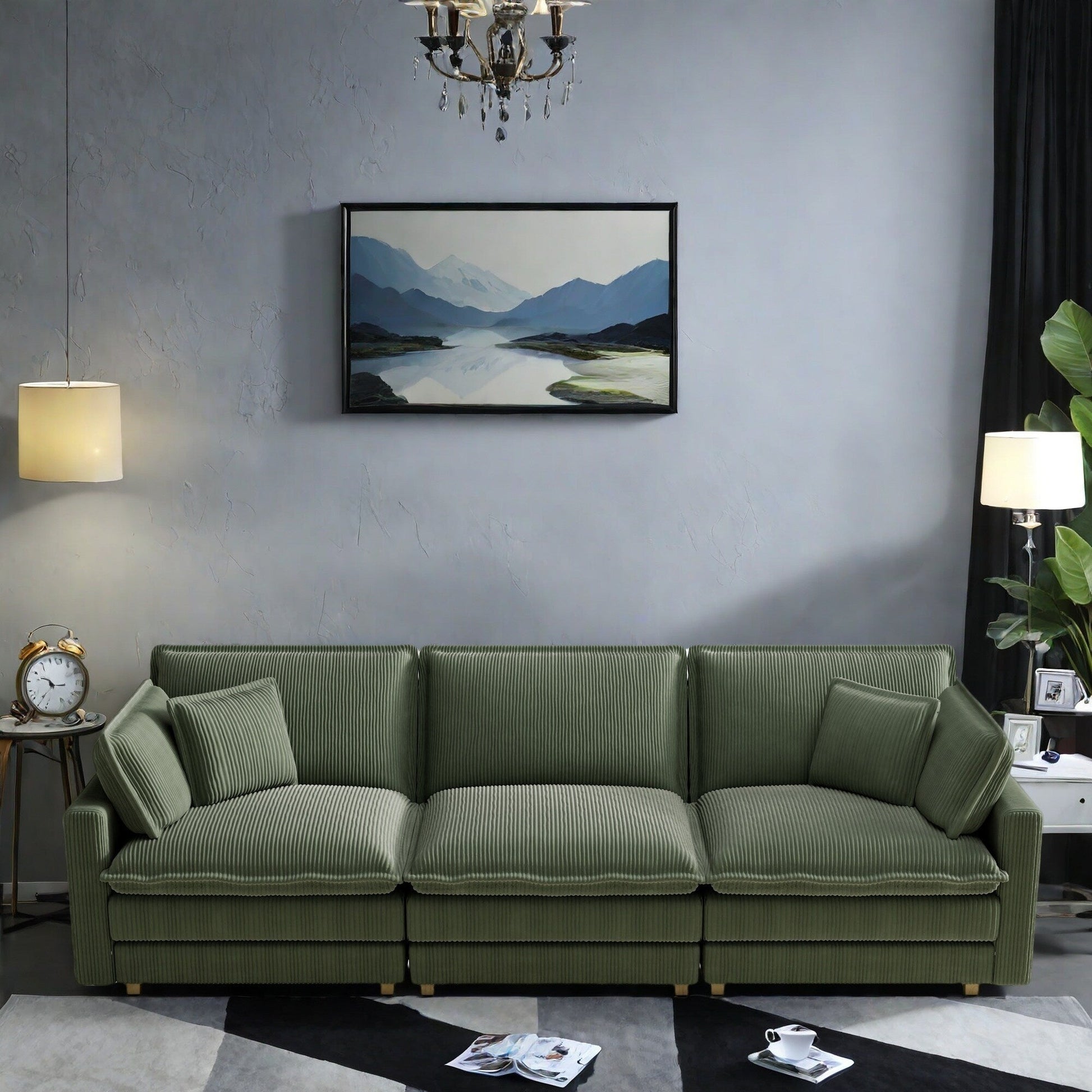 Divano classico moderno in velluto a coste 103 a 4 posti - Seduta profonda, con 4 cuscini per soggiorno