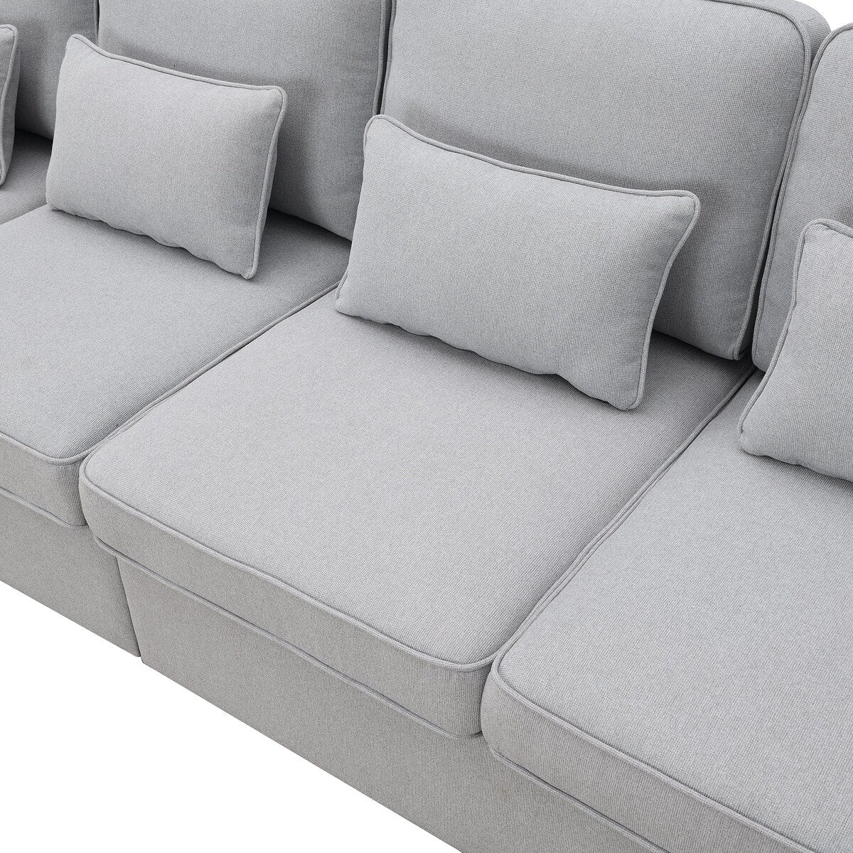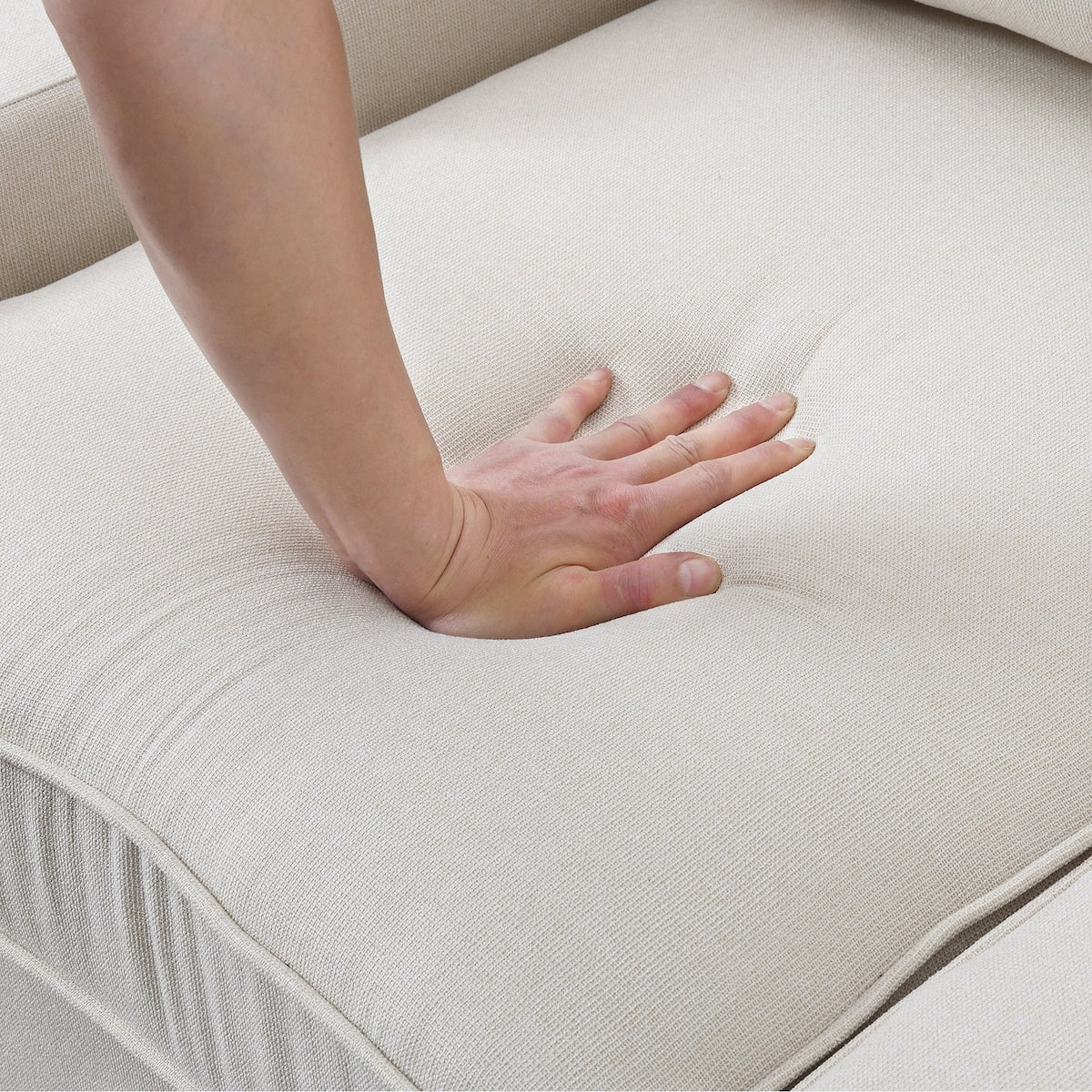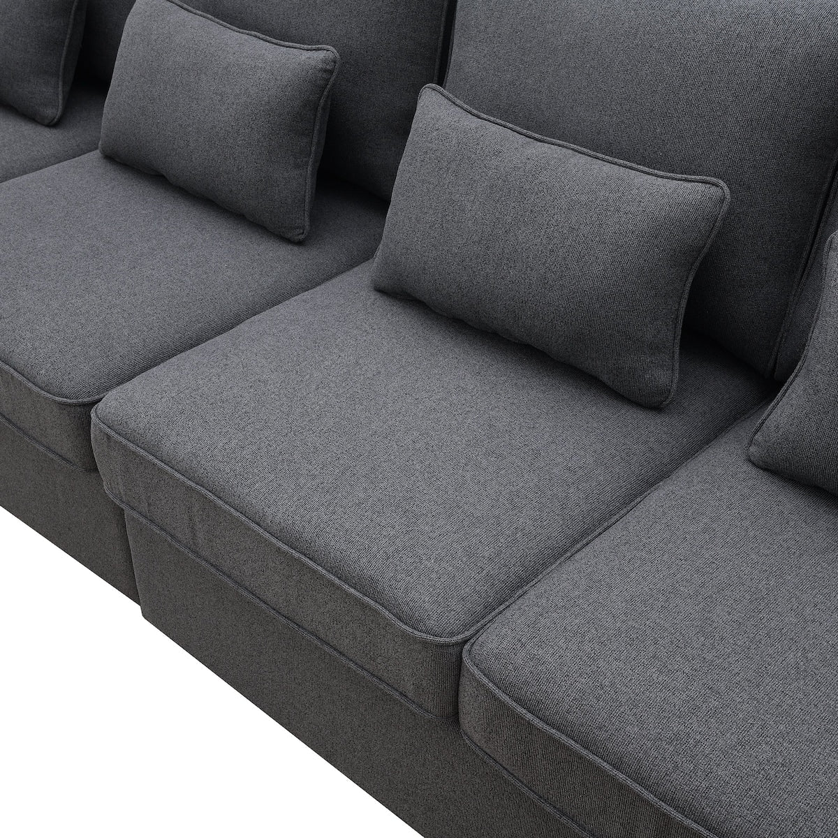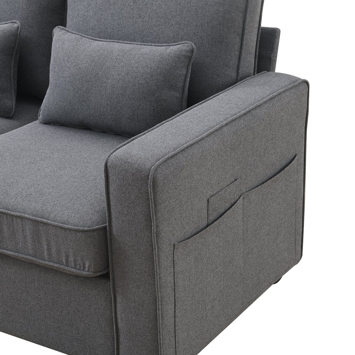 Divano moderno in tessuto di lino a 4 posti 104 con tasche sui braccioli e 4 cuscini