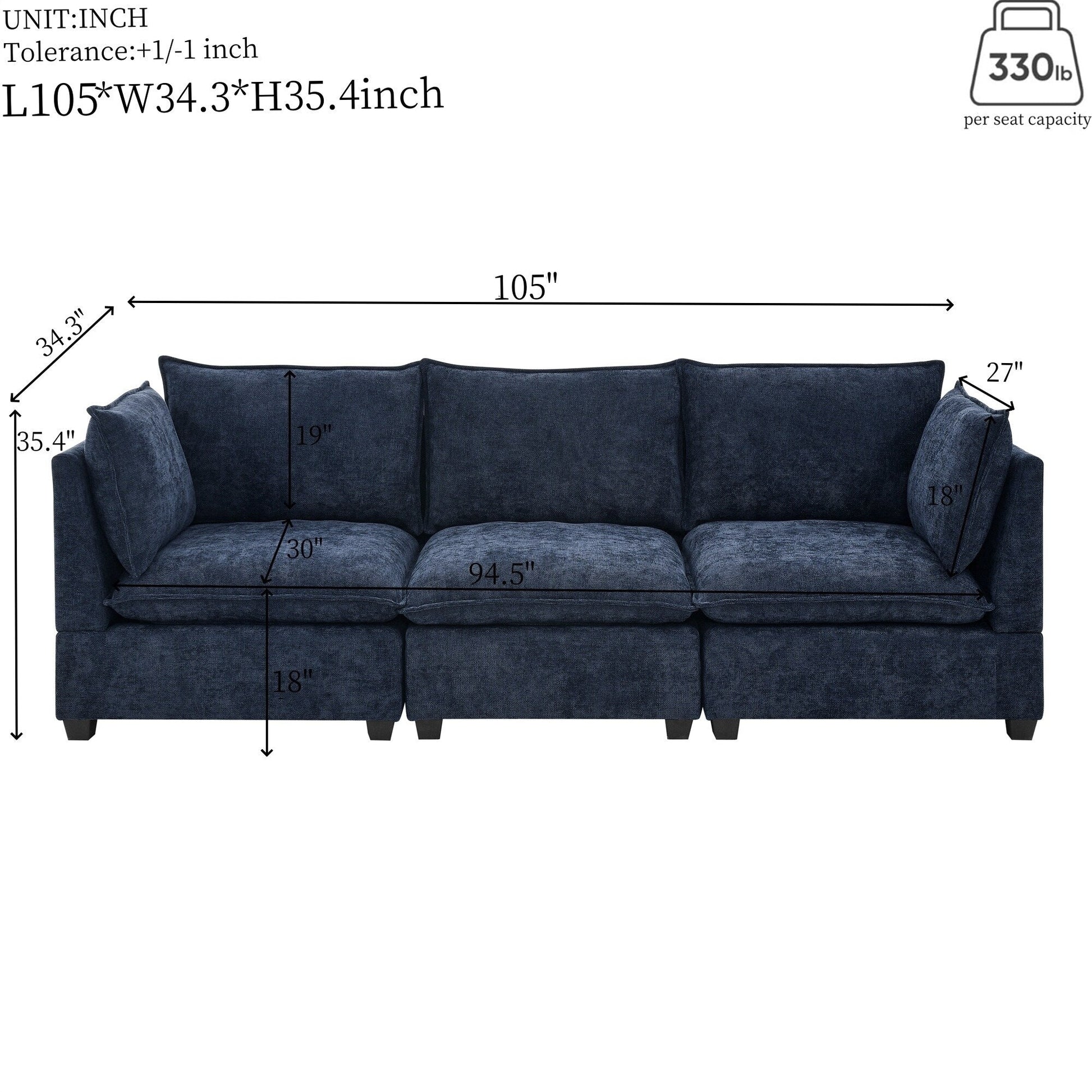 Divano 105 Chenille a 3 posti con cuscini a 2 strati, schiuma ad alta resilienza