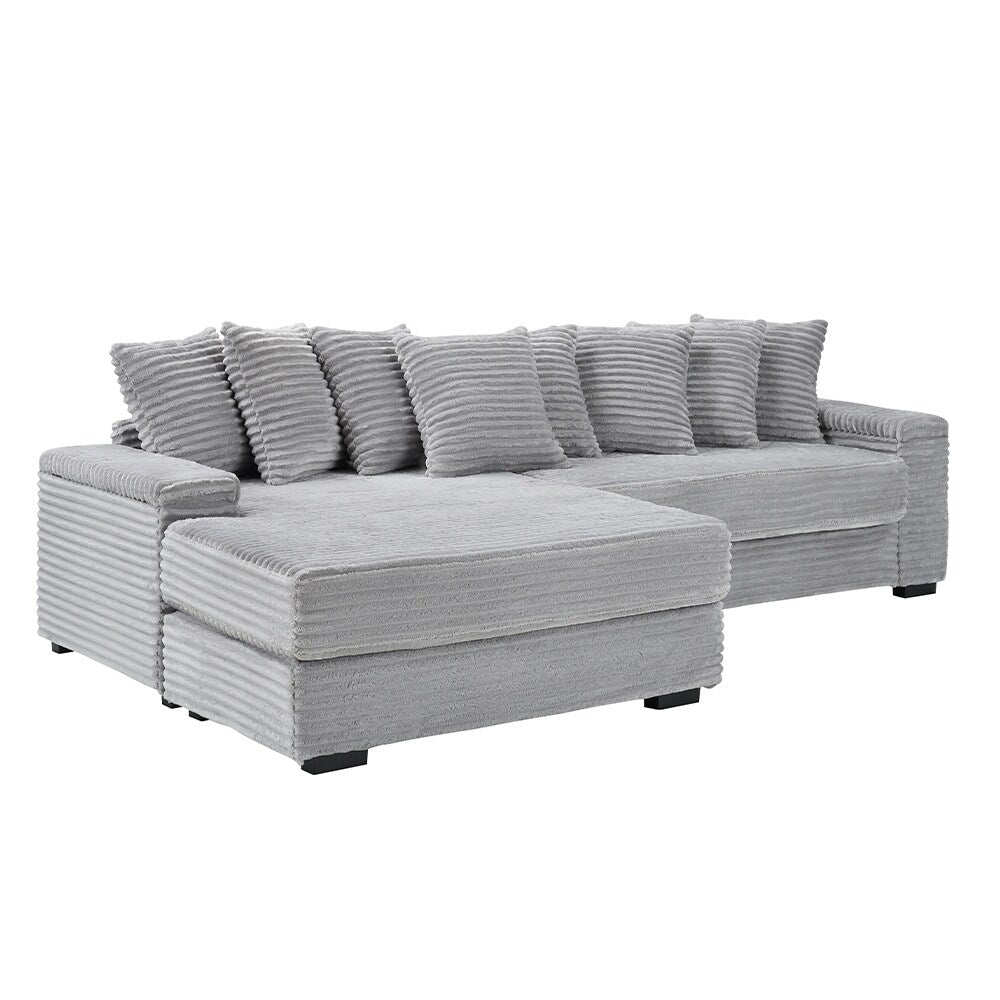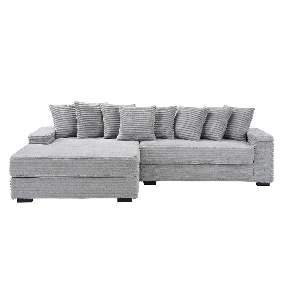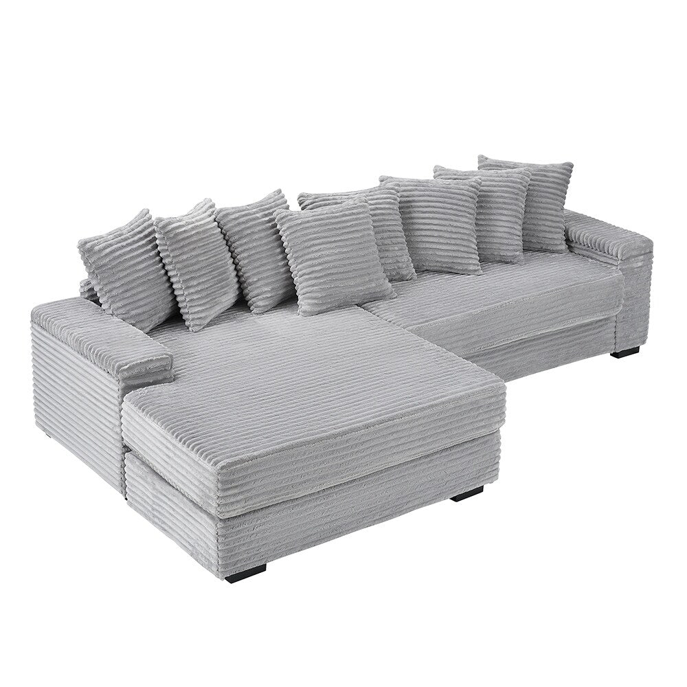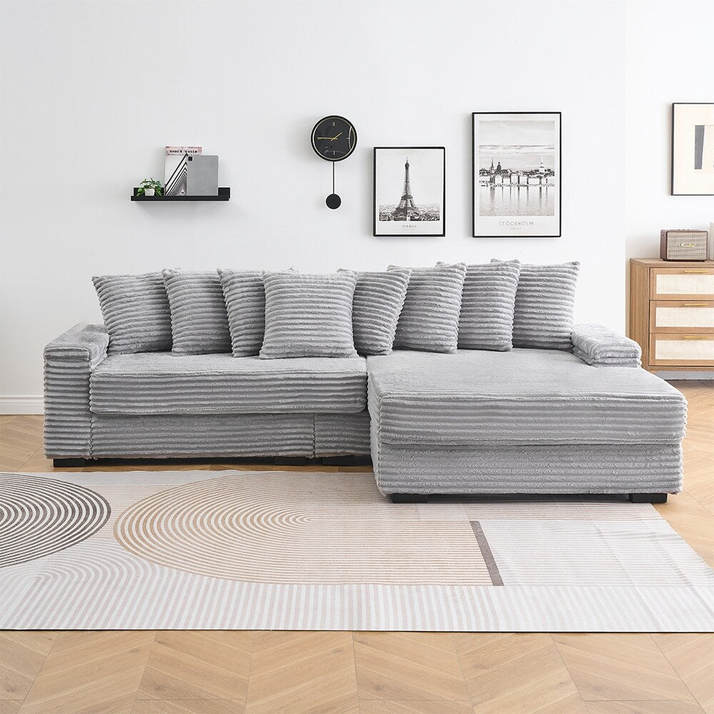 • Questo divano a L in flanella da 111,4 pollici unisce un design moderno a un comfort accogliente, grazie al morbido tessuto in velluto a coste, all'imbottitura in spugna ad alta densità e a otto morbidi cuscini decorativi per una sensazione calda e invitante.