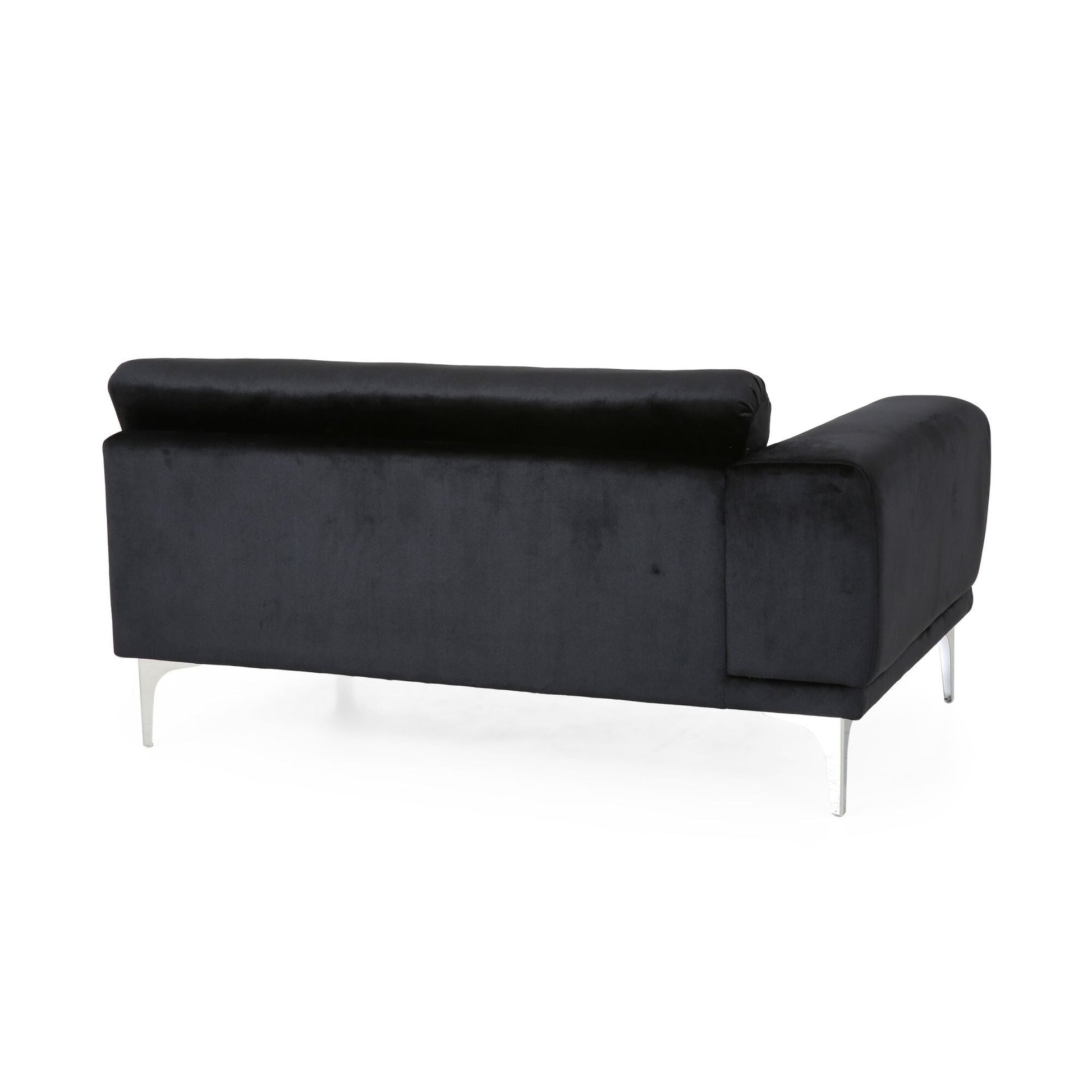 Divano 111 in velluto a 4 posti con morbidi cuscini e gambe in metallo argentato per soggiorno