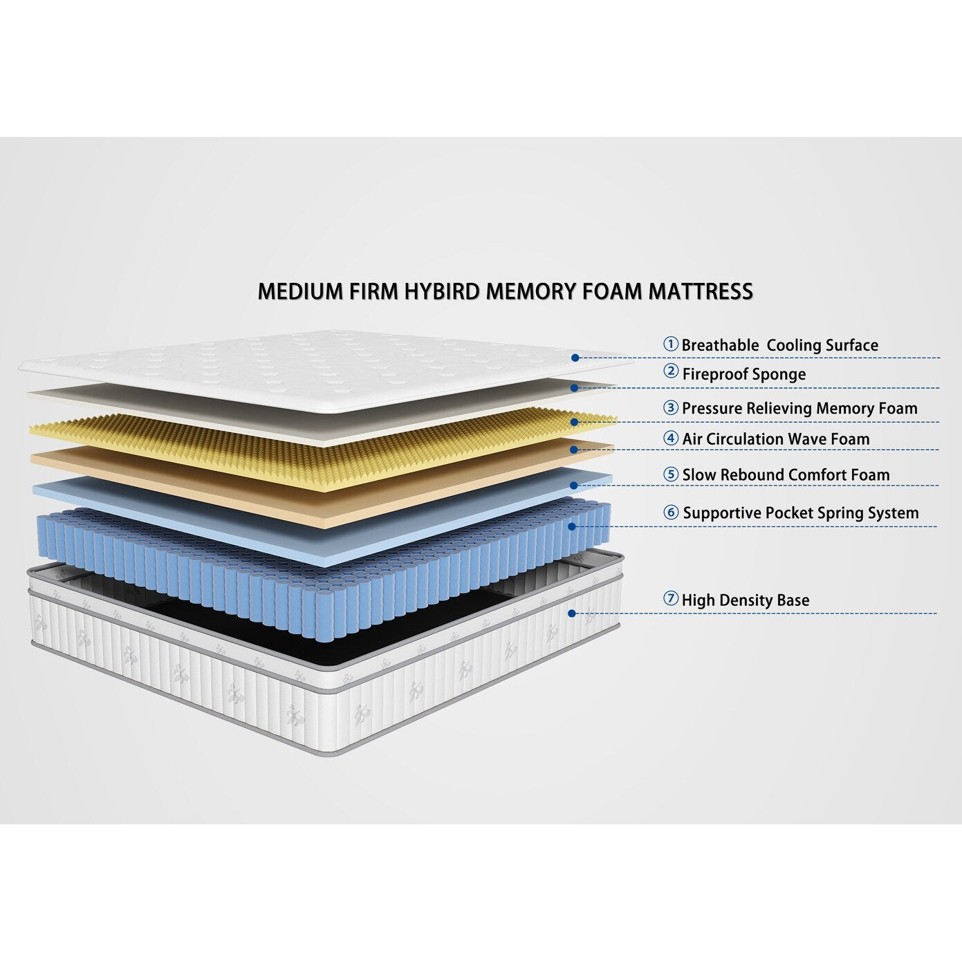Materasso matrimoniale da 12 pollici, materasso ibrido matrimoniale,...