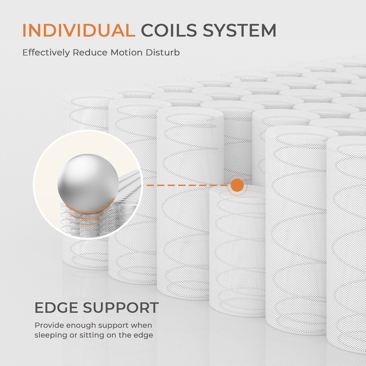 • Isolamento del movimento: è dotato di un sistema di molle insacchettate individuali che funziona bene nell'isolamento del movimento per aiutarti a dormire indisturbato e a trascorrere una notte più tranquilla.