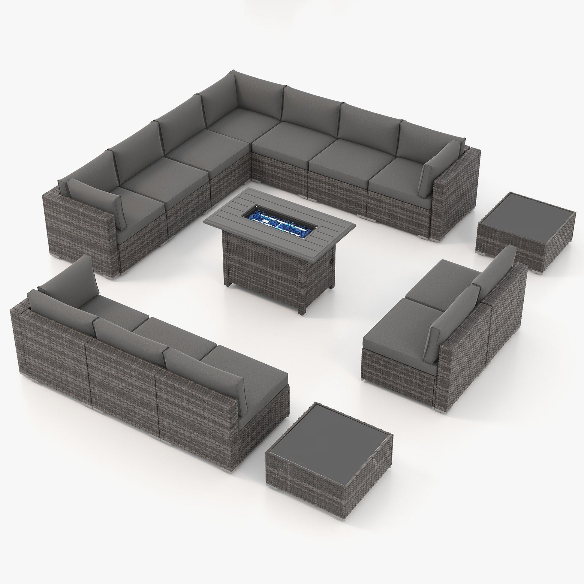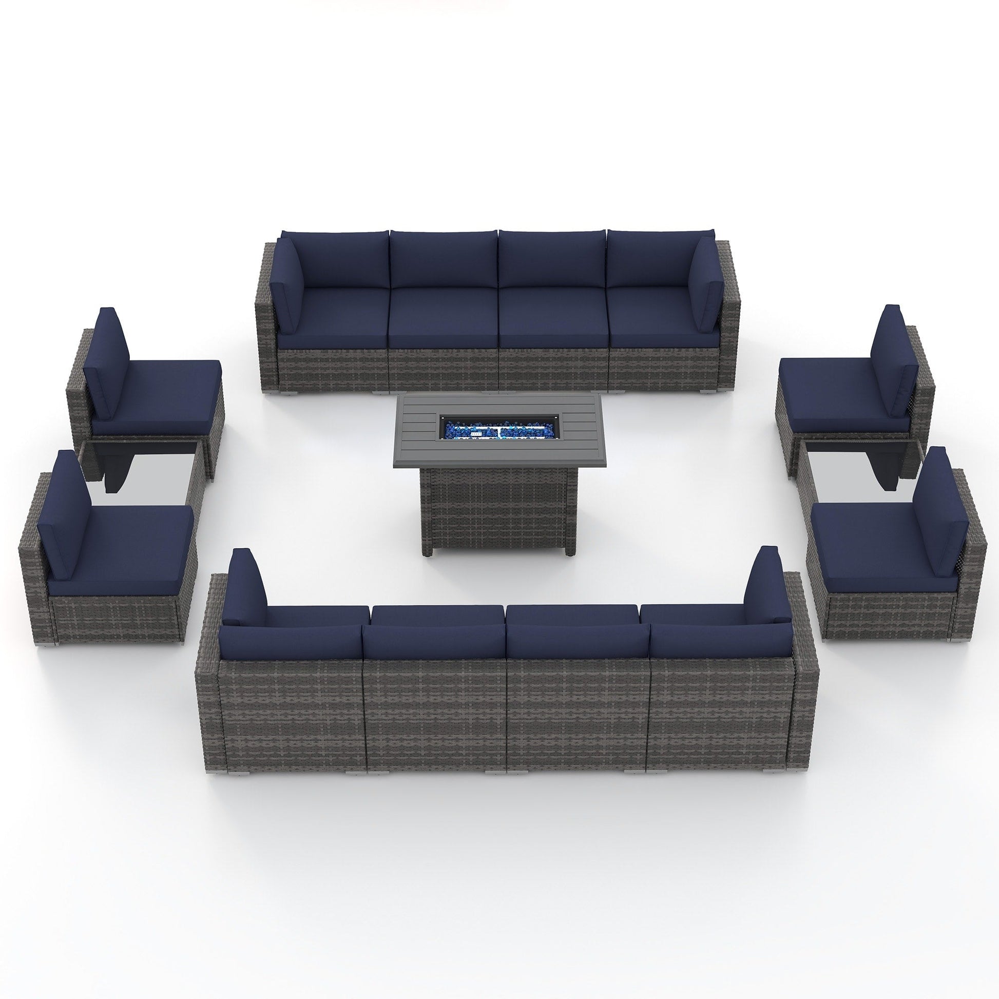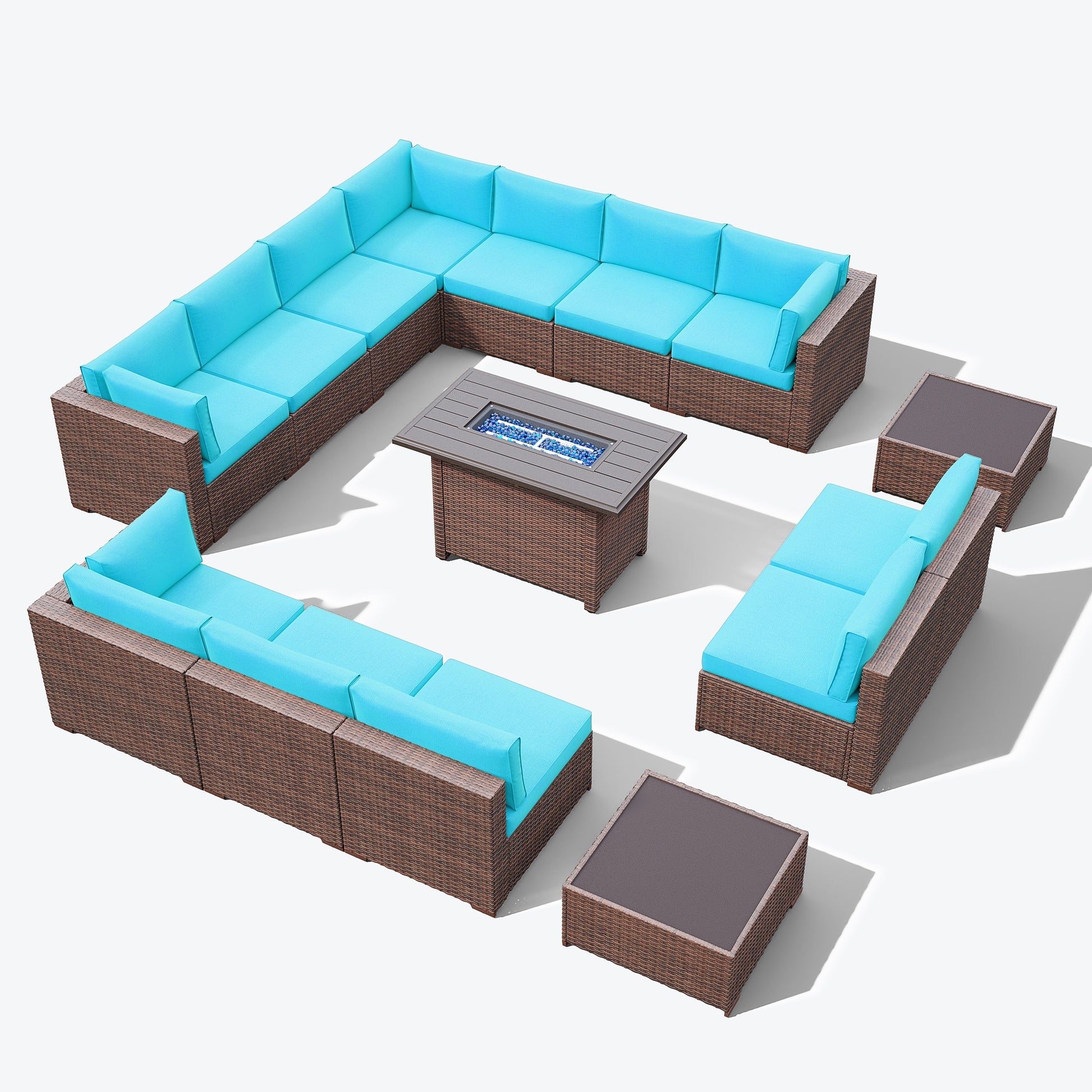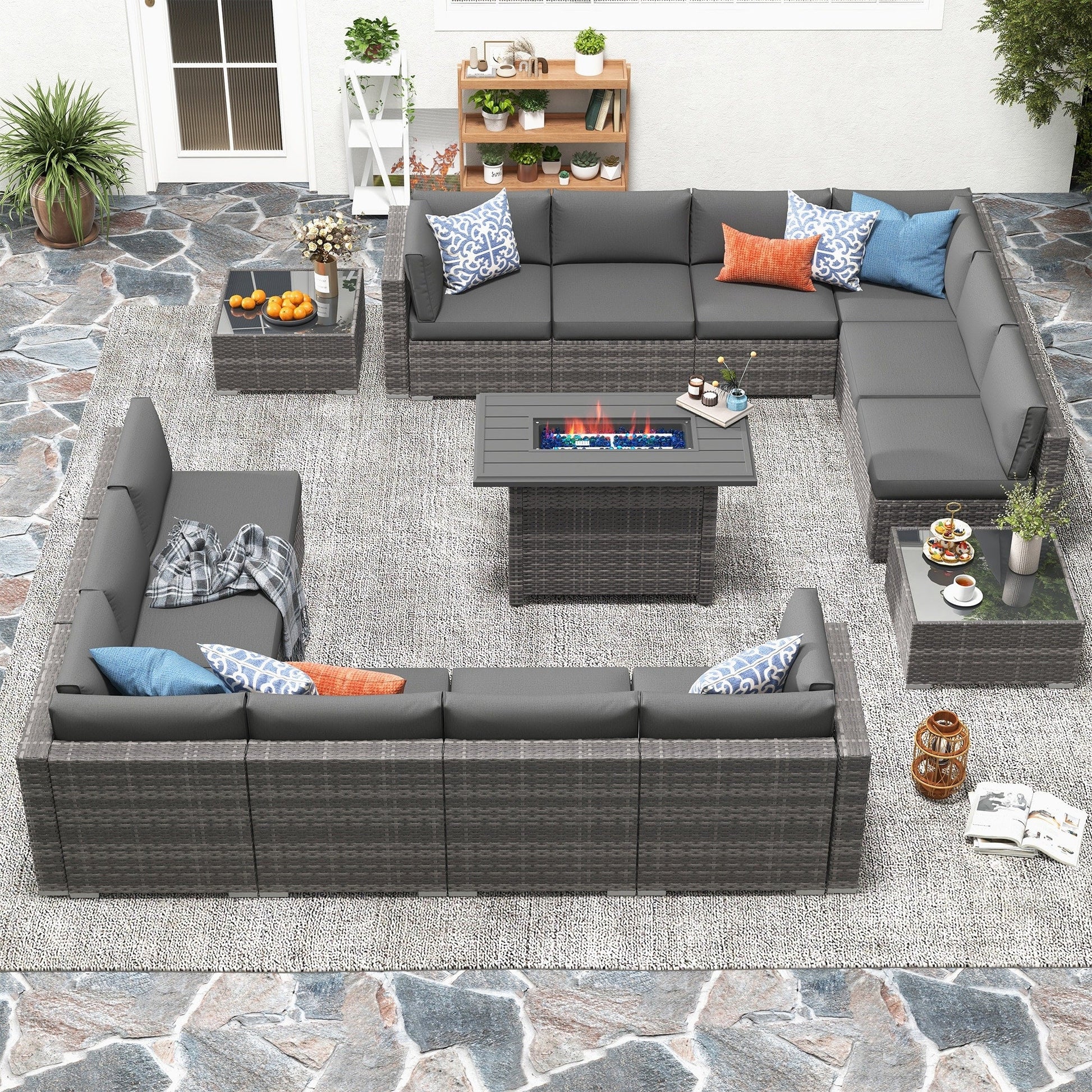 Crea un'elegante area salotto nel tuo patio con questo set di mobili in vimini da 15 pezzi. Realizzato in resistente vimini e telaio in acciaio verniciato a polvere, questo set di mobili da esterno modulare resisterà a diverse condizioni atmosferiche e arrederà diversi ambienti. Le linee pulite e la finitura nera del braciere creeranno un'atmosfera accogliente nel tuo spazio esterno. I cuscini altamente resistenti e gli ampi braccioli dal design ergonomico offrono il massimo comfort e un'esperienza di seduta ottimale. Questo lussuoso set di divani multicolori è dotato di un tavolino nero per tutte le tue esigenze di ricevimento all'aperto.