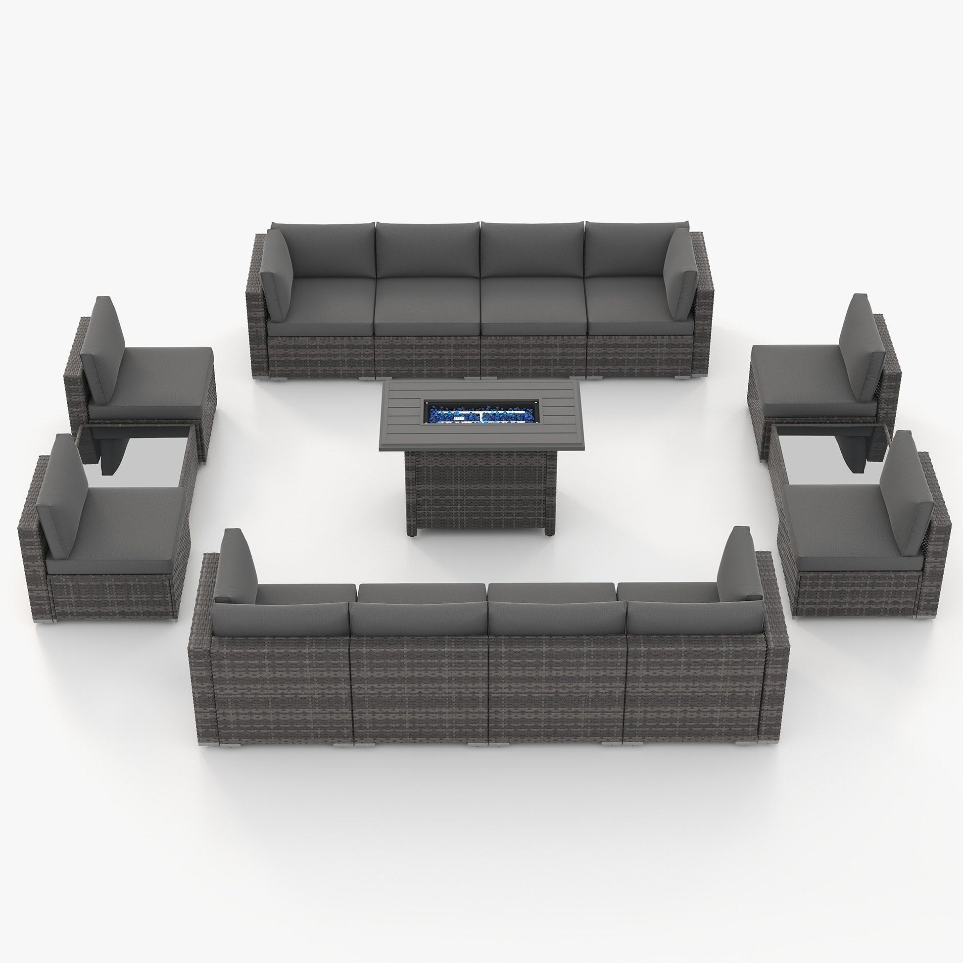 Set di 15 divani da giardino in vimini con braciere e tavolo