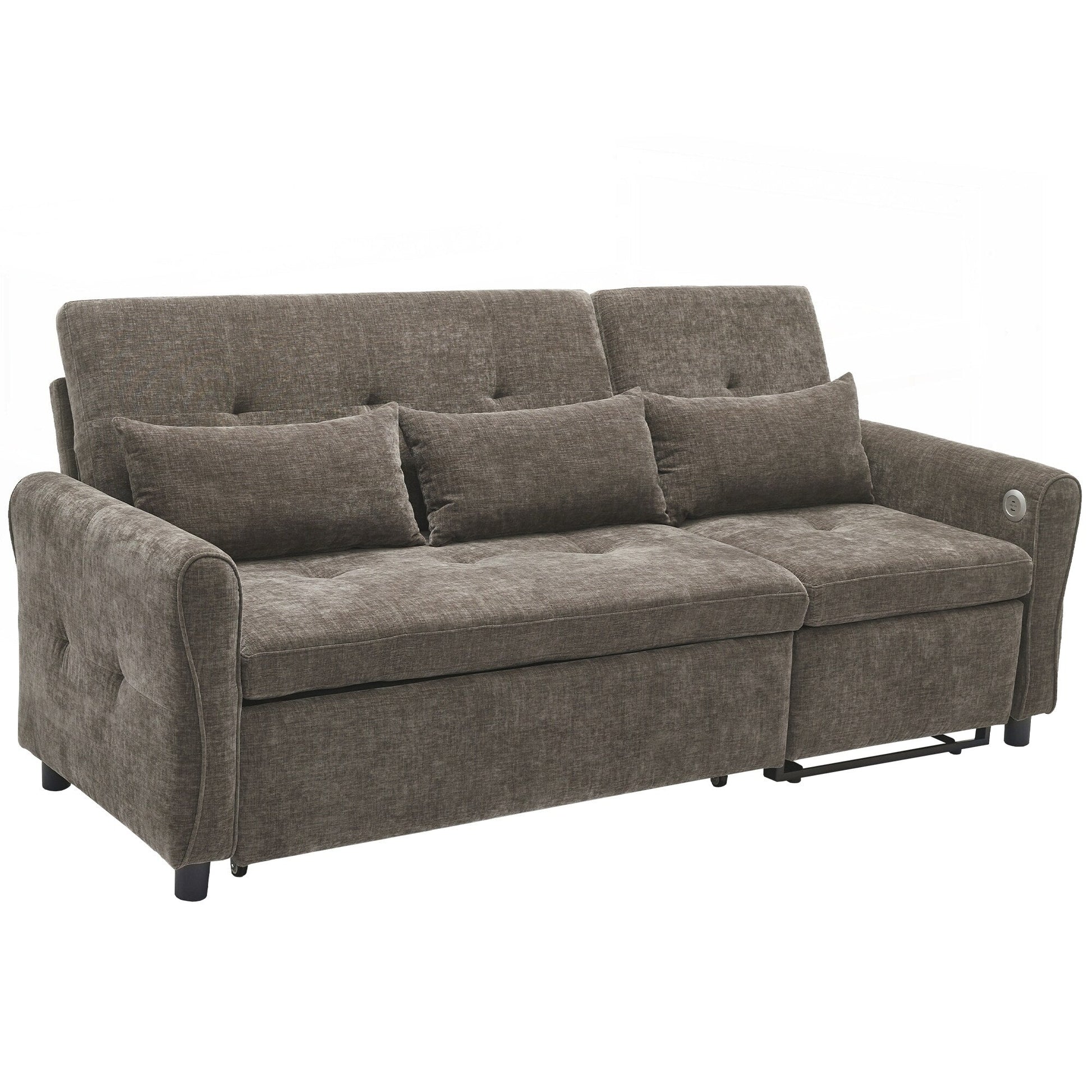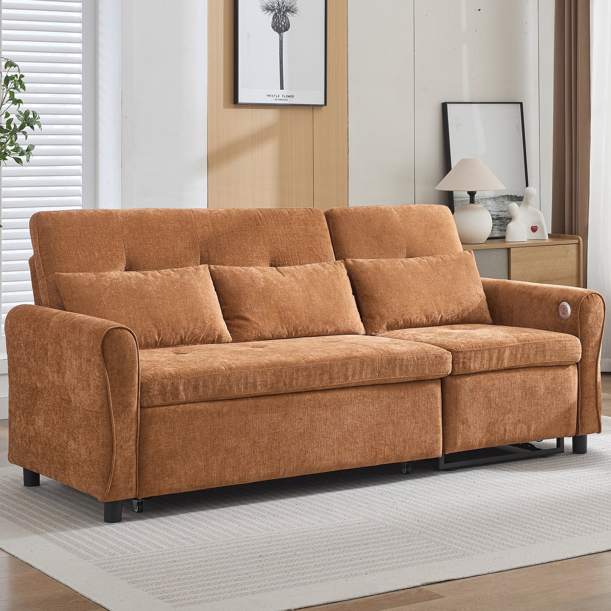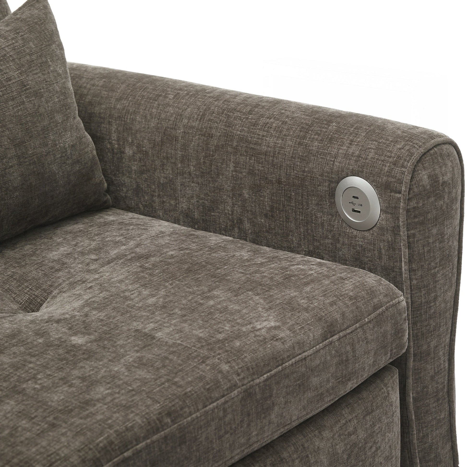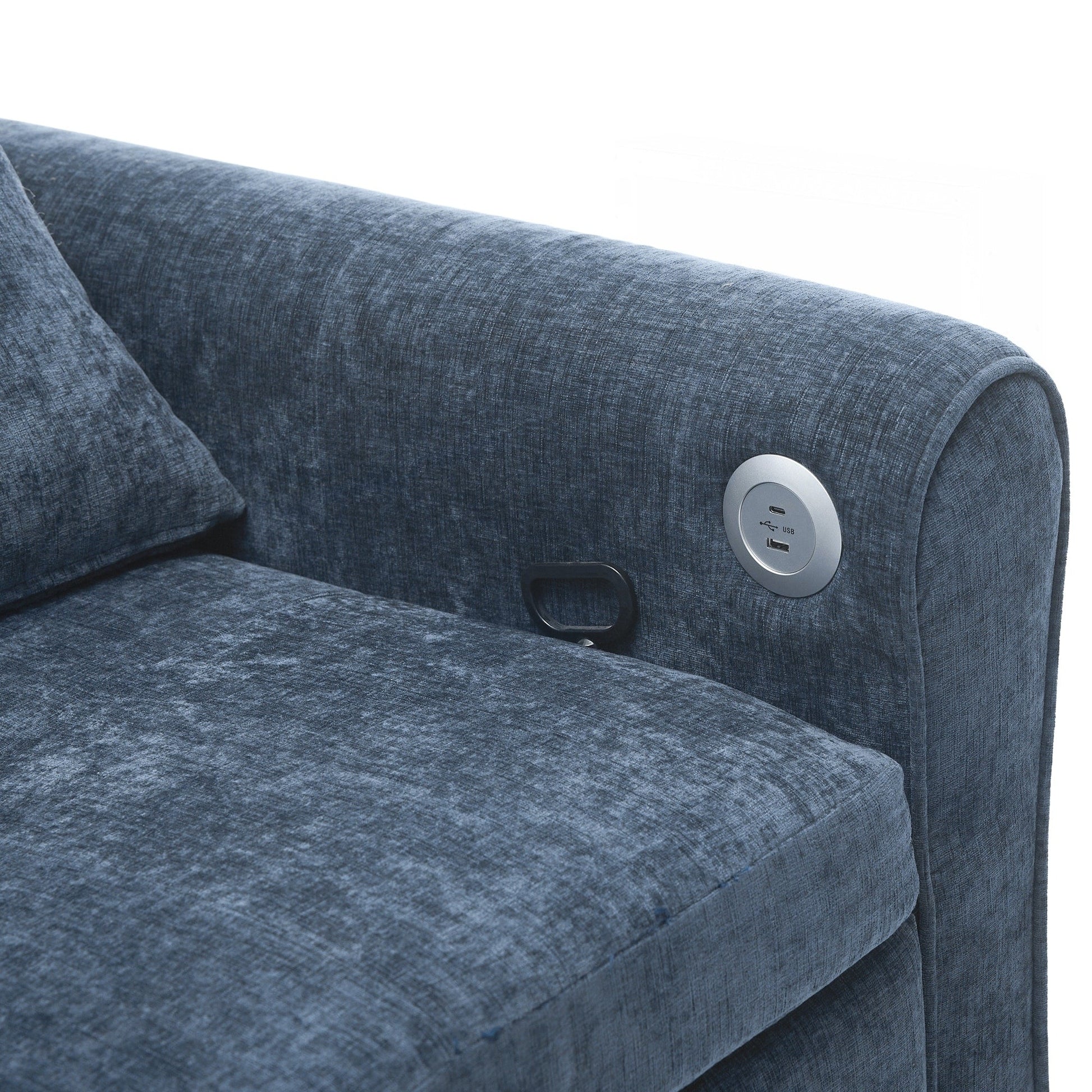Doppie porte di ricarica USB per una comodità moderna - Dotato di due porte di ricarica USB integrate, posizionate comodamente sul bracciolo, questo divano consente di caricare facilmente smartphone, tablet o altri dispositivi elettronici senza alzarsi dal divano. Questa funzione è particolarmente utile per le famiglie impegnate o per gli utenti esperti di tecnologia che desiderano rimanere connessi mentre si rilassano. Facile da montare - Questo divano è facile da montare, tutti gli accessori necessari e le istruzioni dettagliate sono inclusi. Viene fornito con 3 scatole. Dimensioni complessive: 82'L * 33,5'P * 36'A.