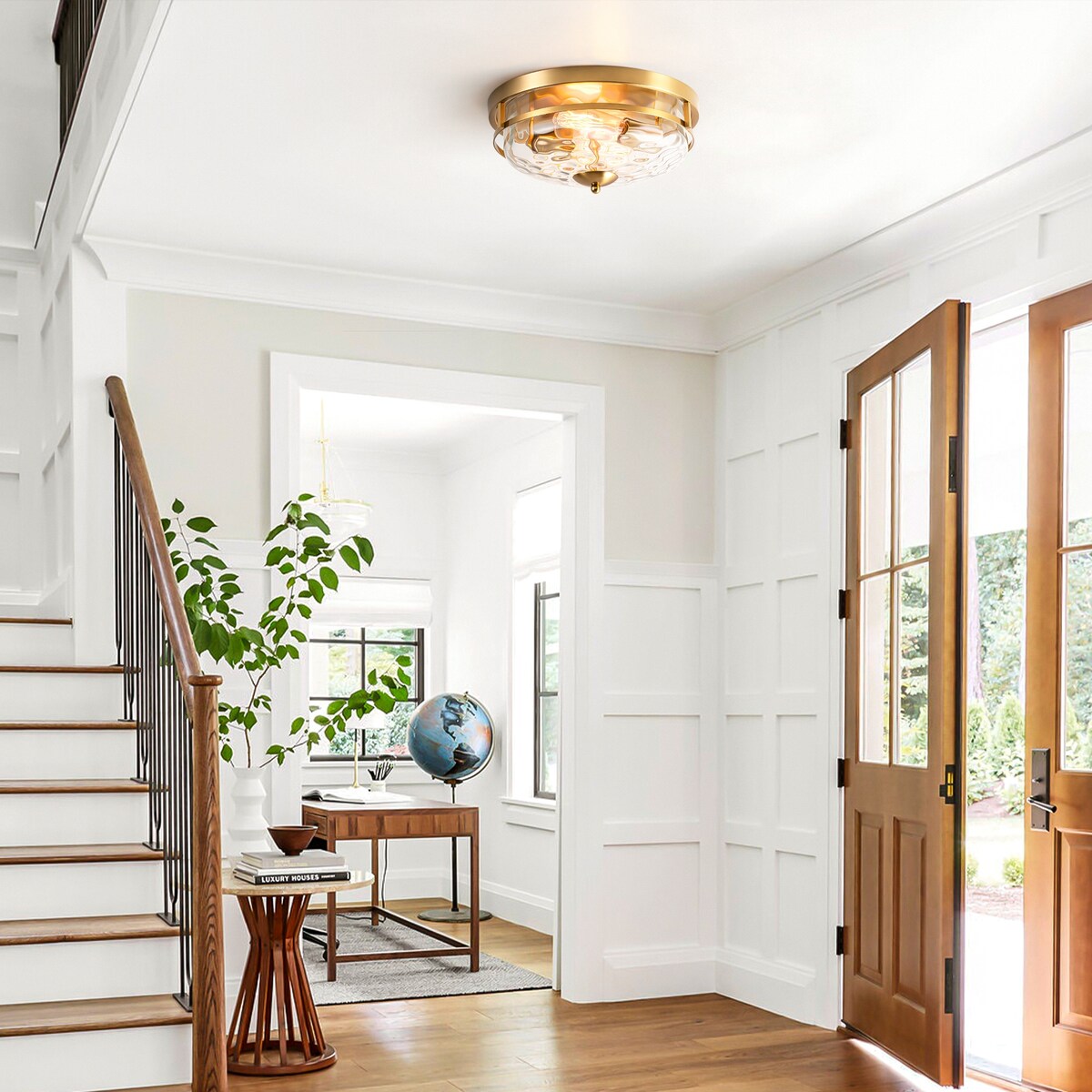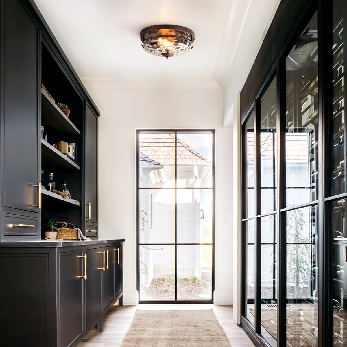 Plafoniera industriale a 2 luci, in vetro trasparente...