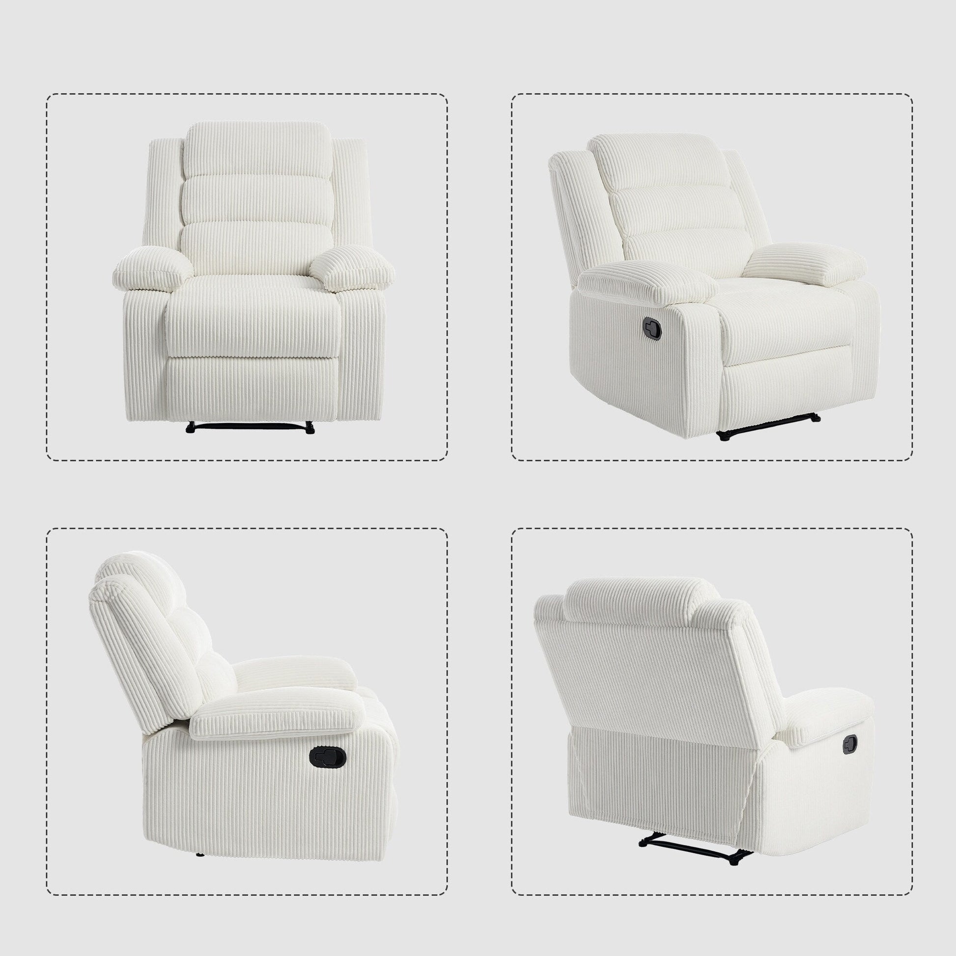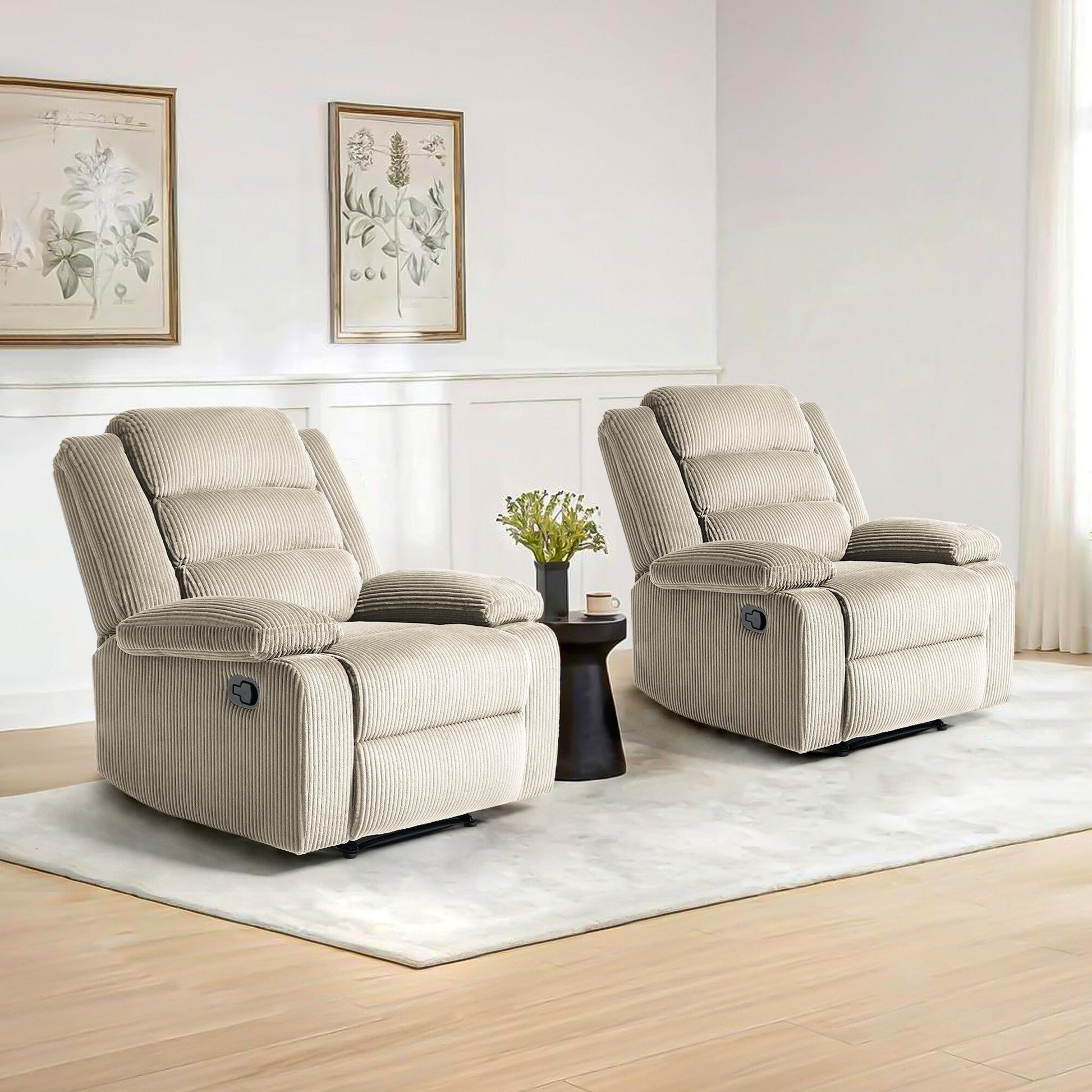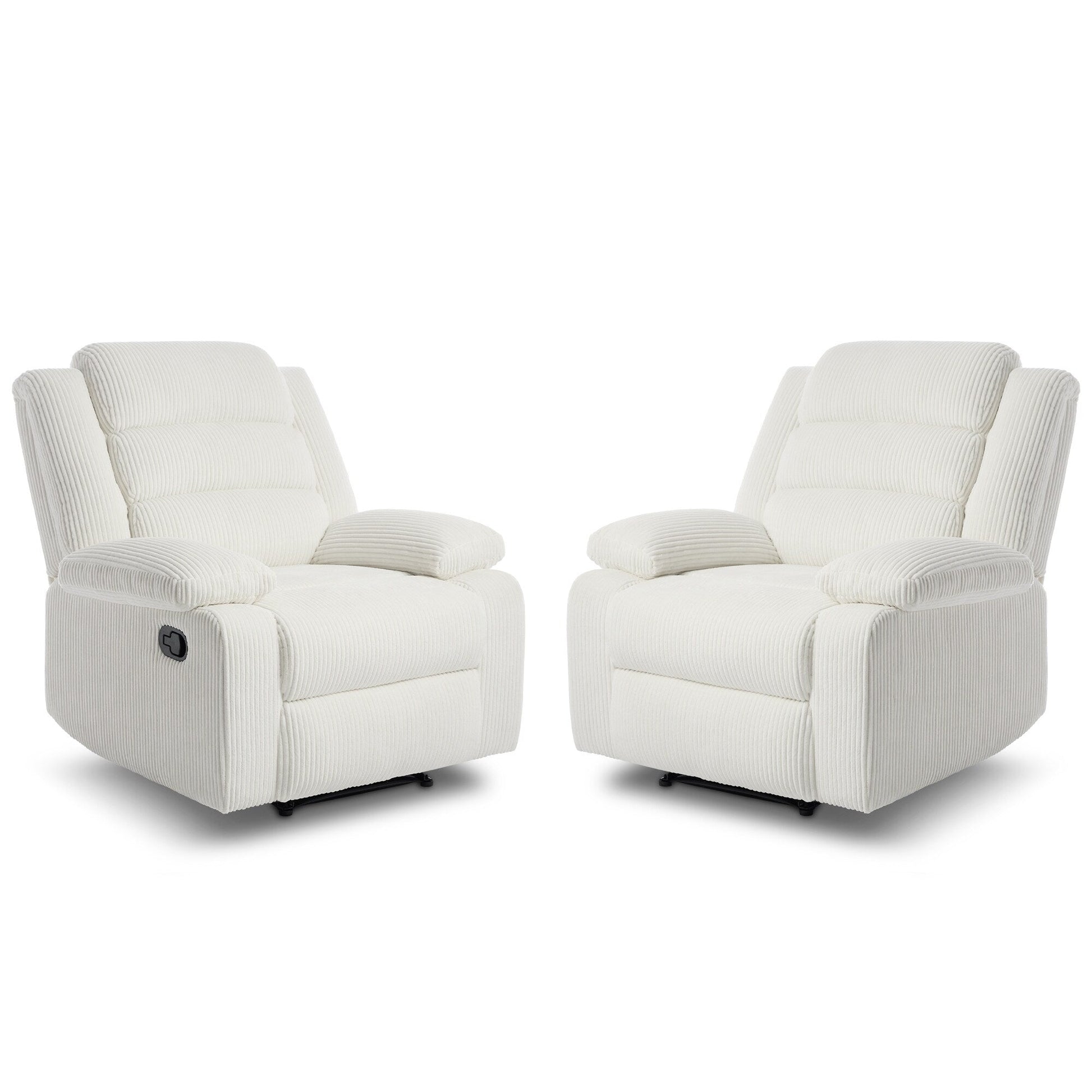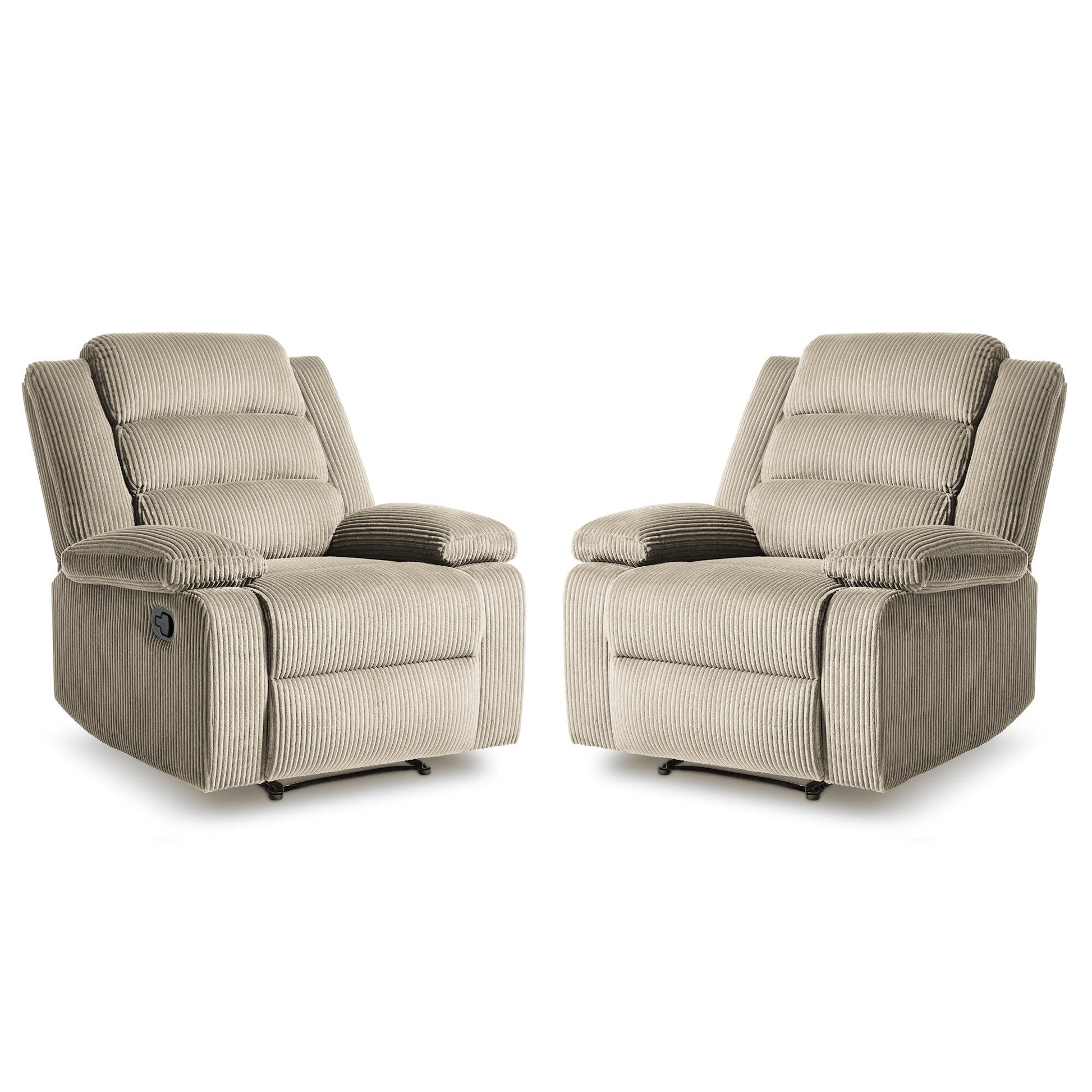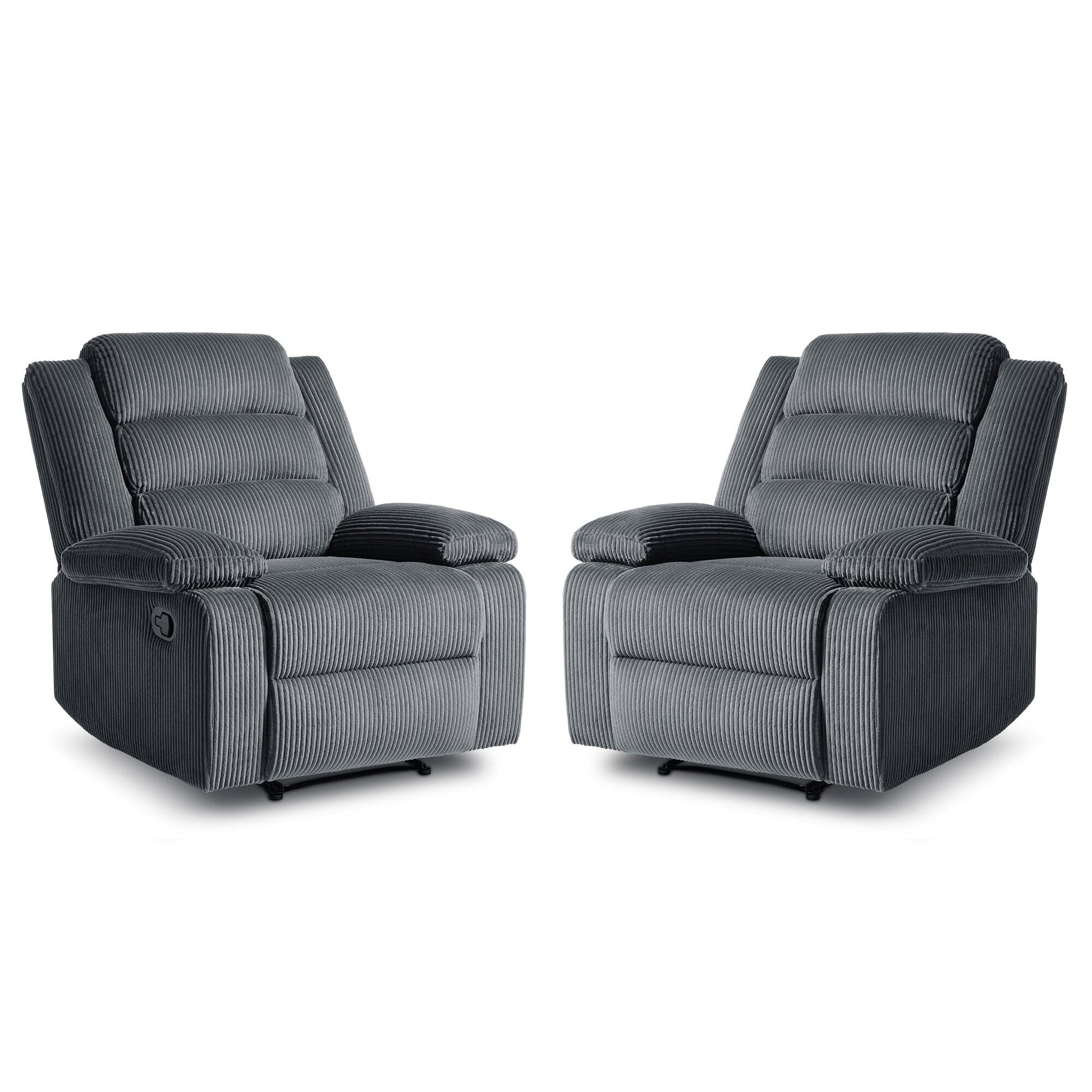 Set da 2 poltrone reclinabili manuali moderne in velluto a coste, poltrone reclinabili oversize con braccioli larghi