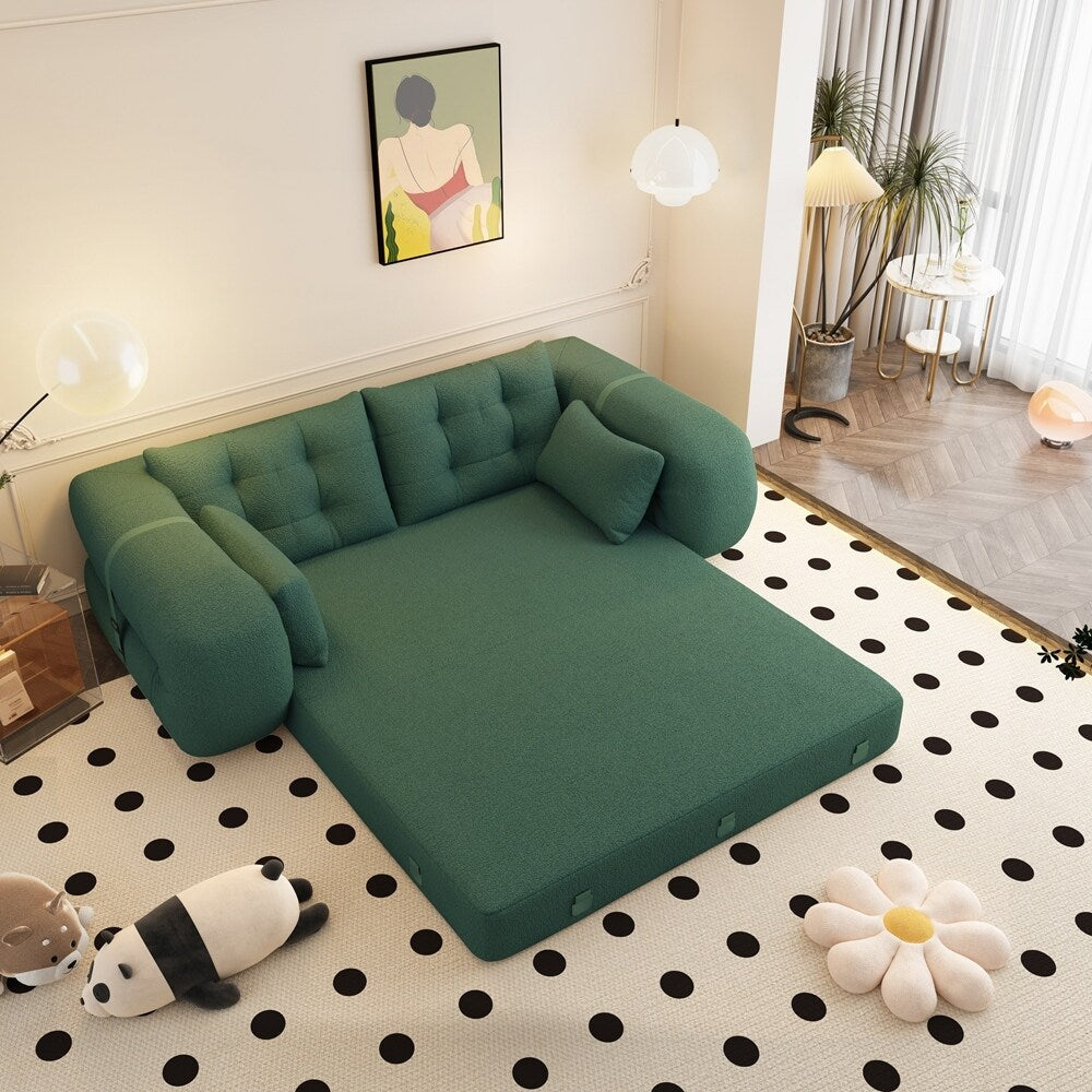 Divano letto imbottito in schiuma con tessuto Teddy...