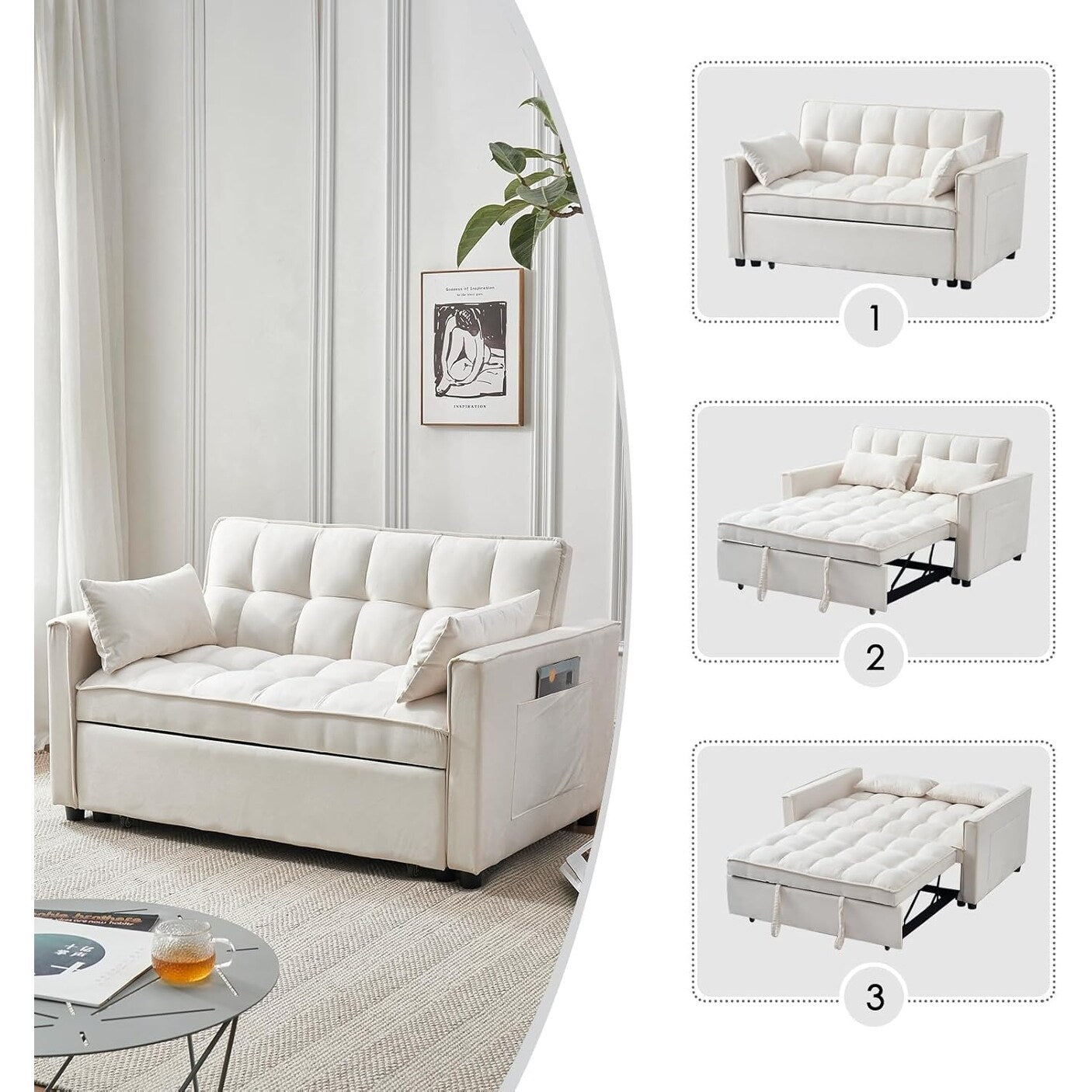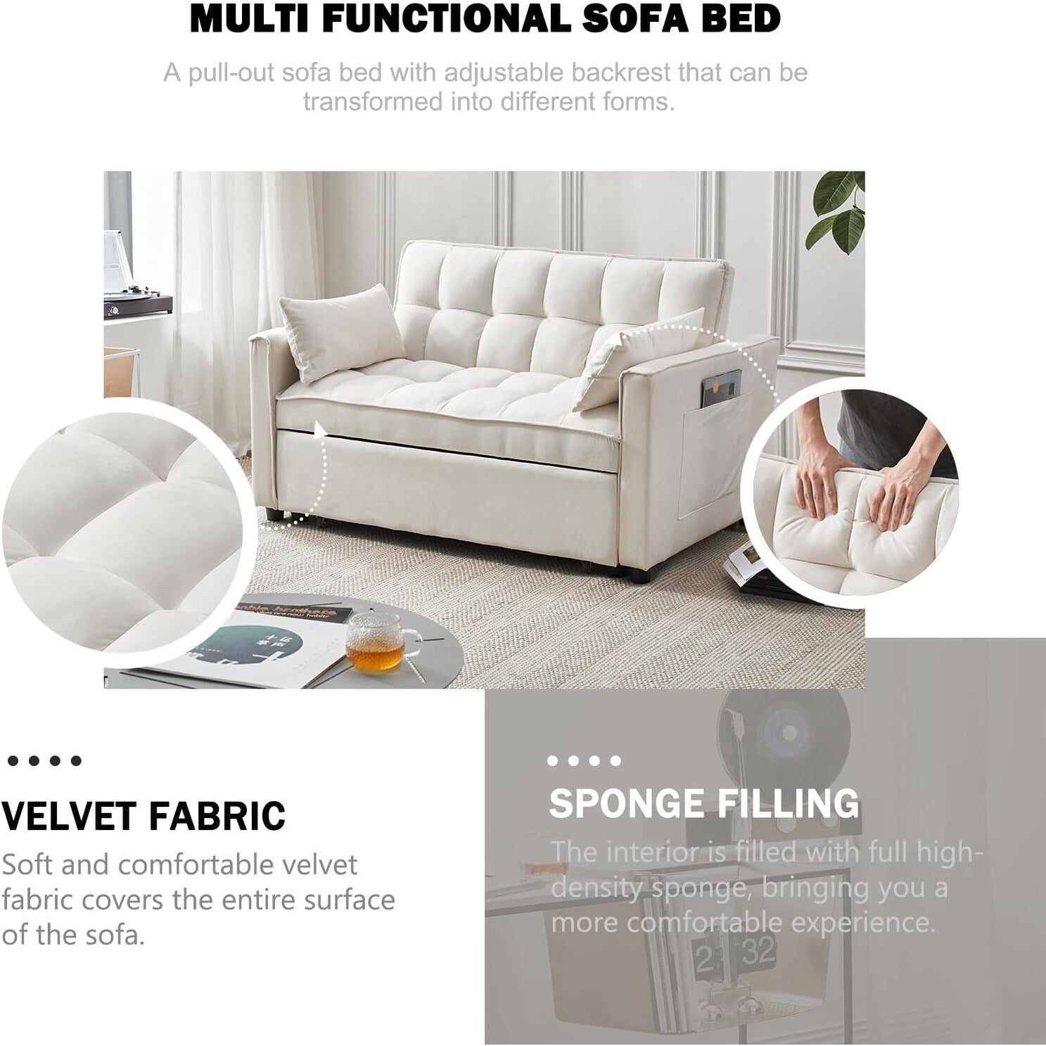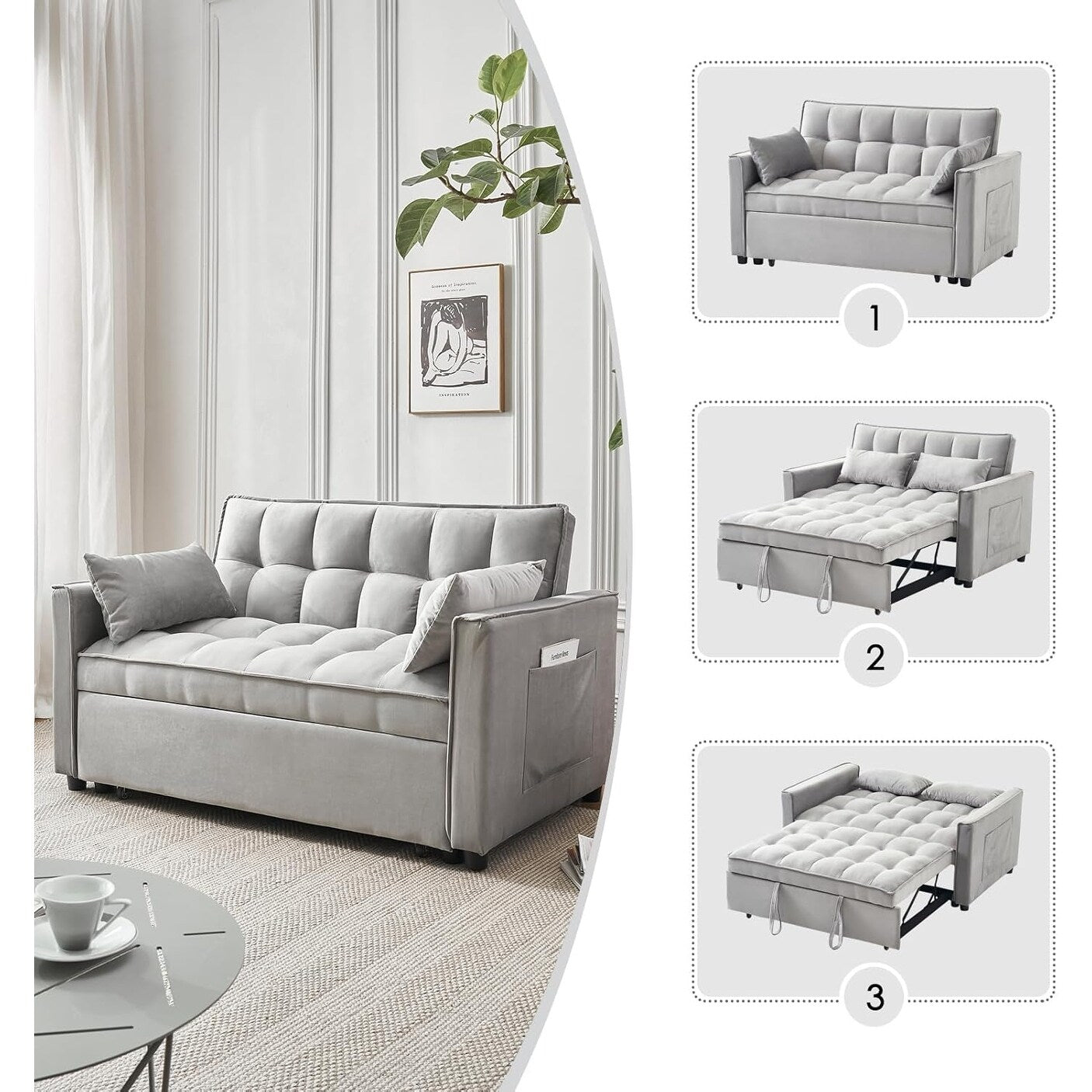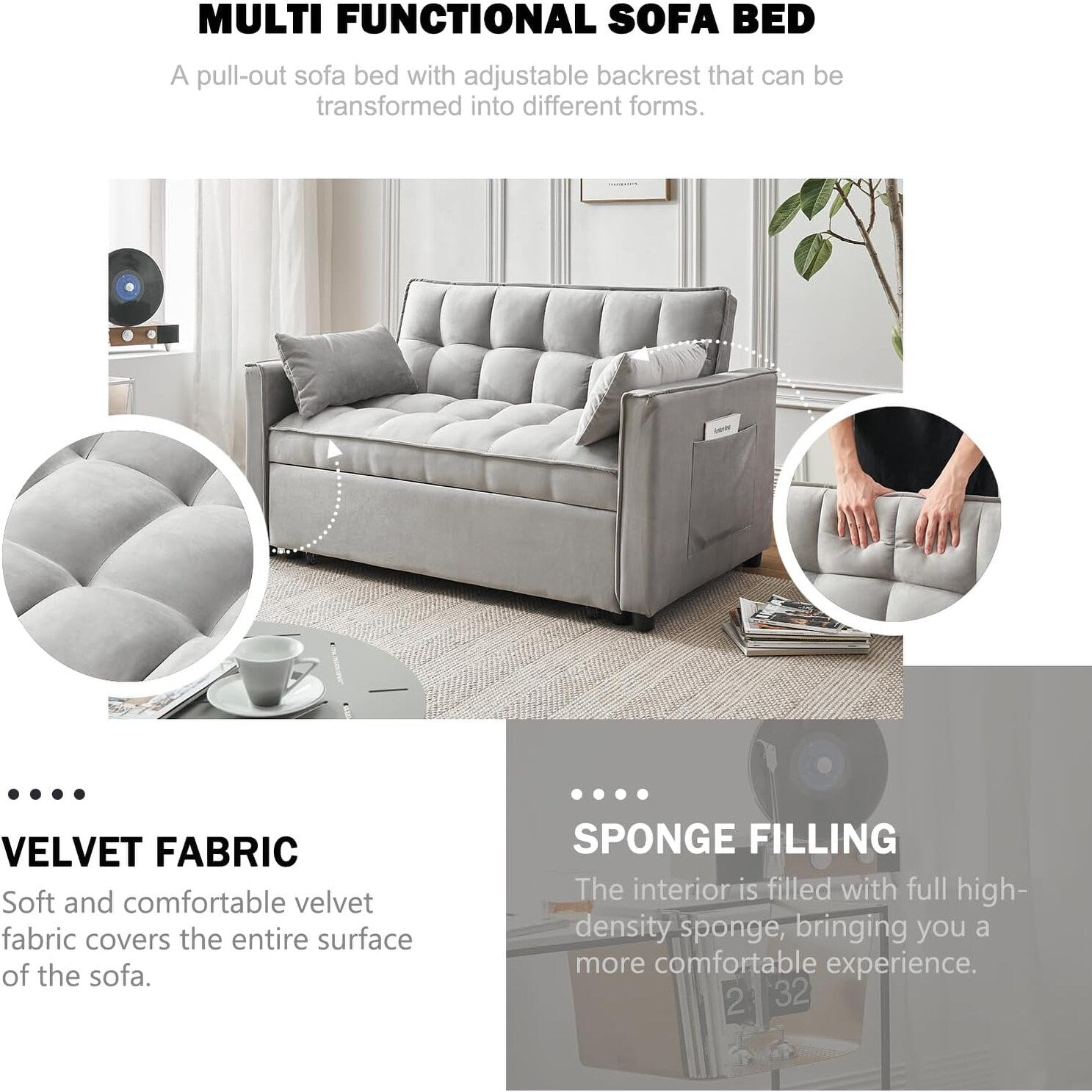 Divano letto 3 in 1 in velluto -...