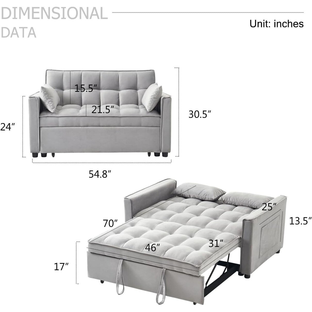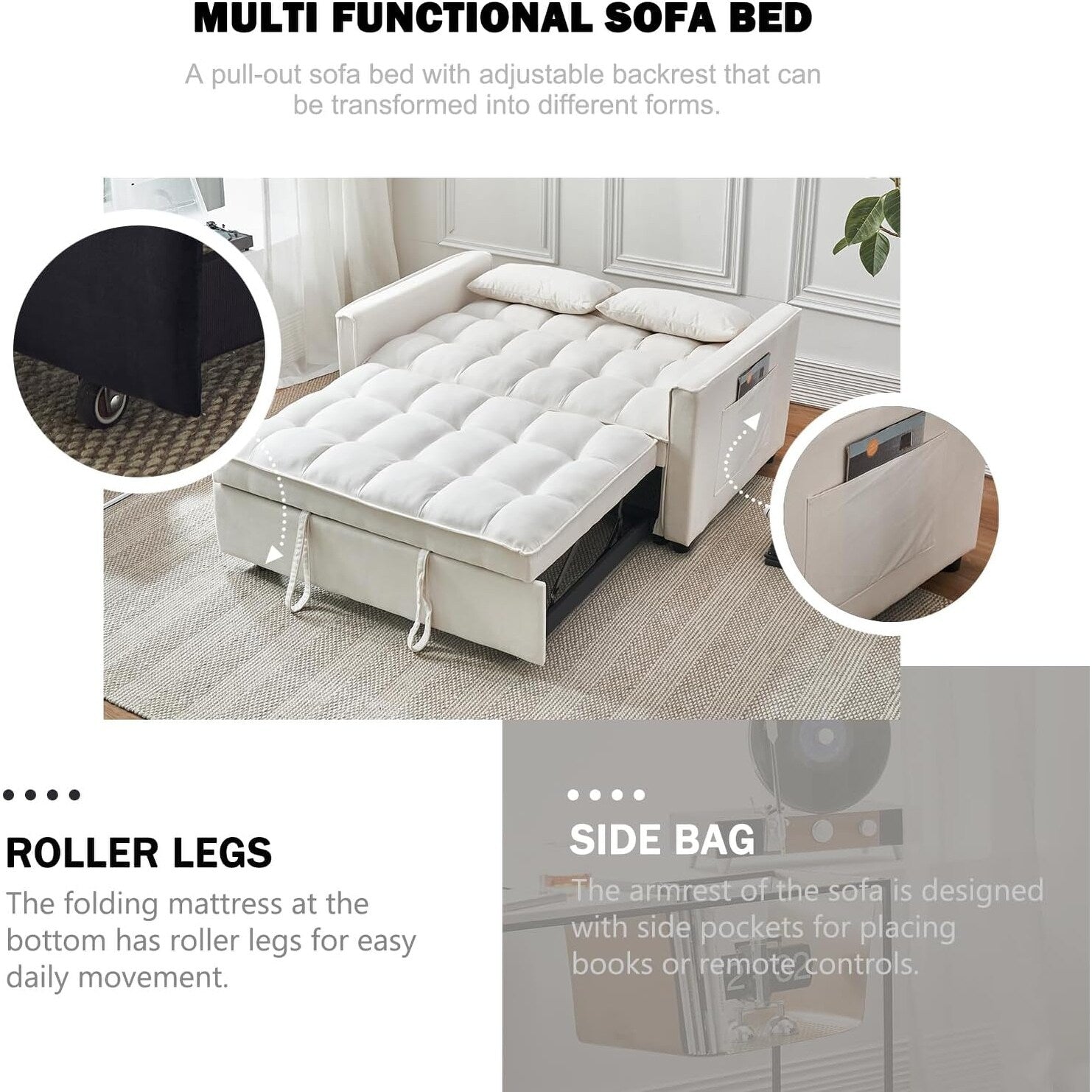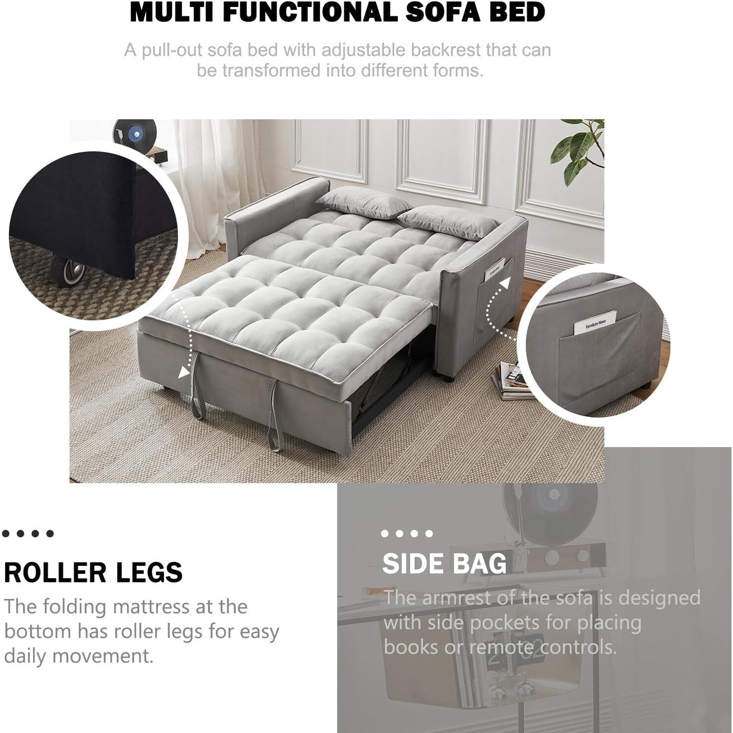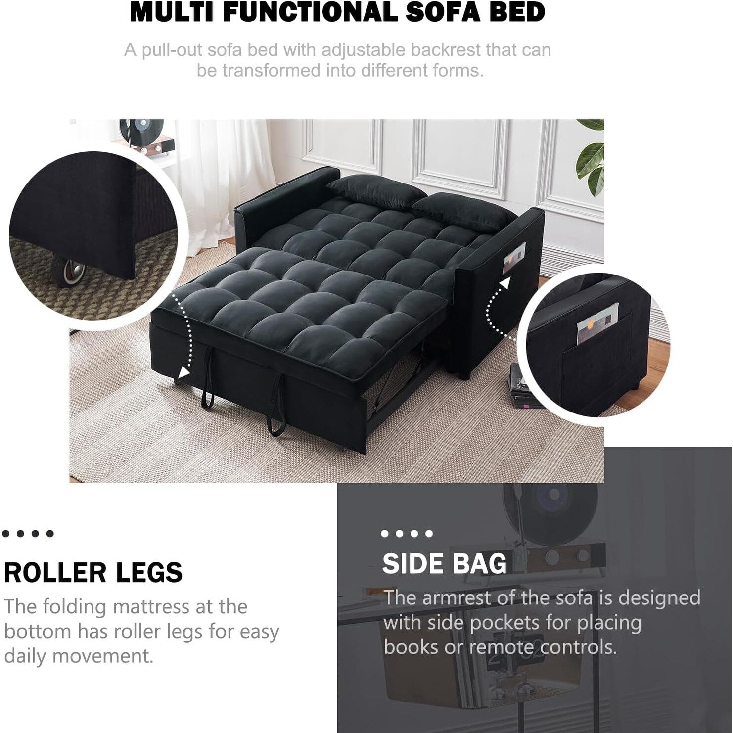 Divano letto 3 in 1 in velluto -...