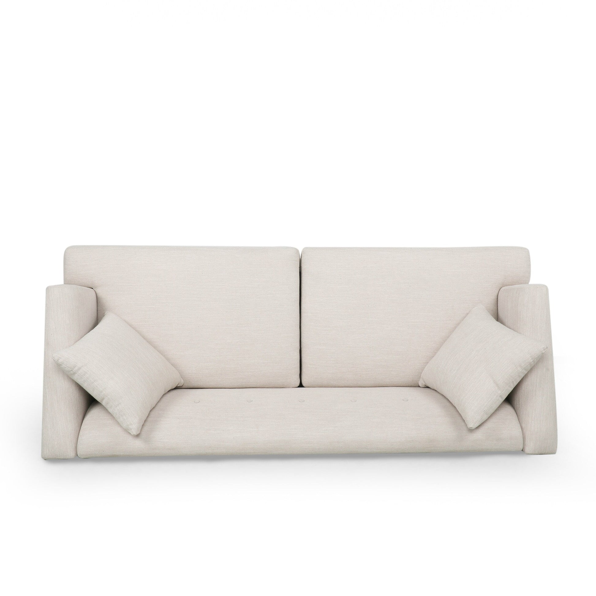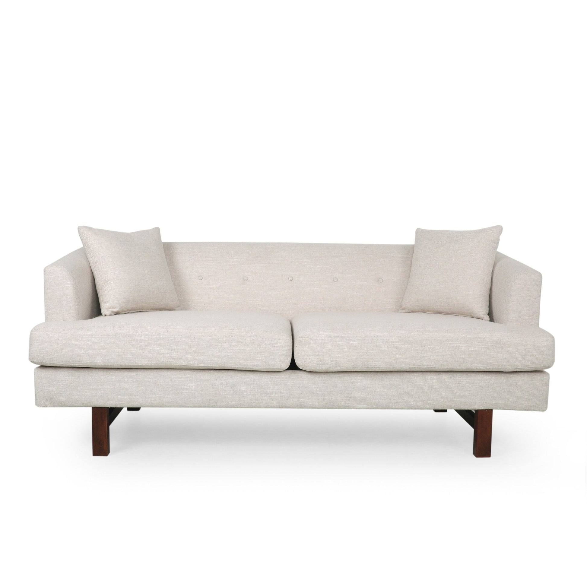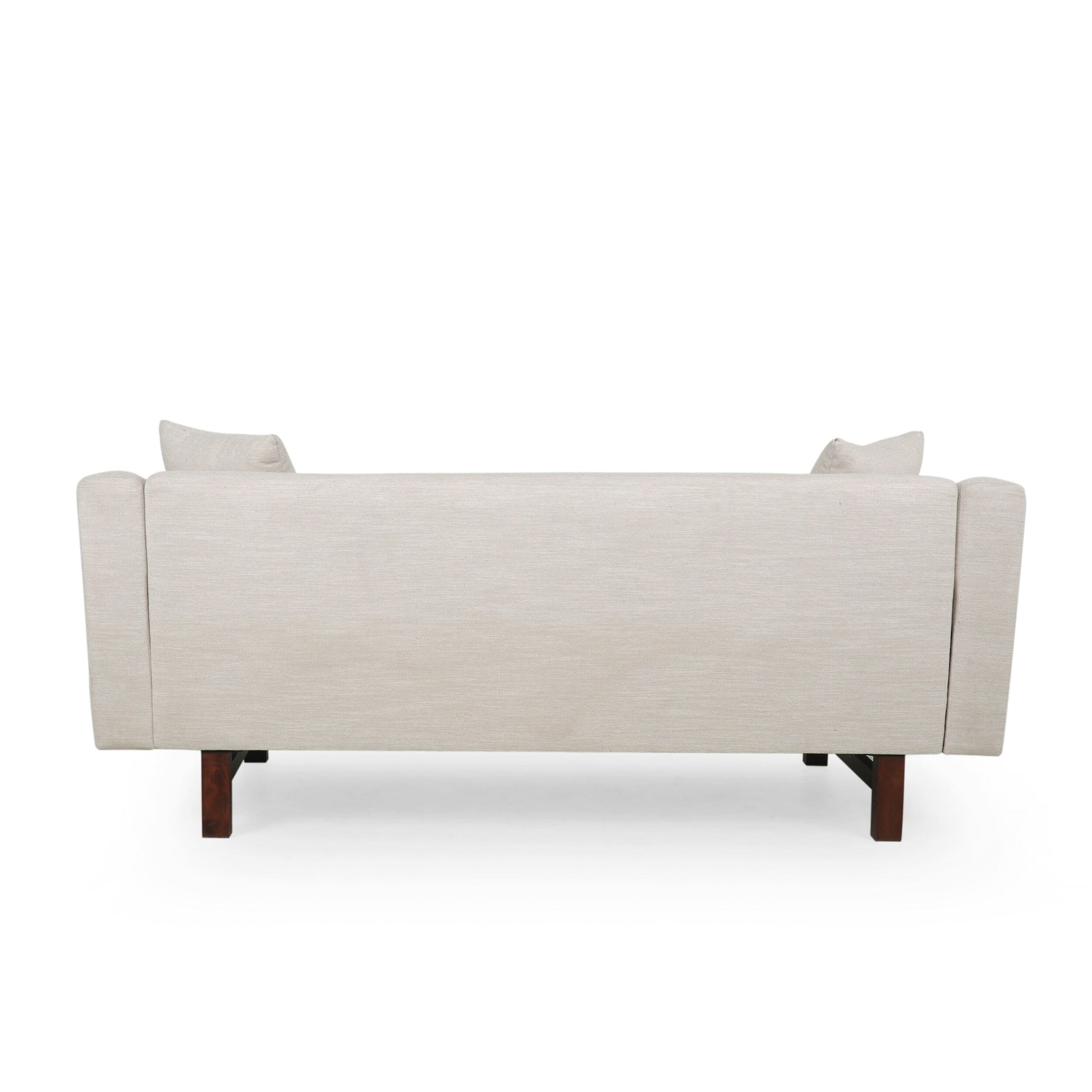 Questo divano unisce uno splendido look classico a un tocco moderno di grande impatto, inserendo facilmente il vostro arredamento in un'atmosfera di eleganza moderna di metà secolo. Questo divano è perfettamente bilanciato su robuste gambe in legno ed è sormontato da cuscini decorativi, che donano uno stile straordinario e una resistenza eccezionale alla vostra casa. DESIGN DI METÀ CENTO: Unendo gambe in legno dritte a linee pulite e un rivestimento liscio, il nostro divano offre un look di metà secolo al vostro salotto. Con le sue linee pulite e il suo aspetto sobrio, questo divano utilizza nuovi materiali per reinterpretare un design tradizionale. IMBOTTITO: Il nostro divano è generosamente imbottito, conferendo a qualsiasi ambiente un aspetto raffinato. Questo conferisce a questo pezzo una texture liscia e impeccabile, oltre a un'imbottitura confortevole per sedute morbide. CUSCINI DECORATIVI: I cuscini decorativi quadrati contribuiscono a legare insieme questo divano contemporaneo, bilanciando le sue gambe tornite e completando il divano in generale. Questo aggiunge un tocco di comfort in più al pezzo. GAMBE IN LEGNO DI BETULLA: Questo divano è sostenuto da robuste gambe in legno di betulla che offrono un aspetto accattivante e una struttura resistente. La sua grana fine resiste bene alle macchie, conferendo a questo pezzo una finitura splendida. DIMENSIONI: Scegli un accessorio della dimensione perfetta per te e per i tuoi mobili. Questo divano misura 73,50' L x 30,25' P x 29,25' A. Amerai quanto il tuo spazio possa trasformarsi con la semplice aggiunta di questo grazioso divano.