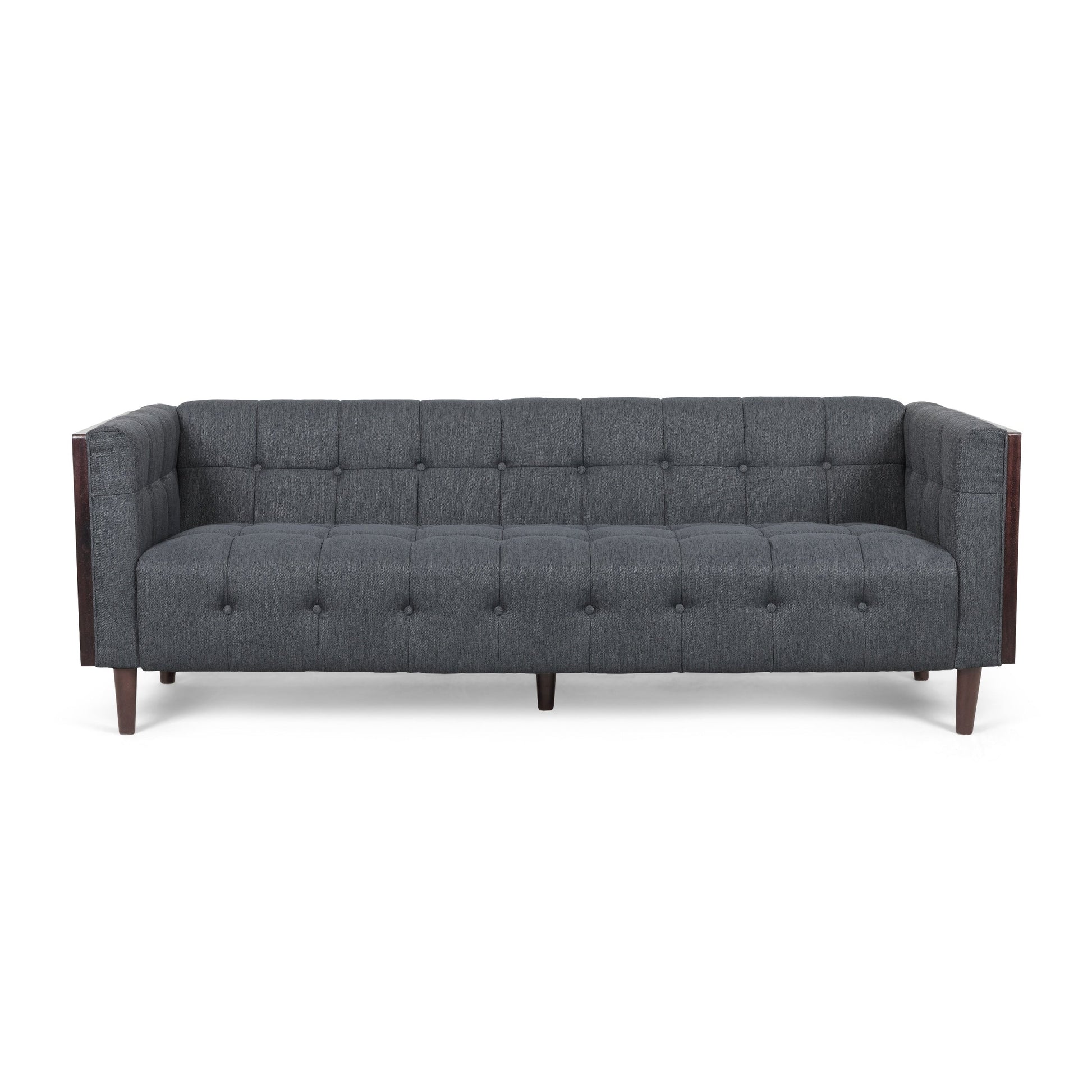 Divano a 3 posti con bottoni trapuntati, gambe...