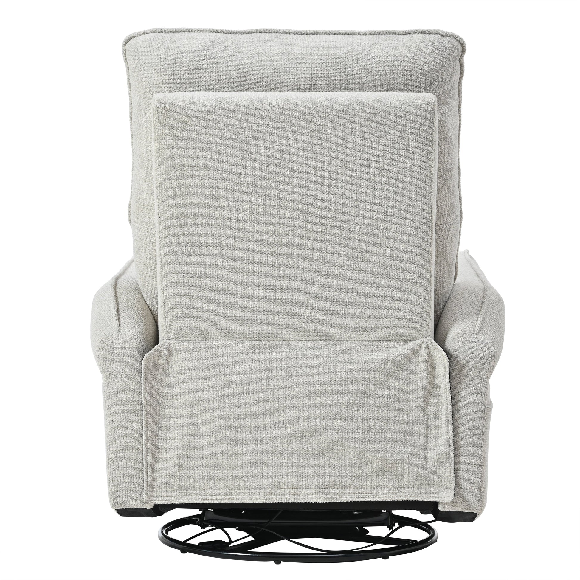 Poltrona reclinabile a dondolo girevole a 360°, meccanismo manuale con poggiapiedi, moderna poltrona imbottita per piccoli spazi, tasche laterali