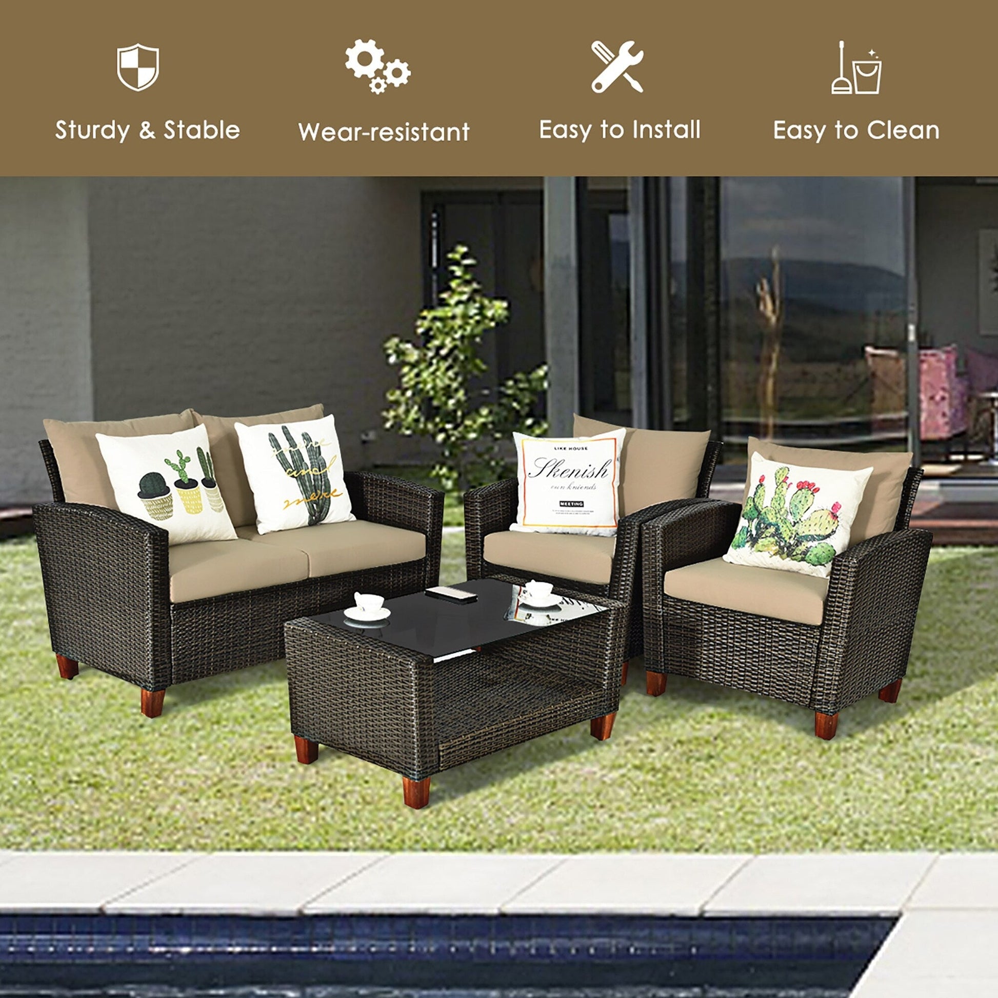 Set di 4 mobili da giardino in rattan...