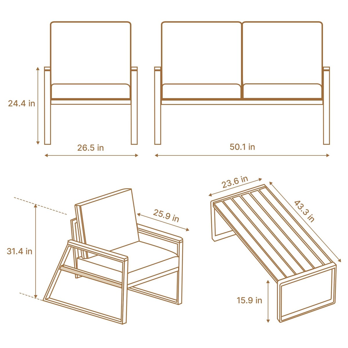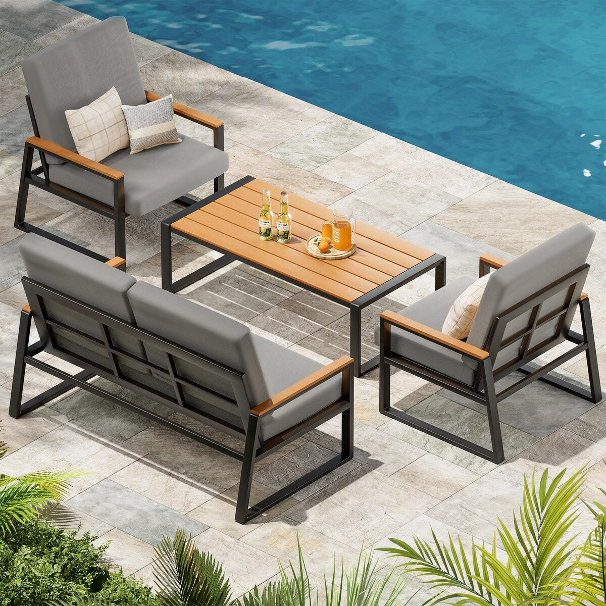 Set da salotto da esterno in legno massello...