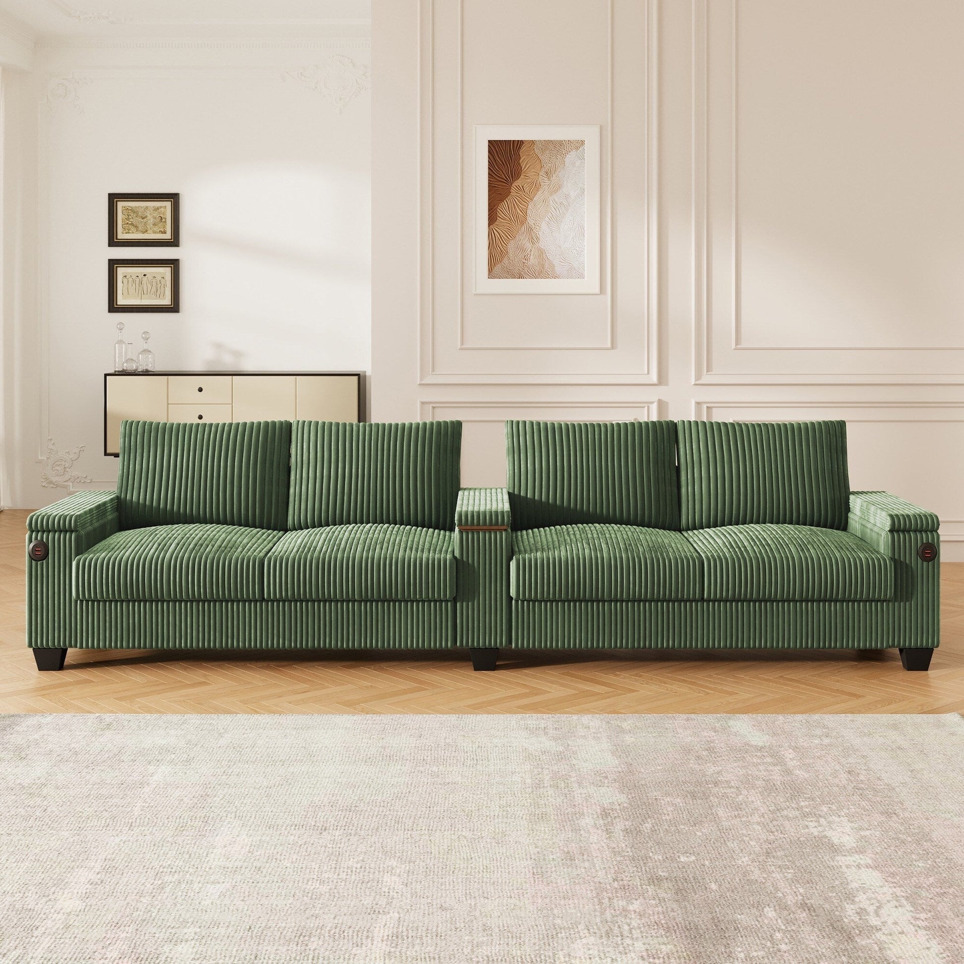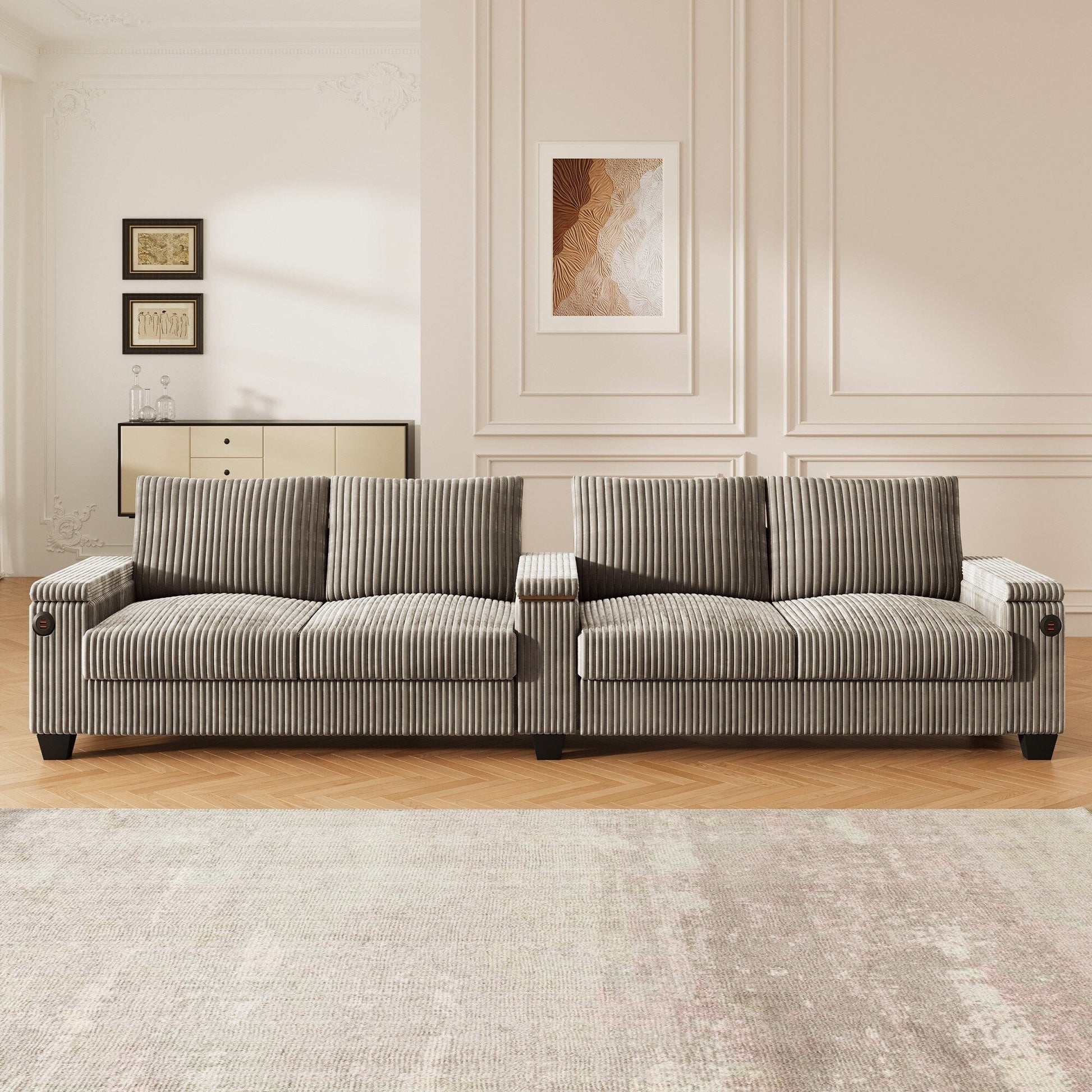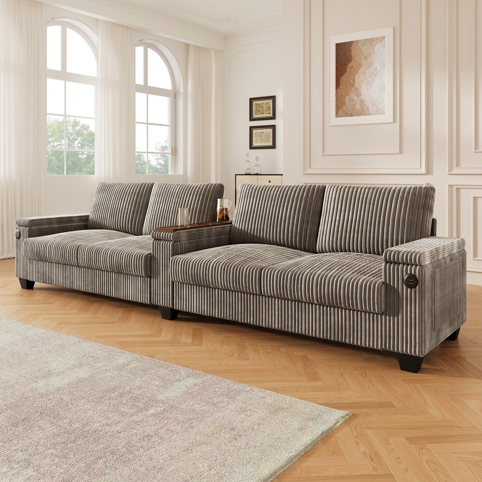 Divano moderno in velluto a coste a 4 posti con porte USB, spazio nascosto e portabicchieri ribaltabile