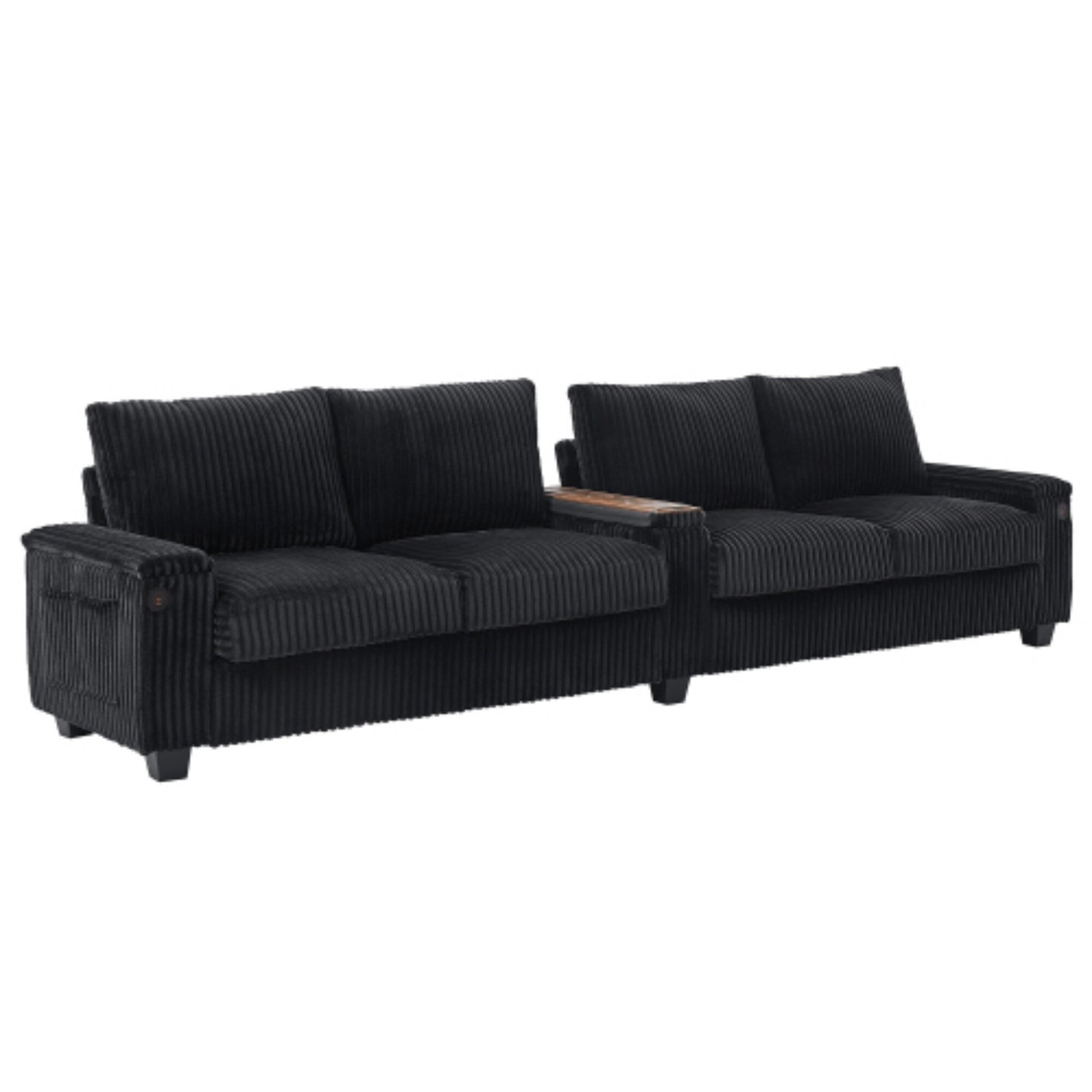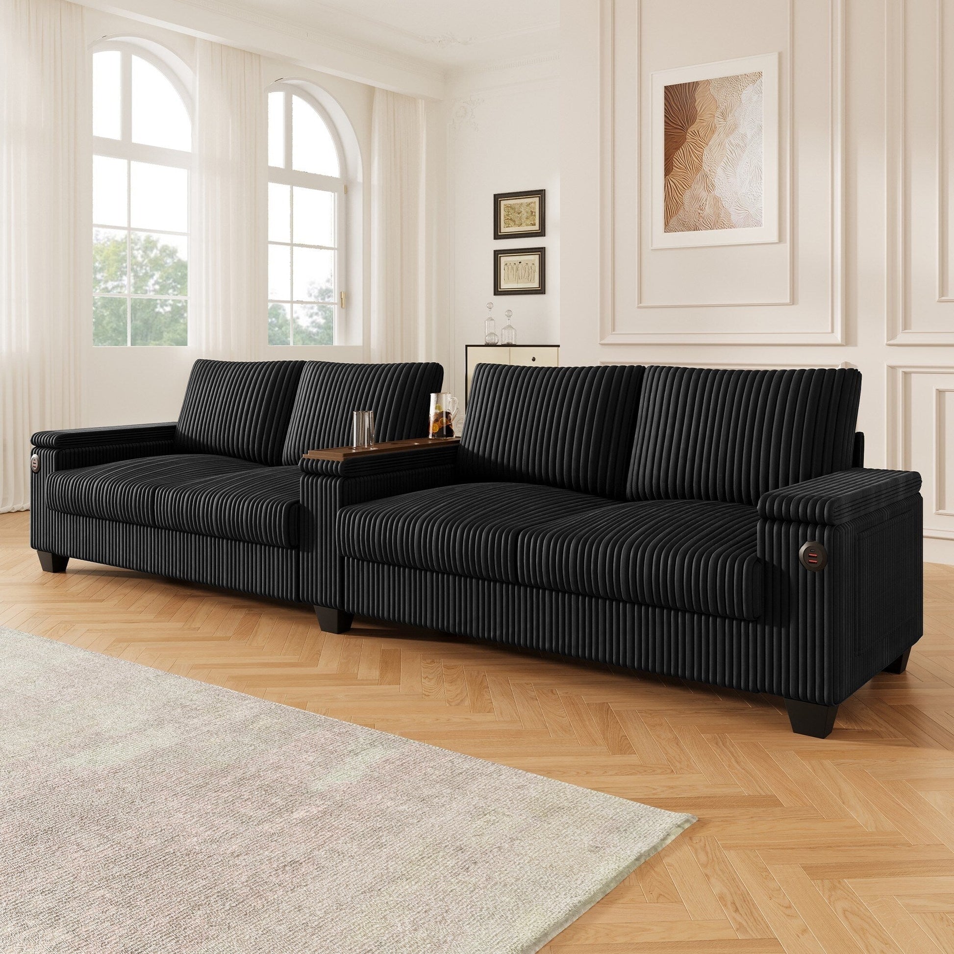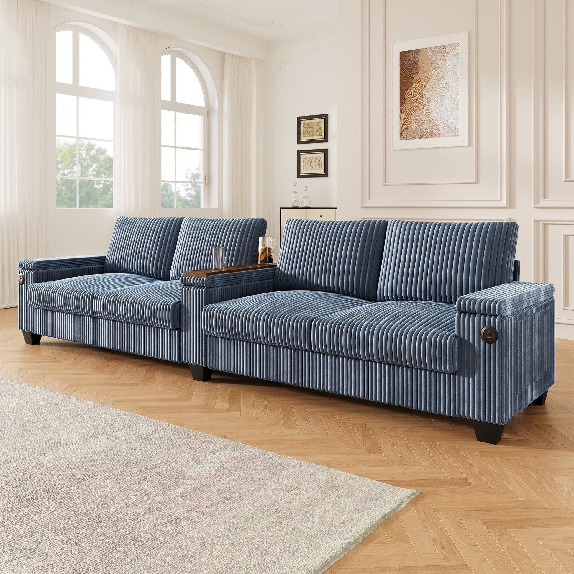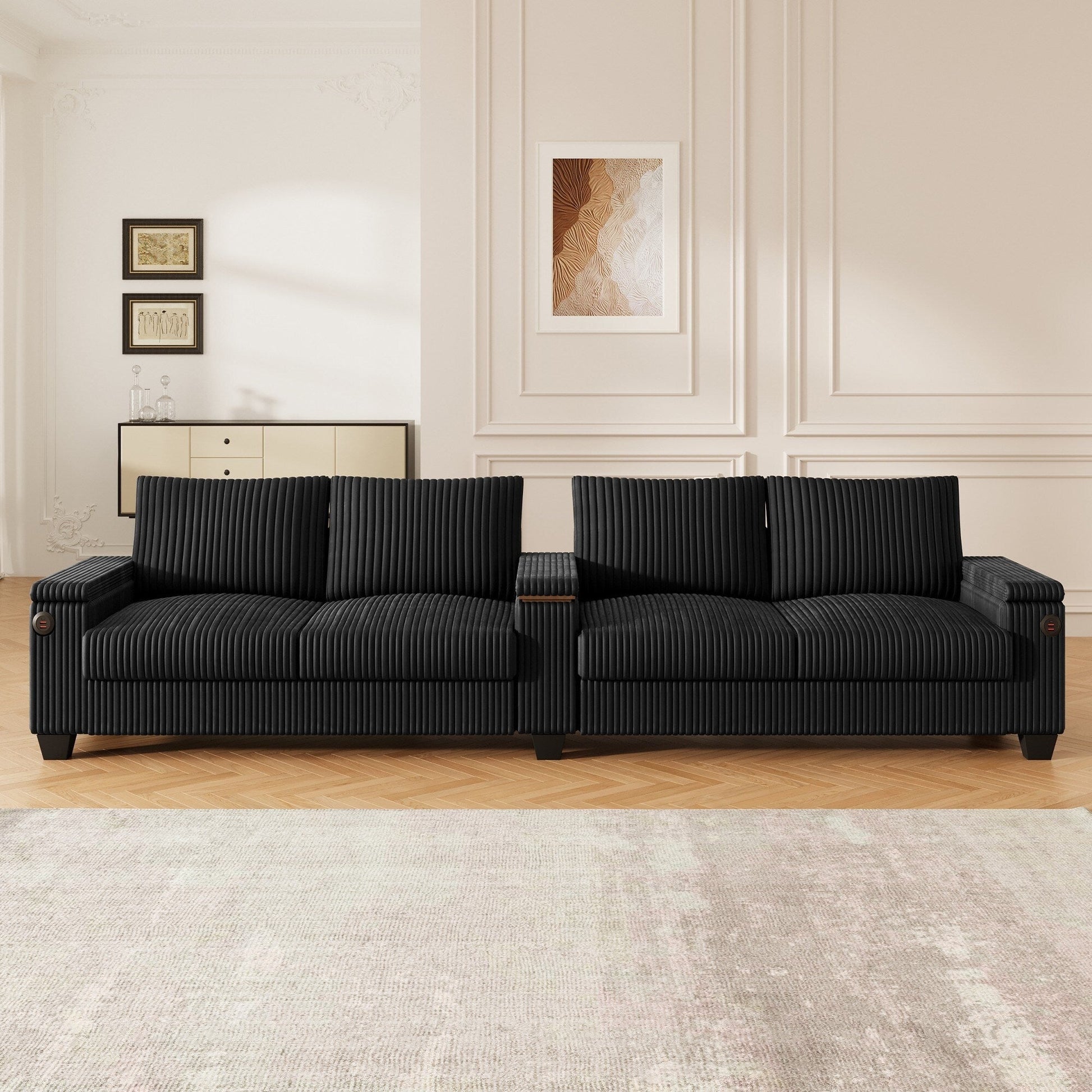 Divano moderno in velluto a coste a 4 posti con porte USB, spazio nascosto e portabicchieri ribaltabile