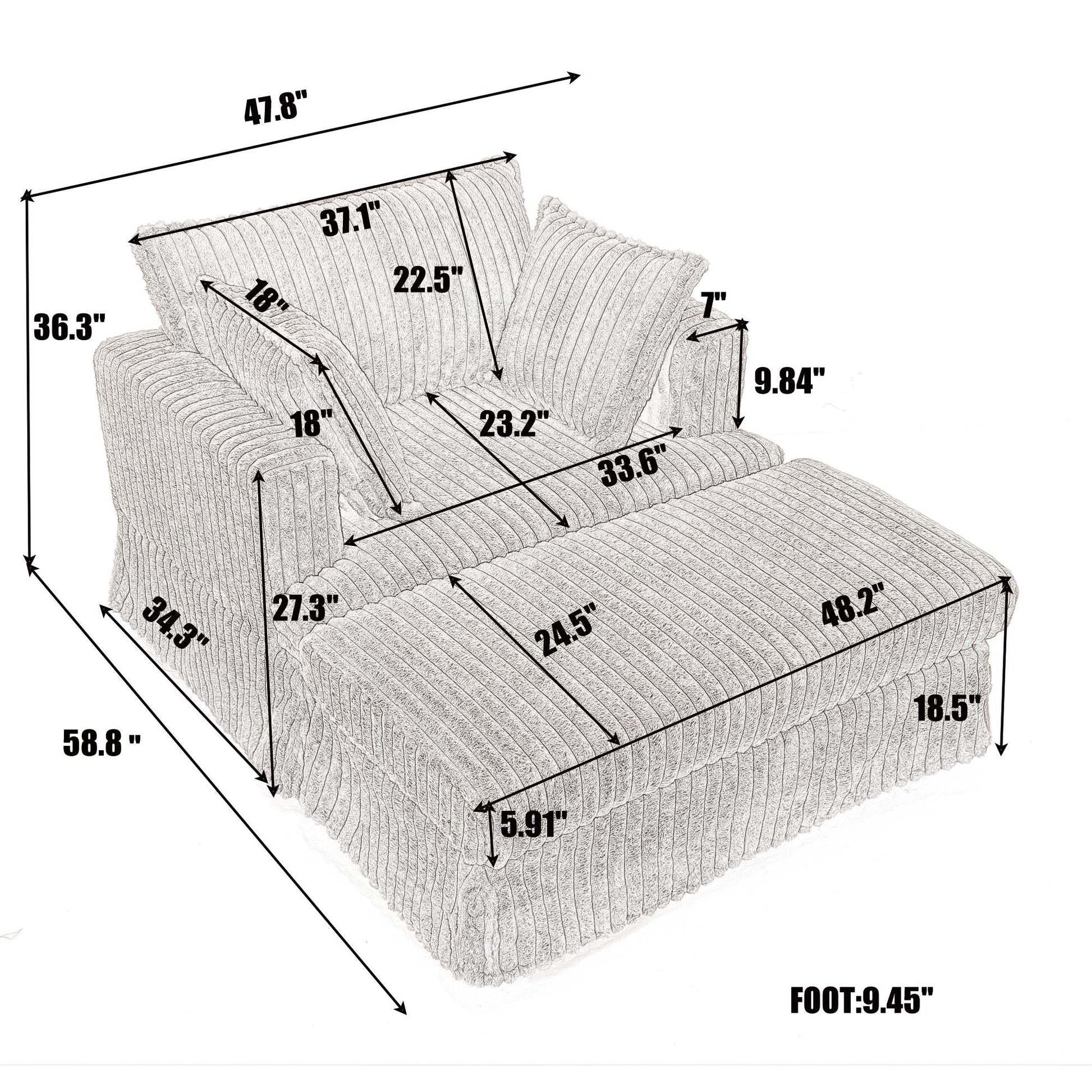 Chaise longue oversize in velluto a coste da 47,7 pollici con poggiapiedi reclinabile