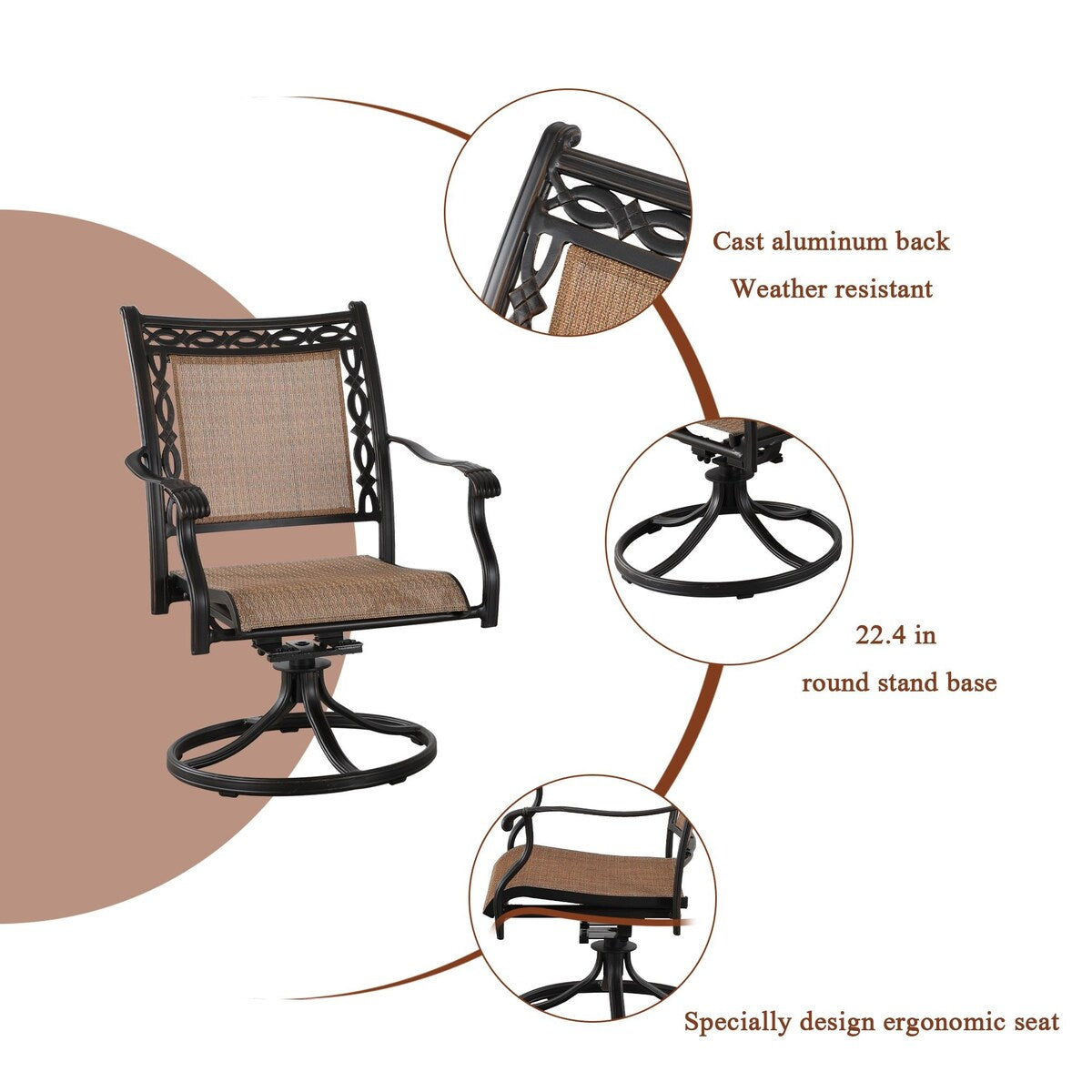 • Questa sedia girevole è realizzata con telai in alluminio resistenti alla ruggine e alle intemperie, che la proteggono da ruggine e graffi.