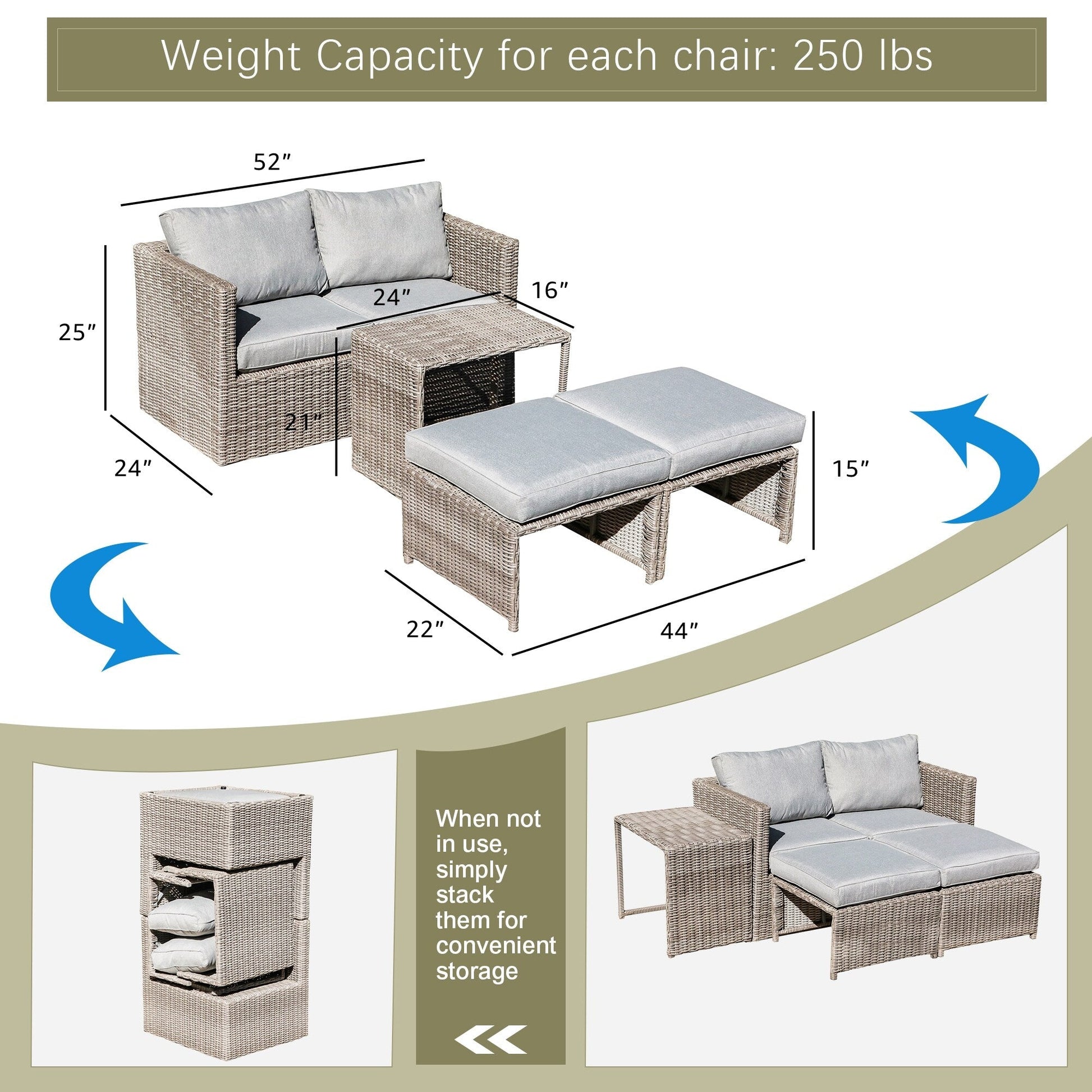 Set da conversazione in rattan da esterno, 5...