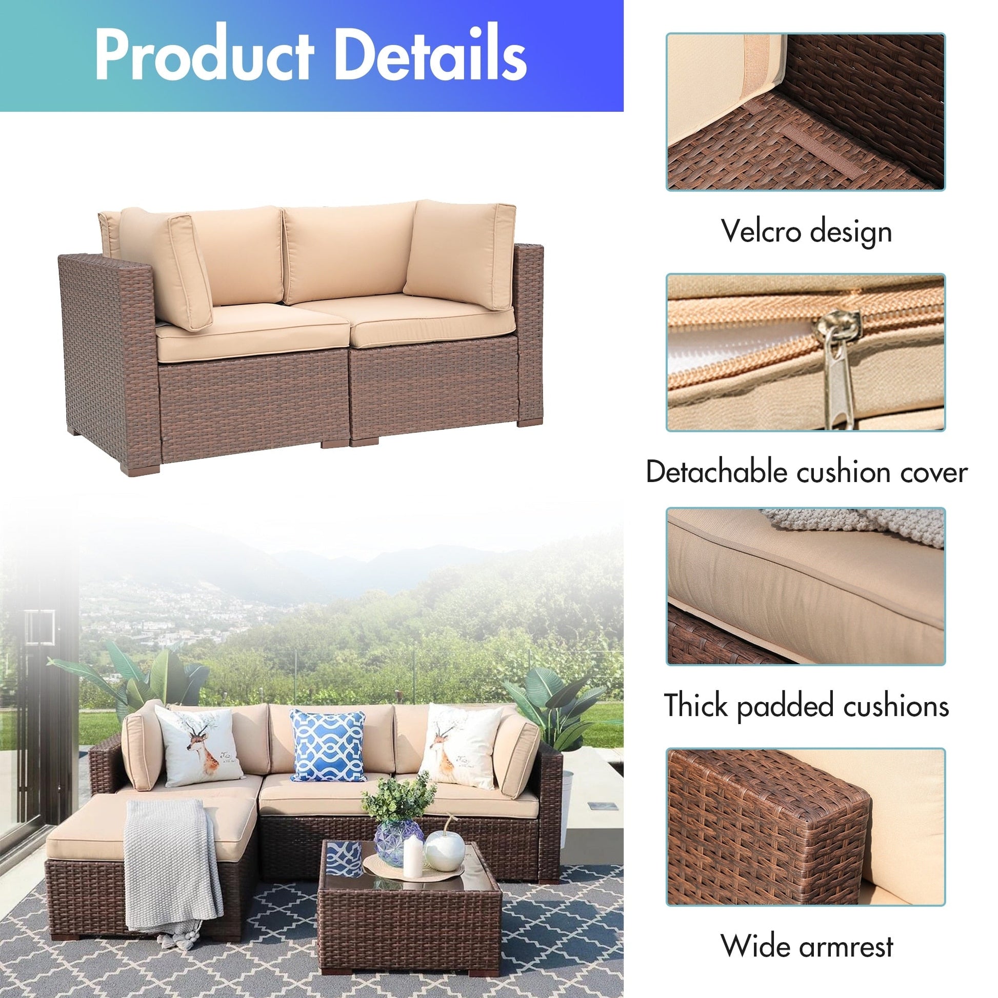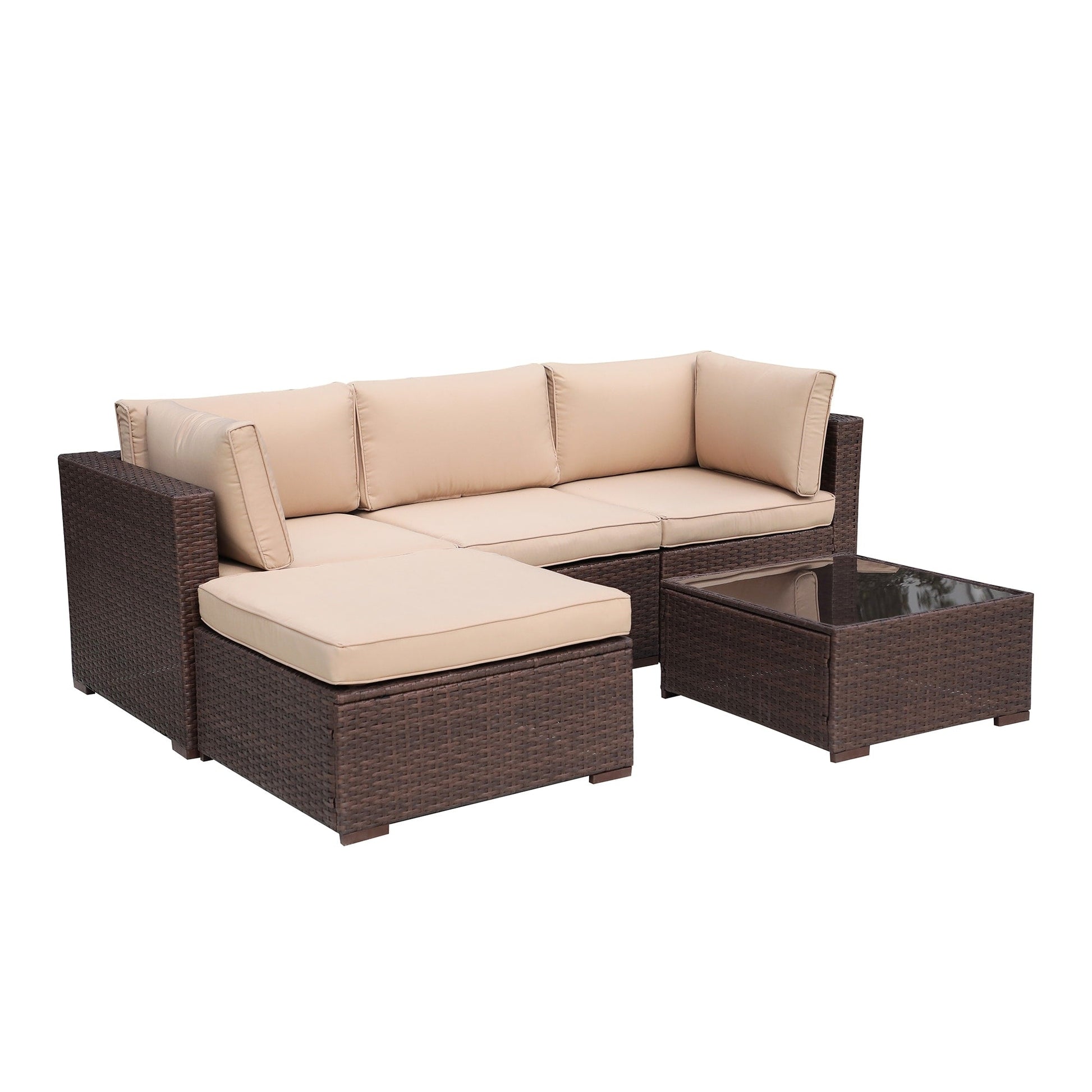 Set di mobili da esterno componibili da 5 pezzi, set di divani in vimini per patio