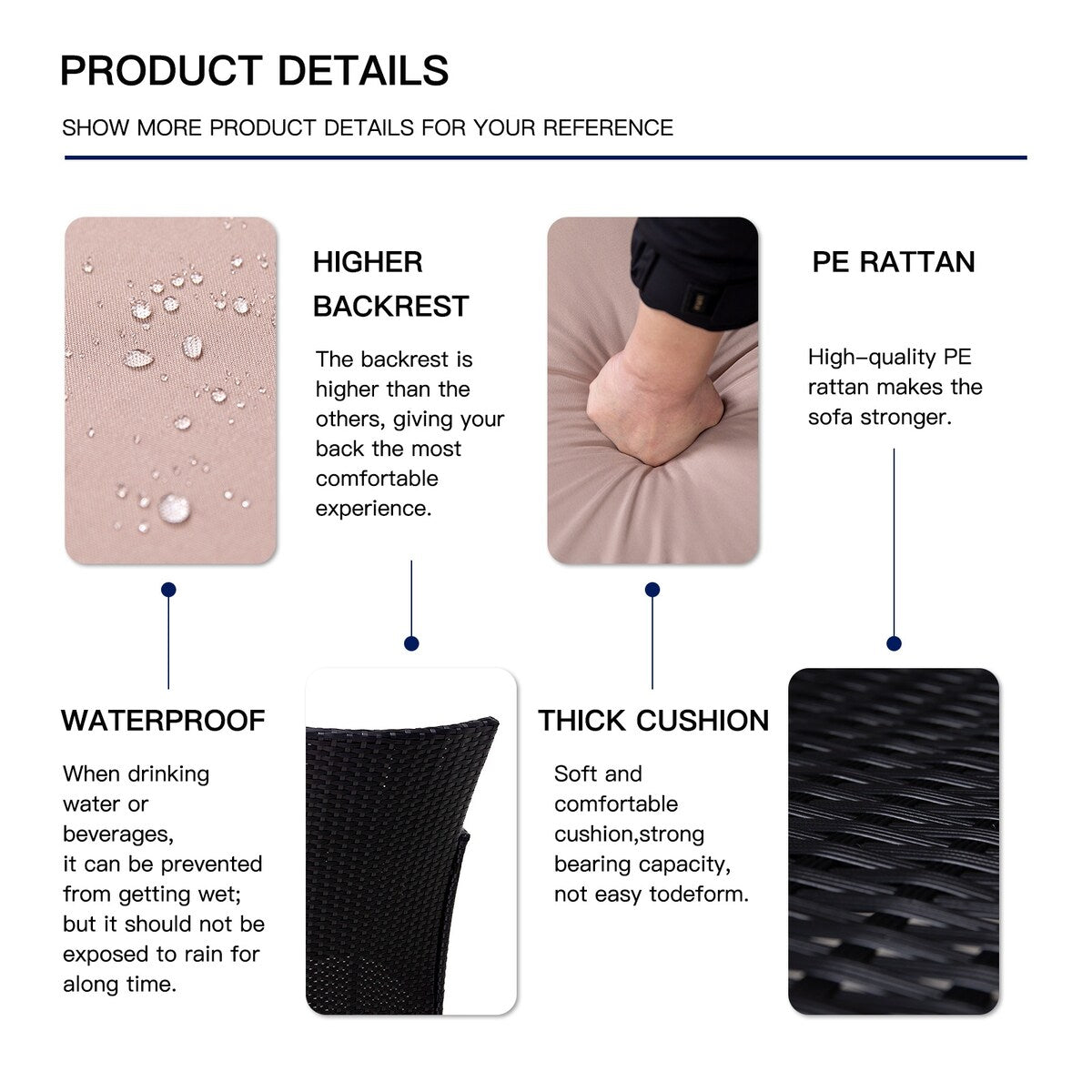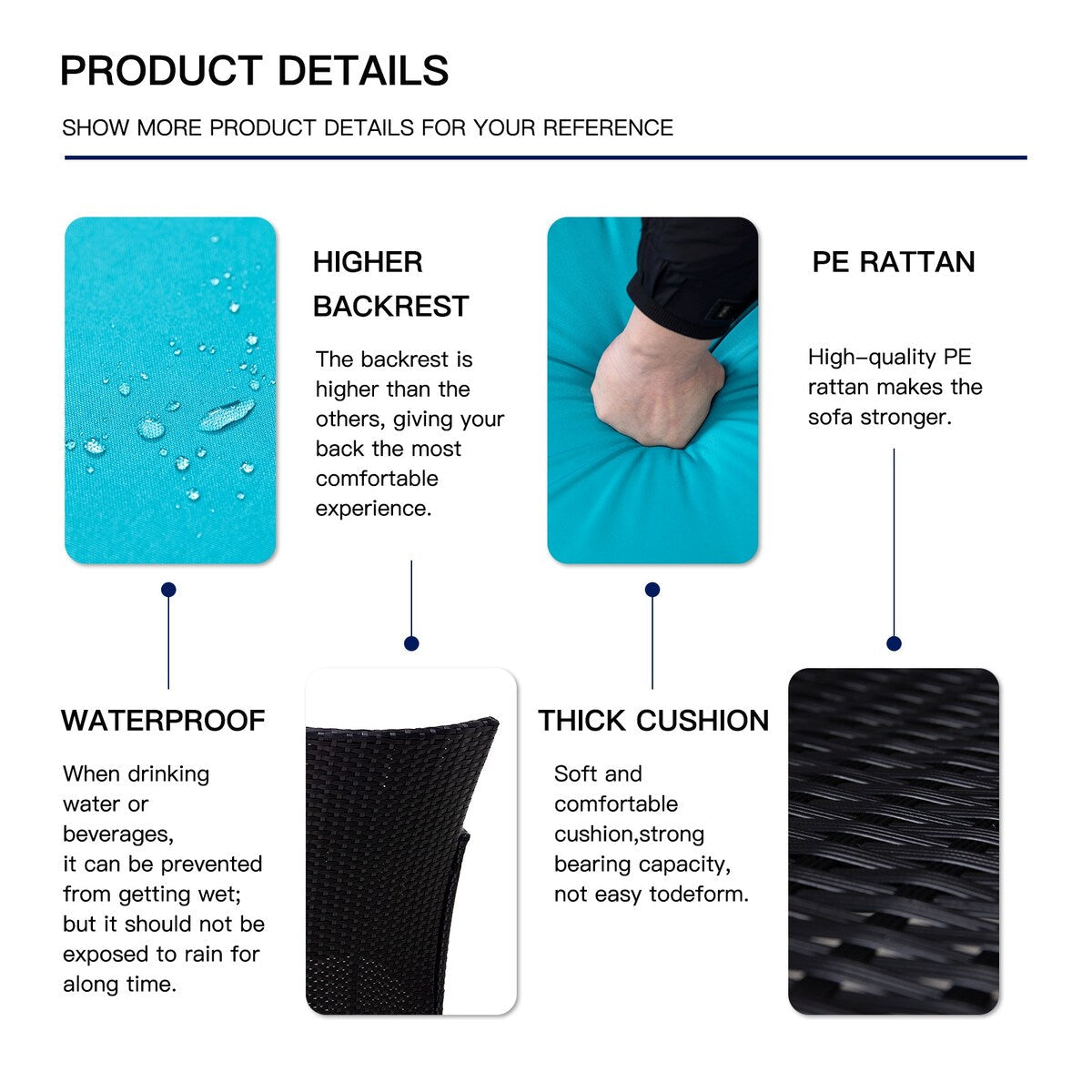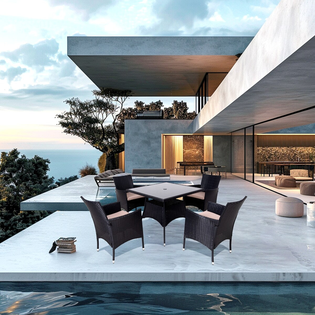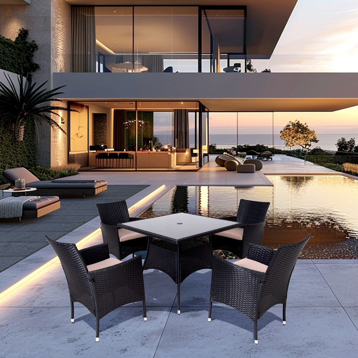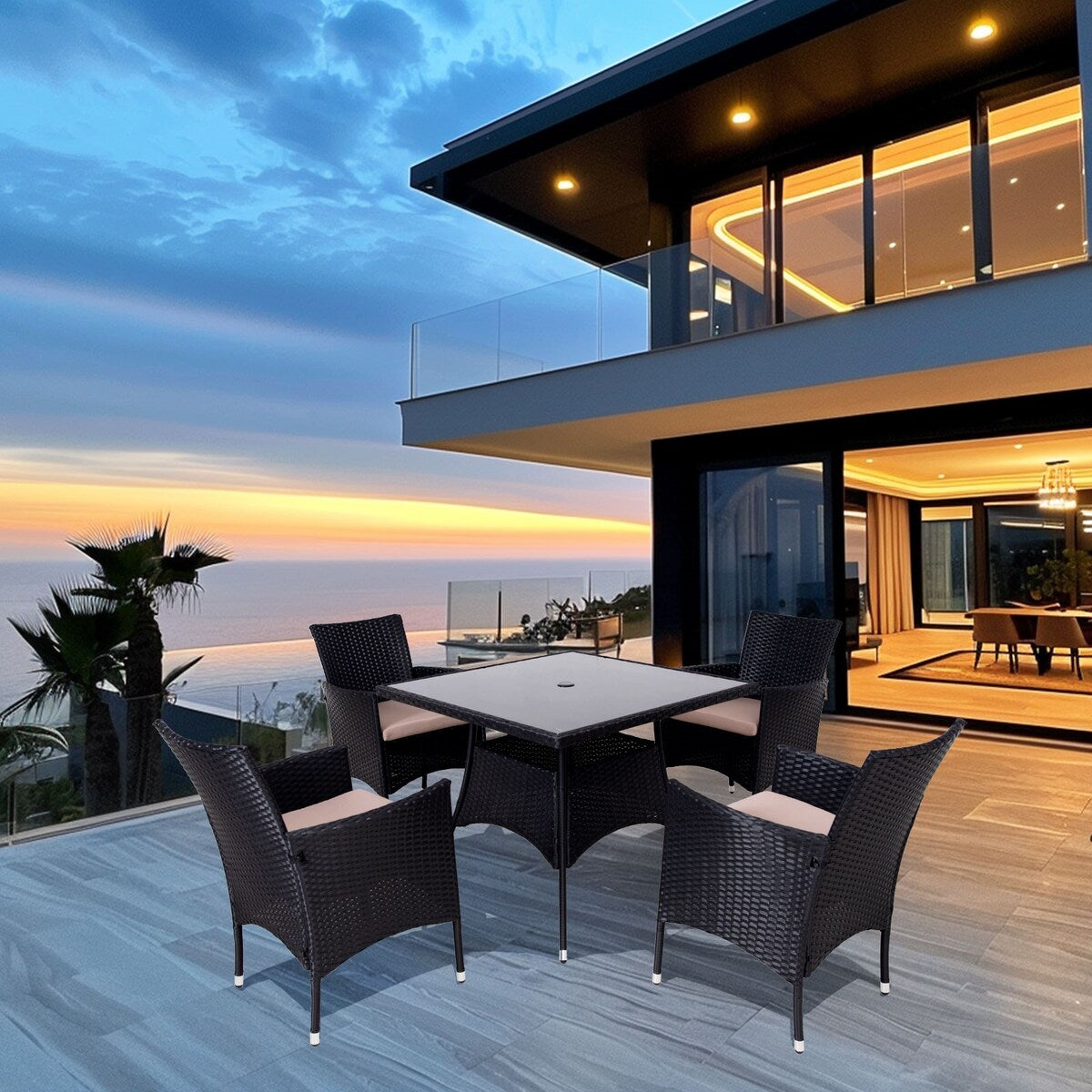 • Il vetro nero è allo stesso tempo moderno e all'avanguardia, il piano del tavolo in vetro temperato è facile da pulire e non lascia macchie d'acqua, mentre il rattan è impermeabile e può essere pulito per la manutenzione.