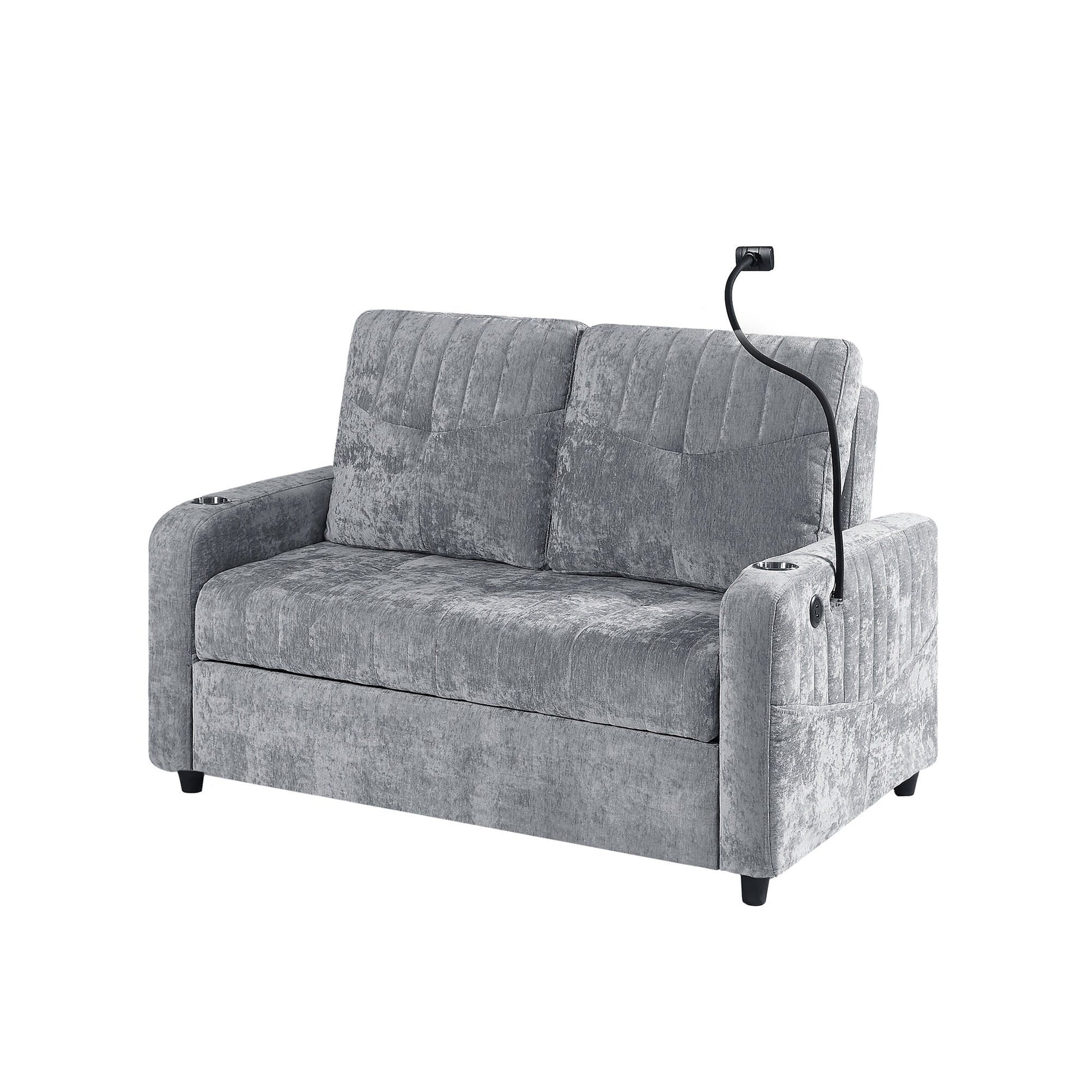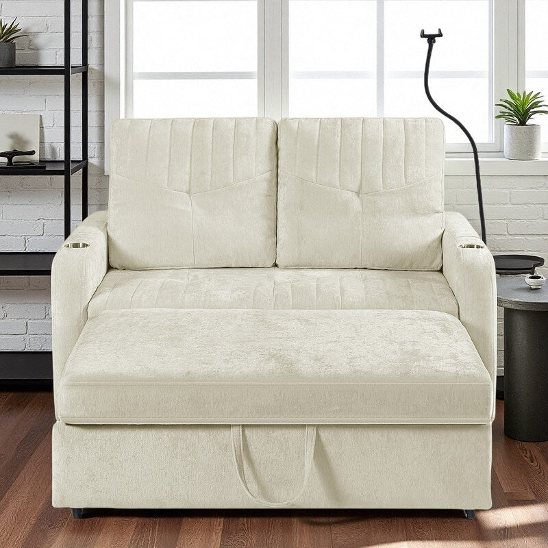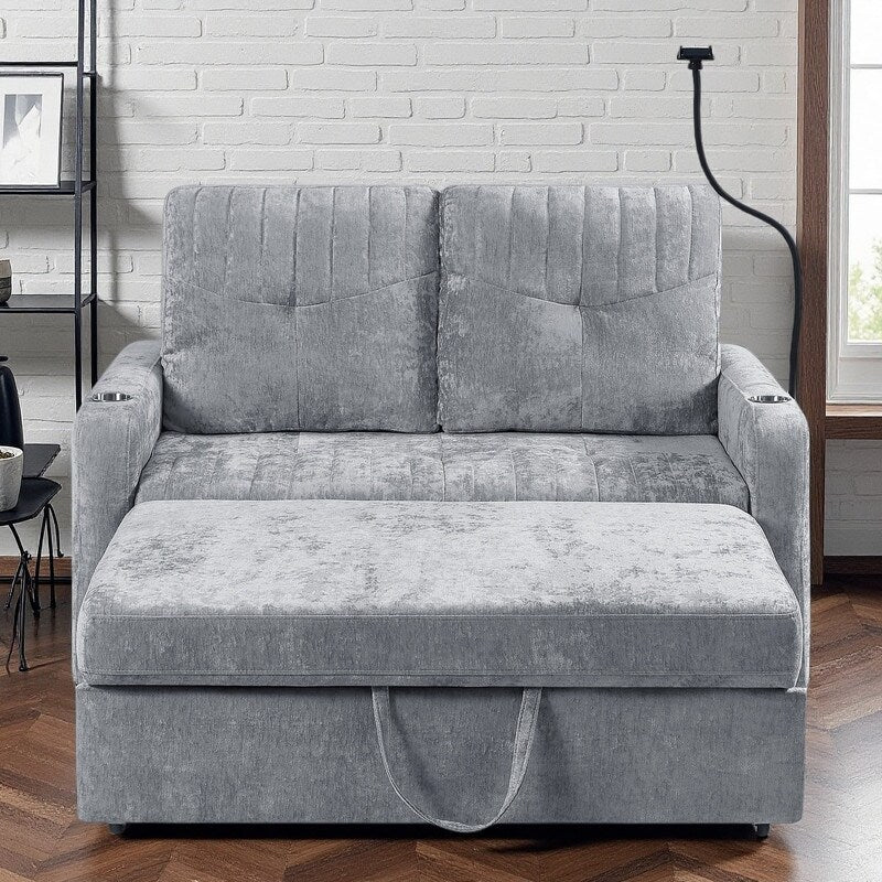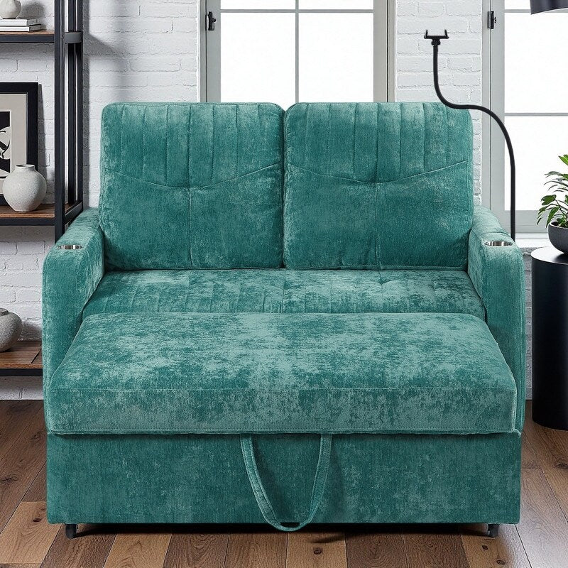 Divano a due posti convertibile in ciniglia da...