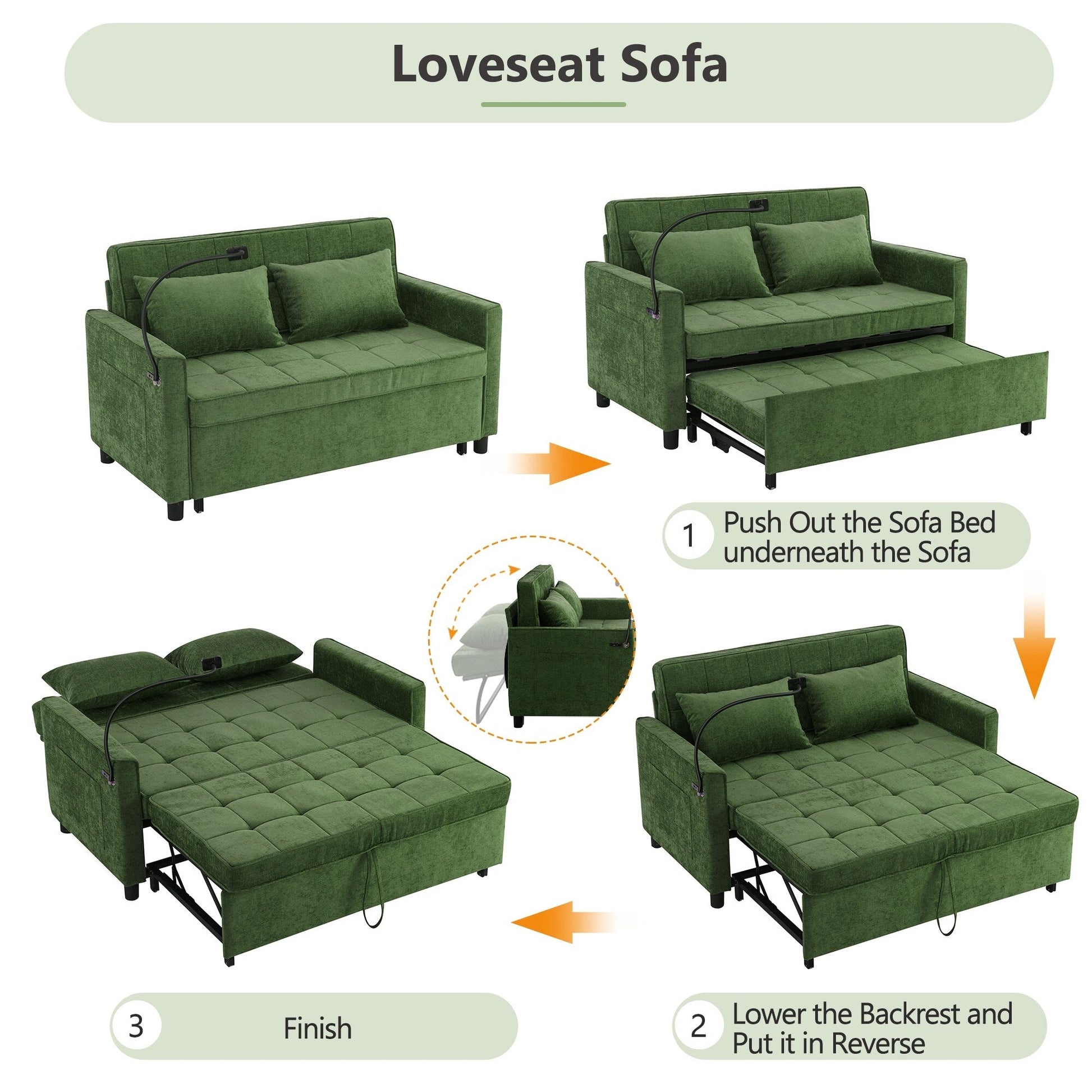 Divano letto convertibile 57 - Divano letto salvaspazio con hub di ricarica USB, schienale reversibile e soluzioni di archiviazione intelligenti