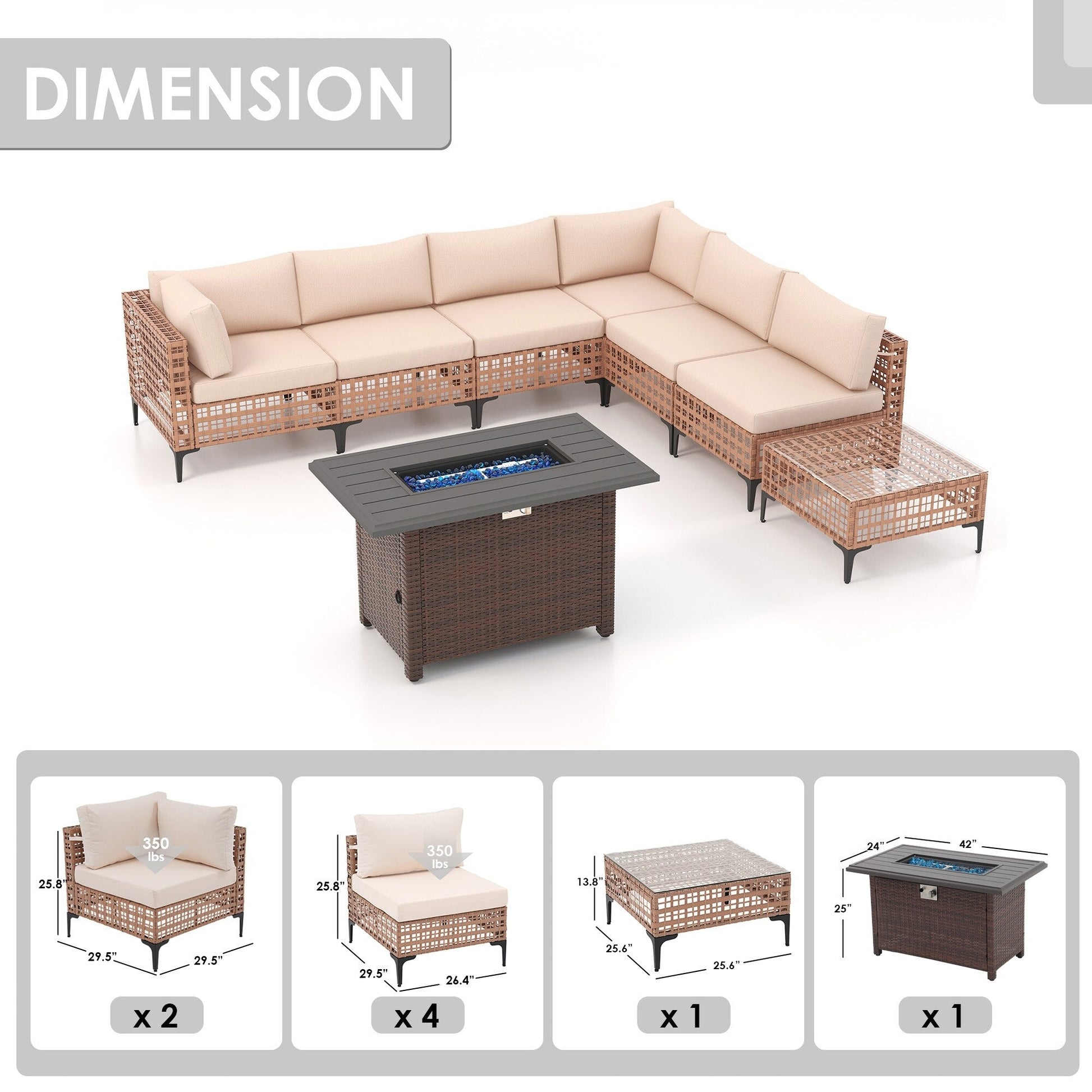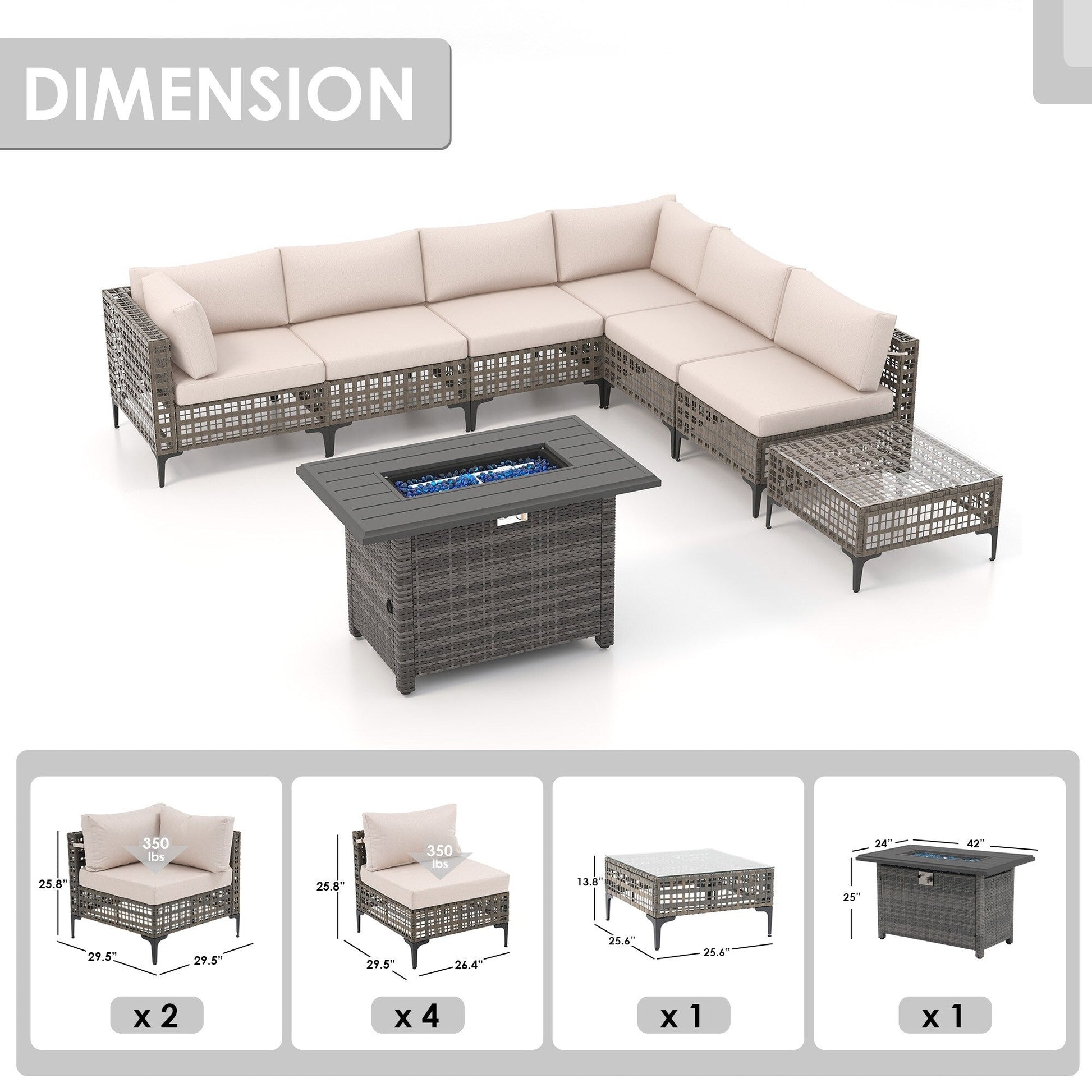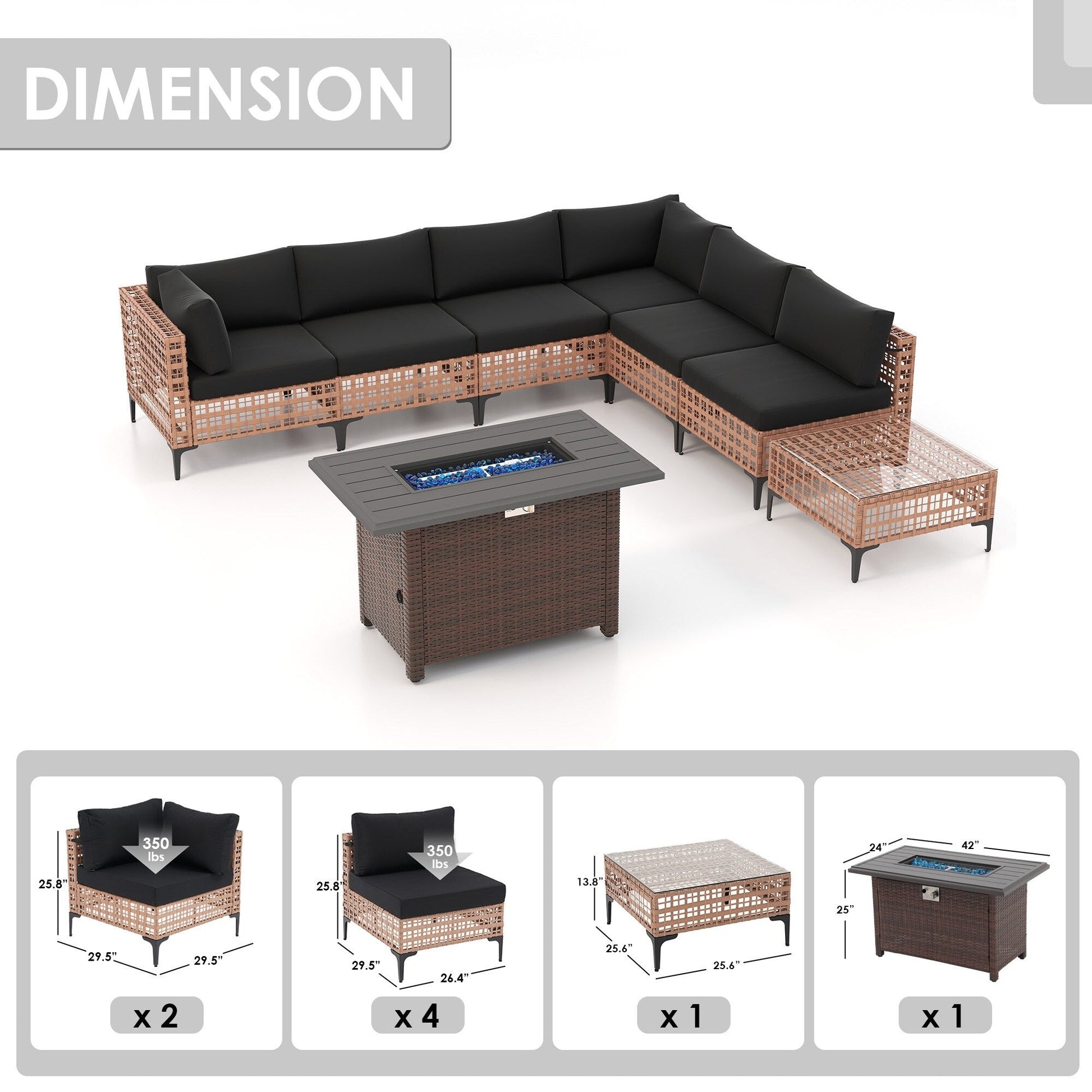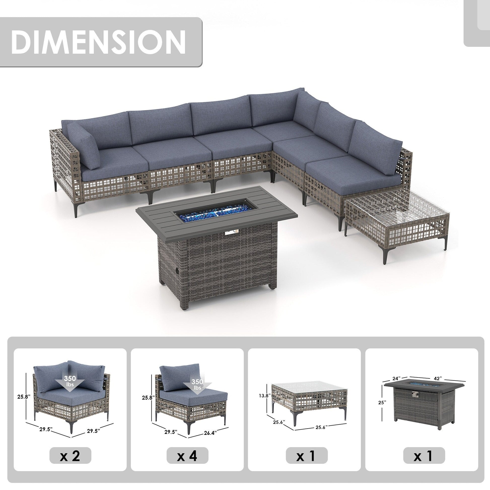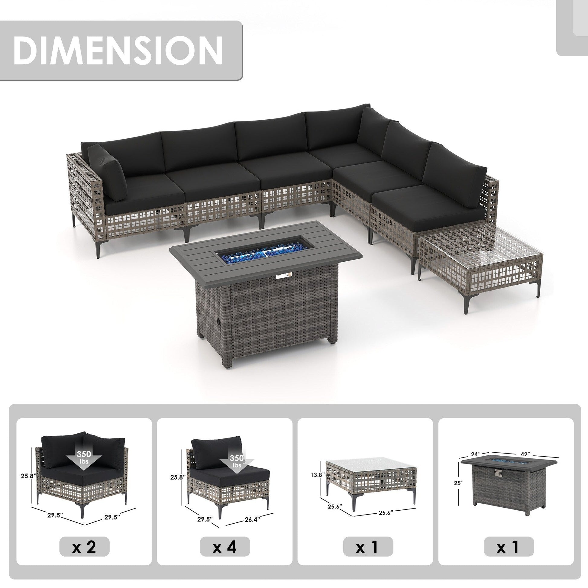 Dimensioni delle sedie angolari: 29,5''P * 29,5''W * 25,8''H