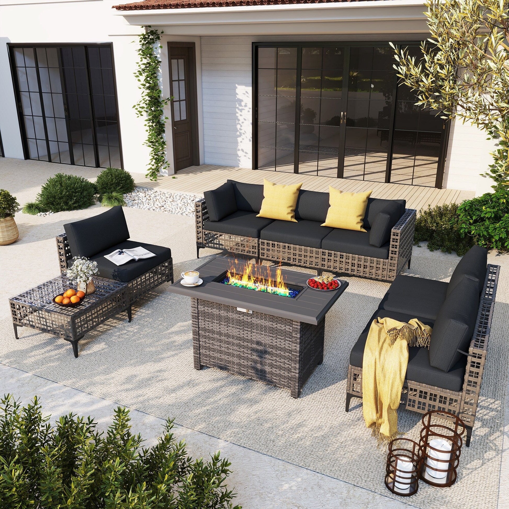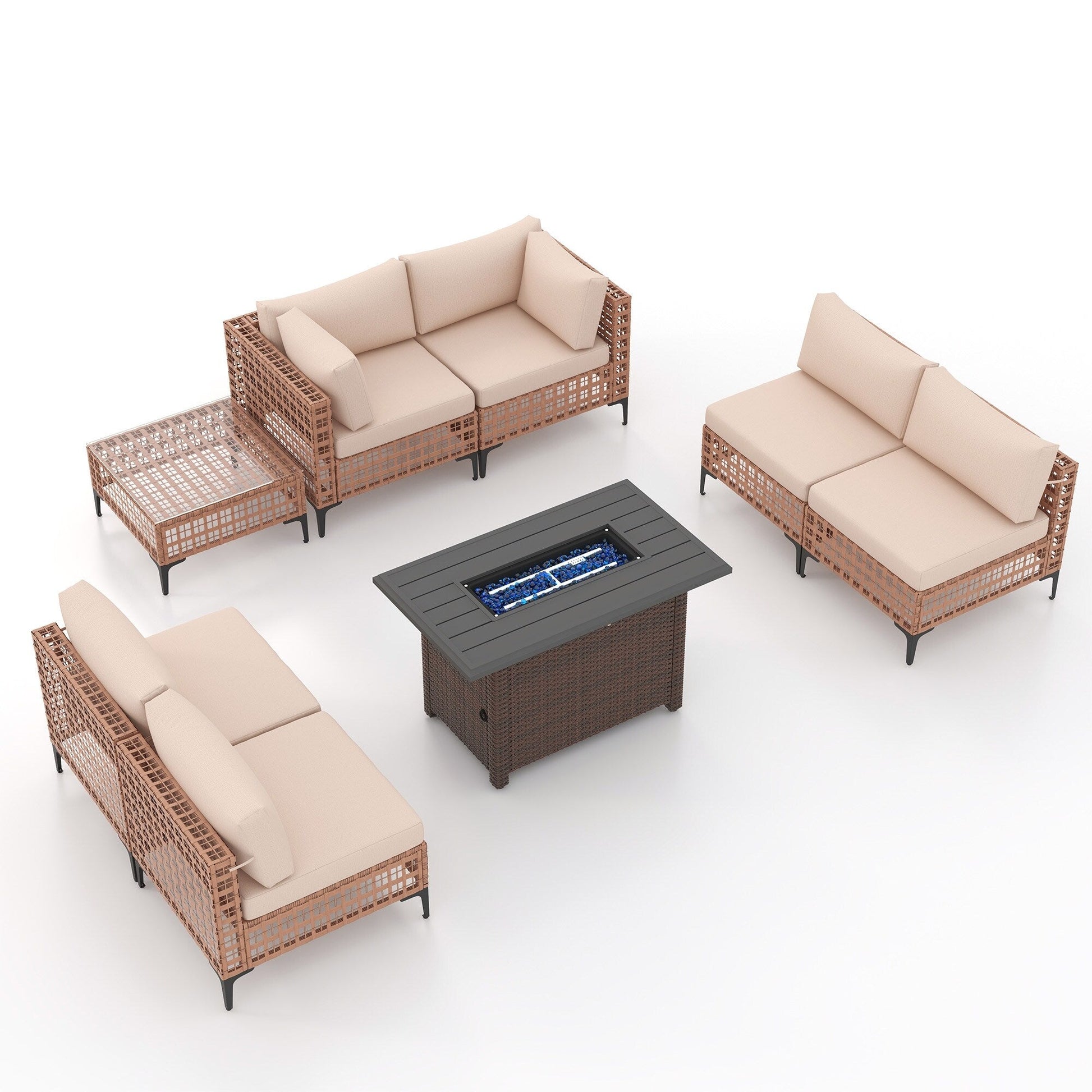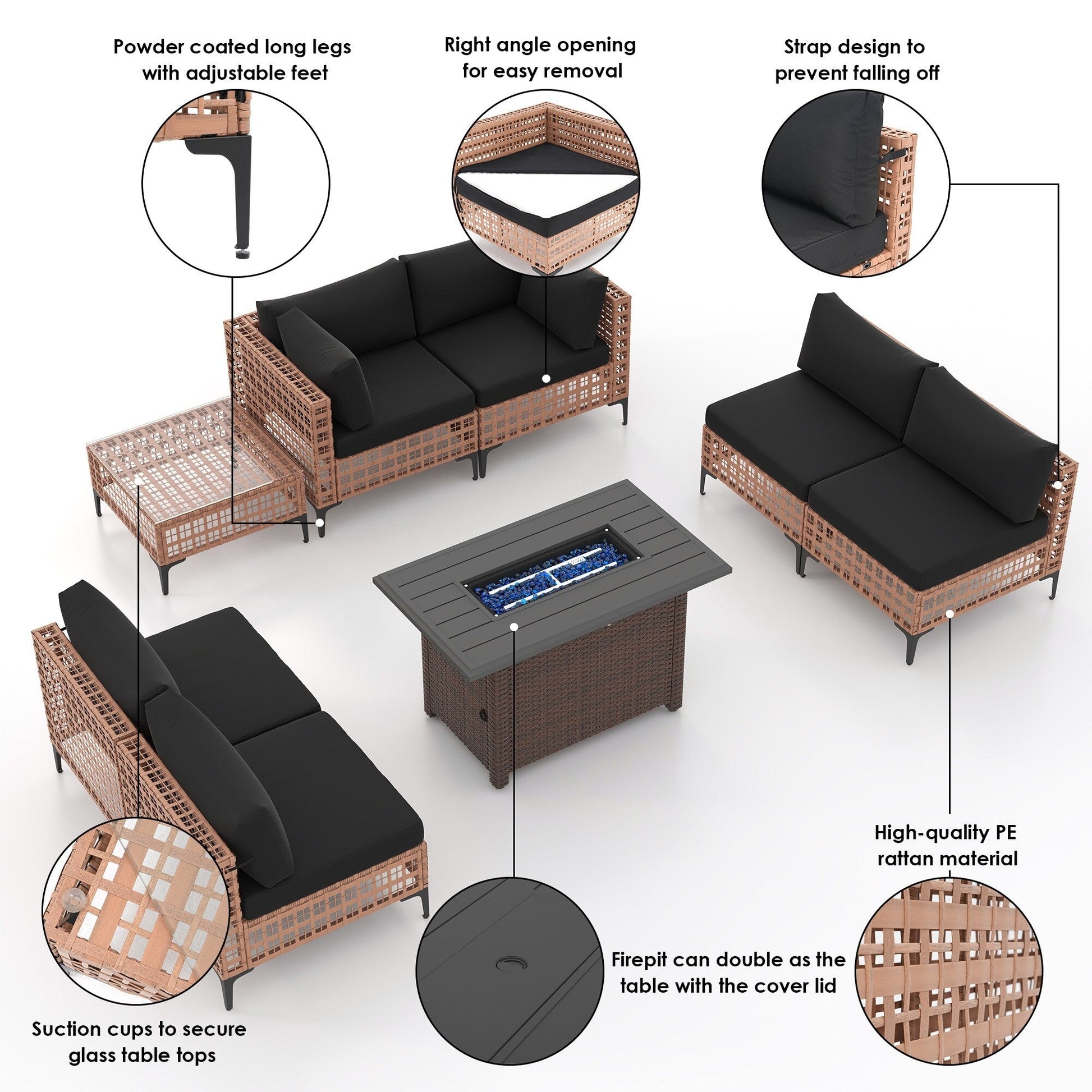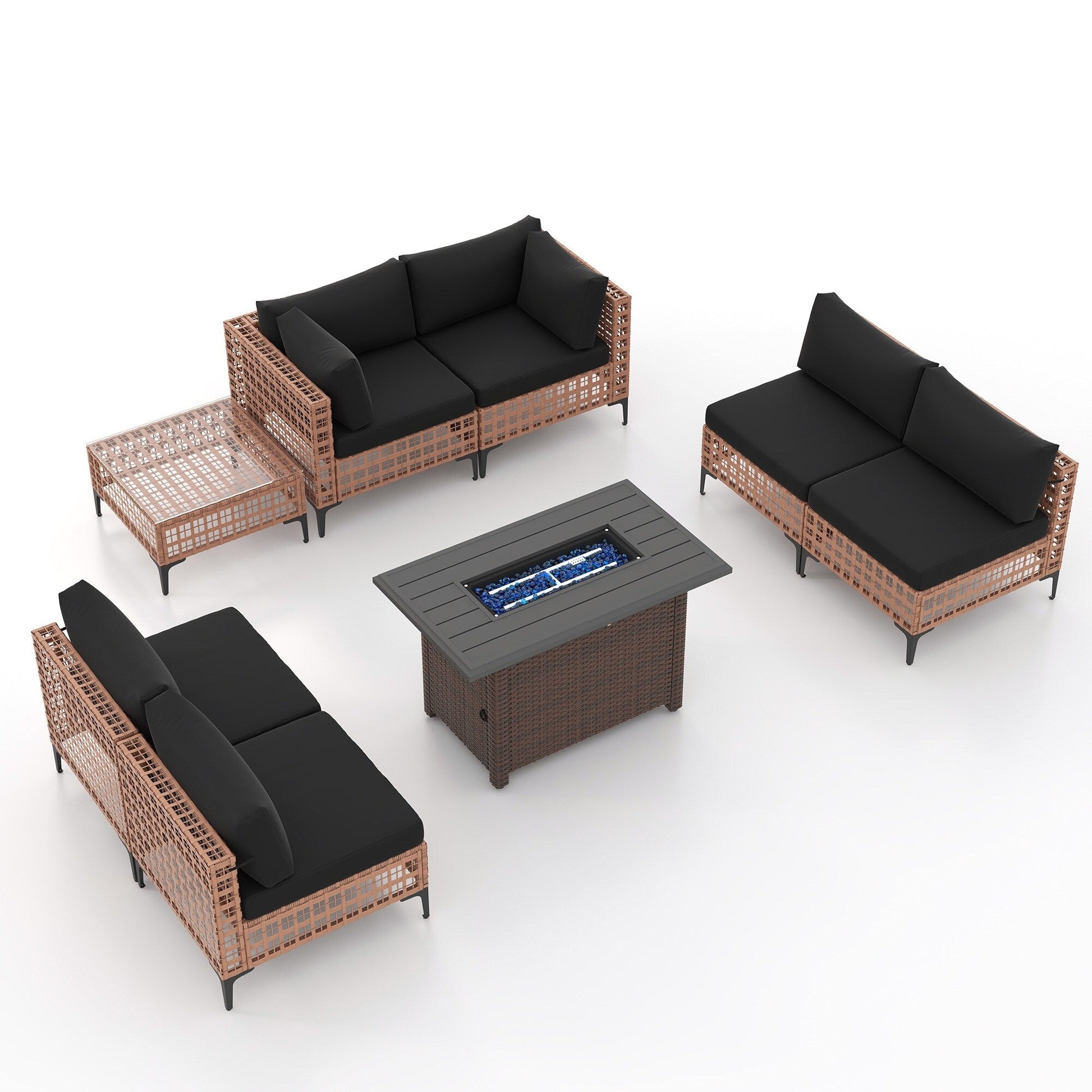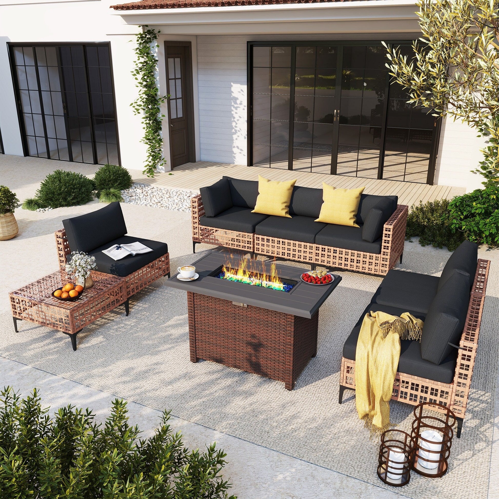 Gruppo di posti a sedere componibili per esterni da 6 persone con braciere