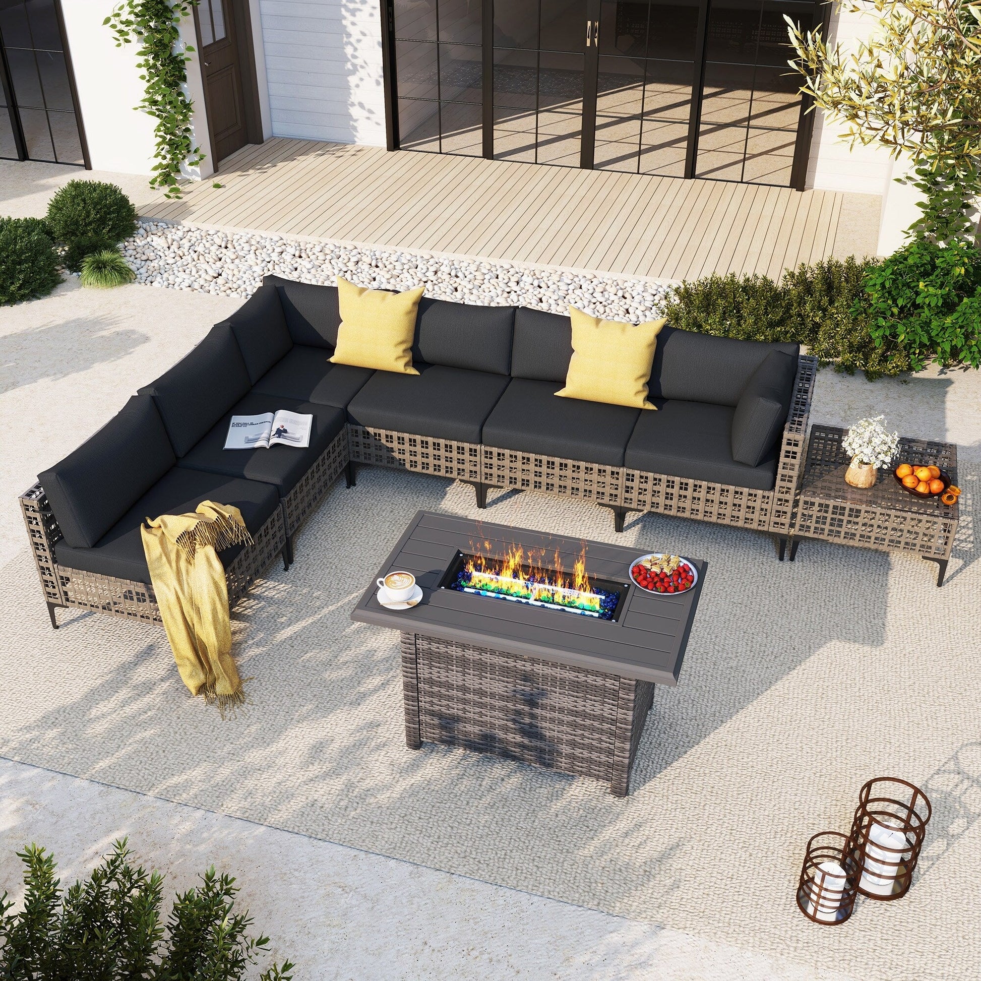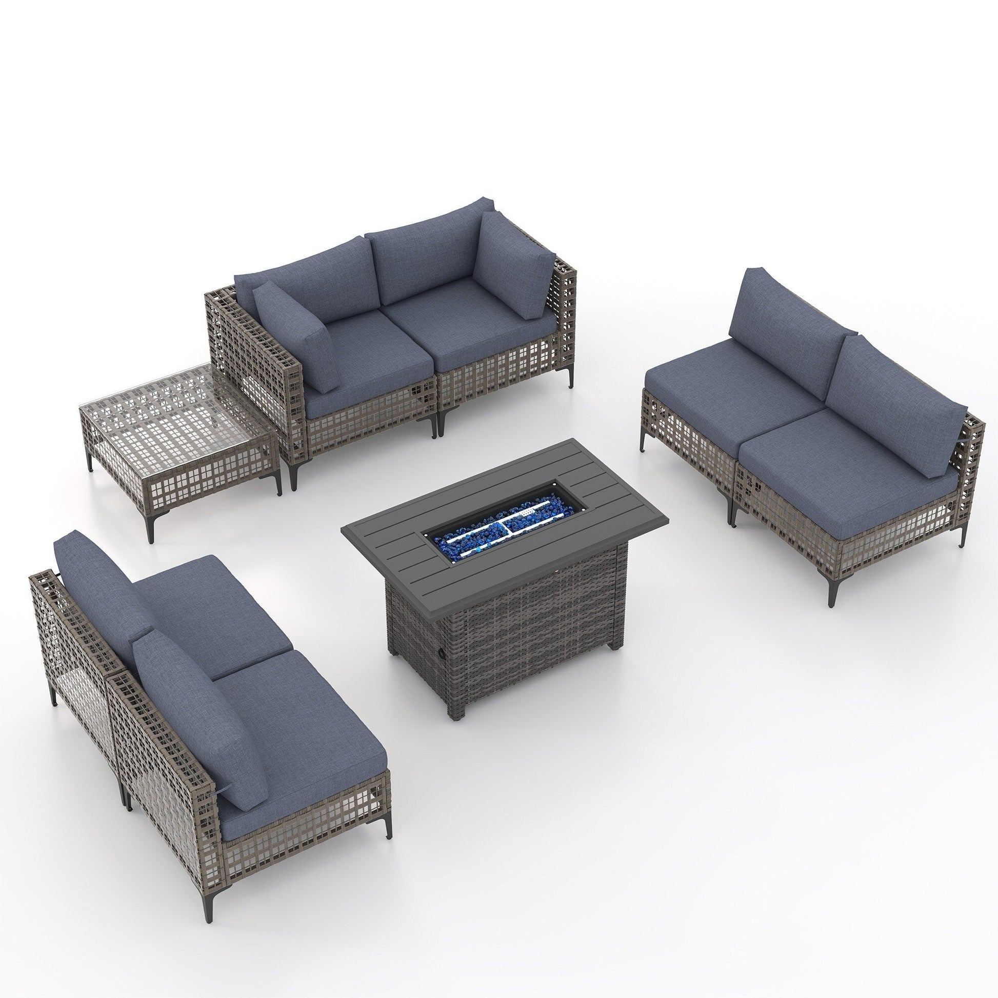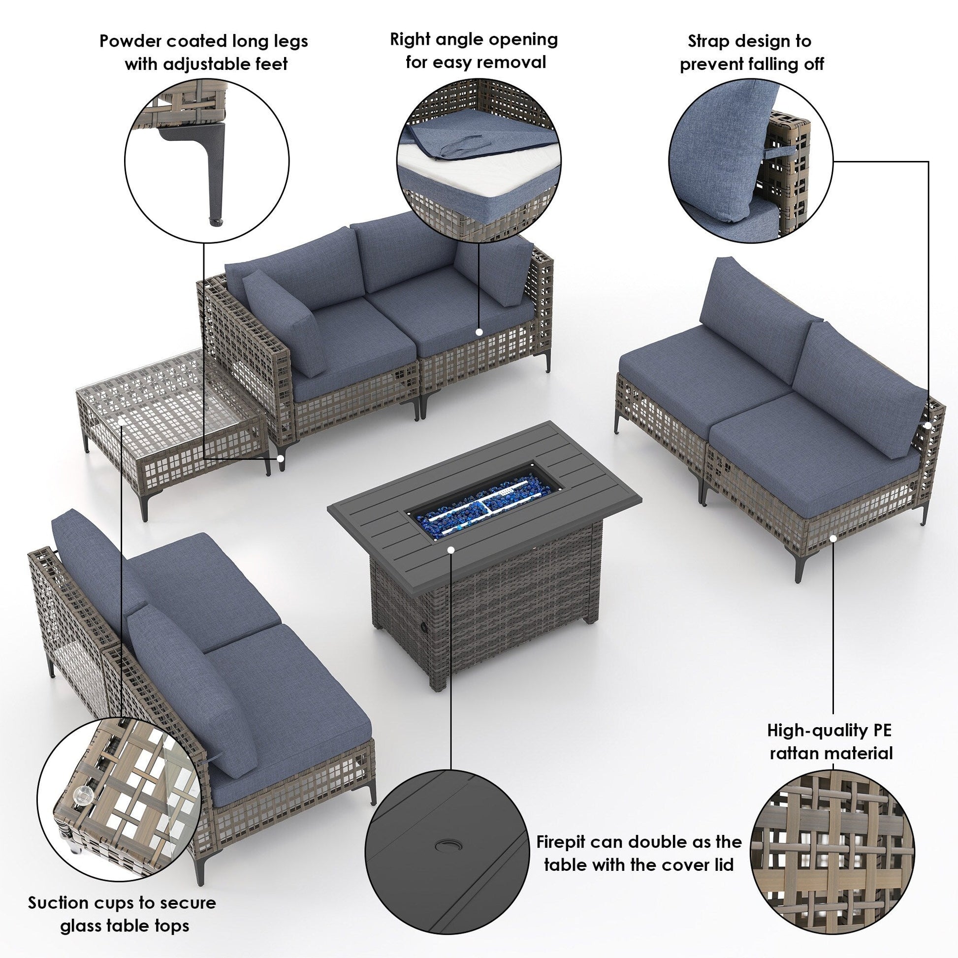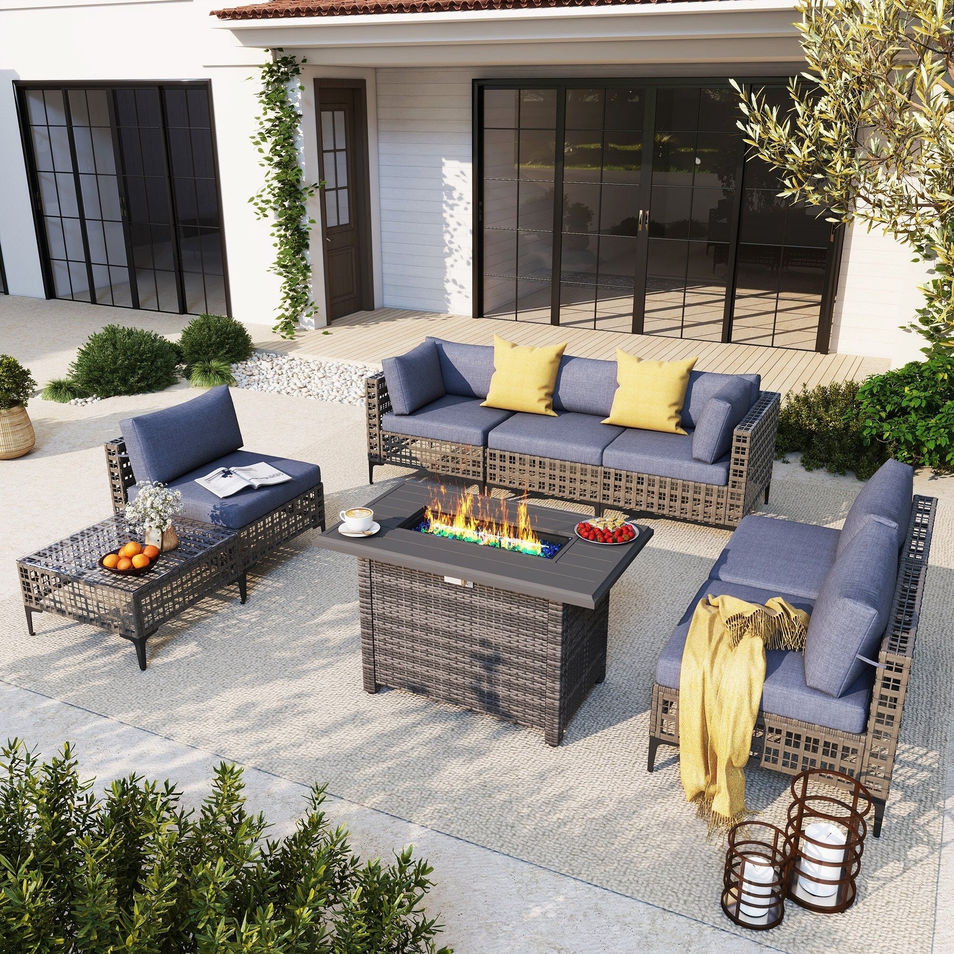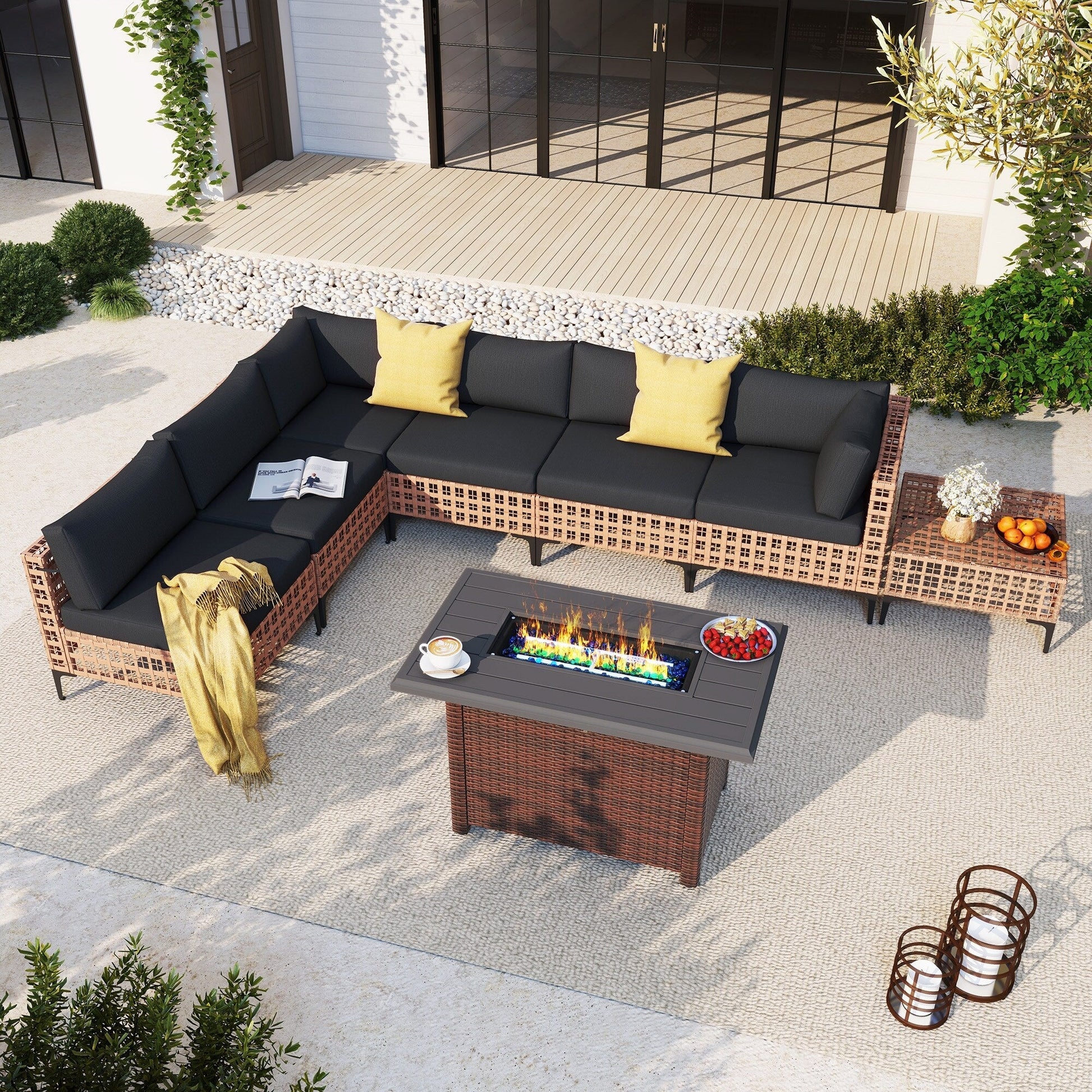 Gruppo di posti a sedere componibili per esterni da 6 persone con braciere