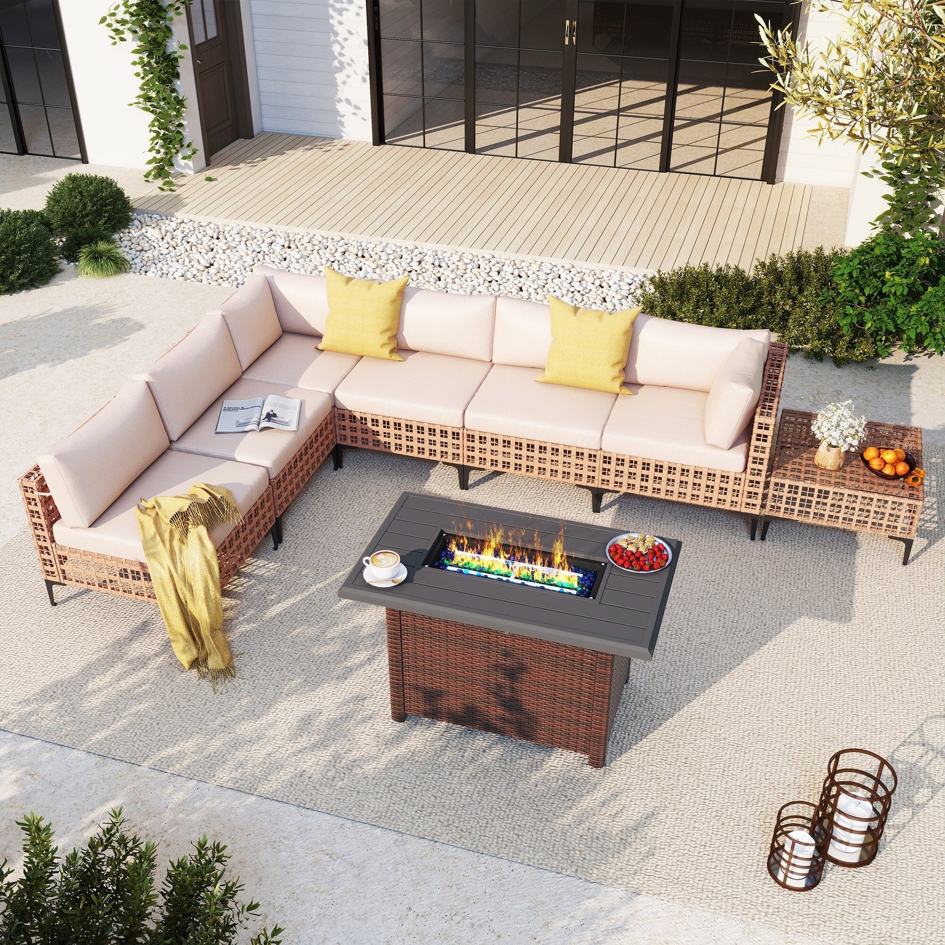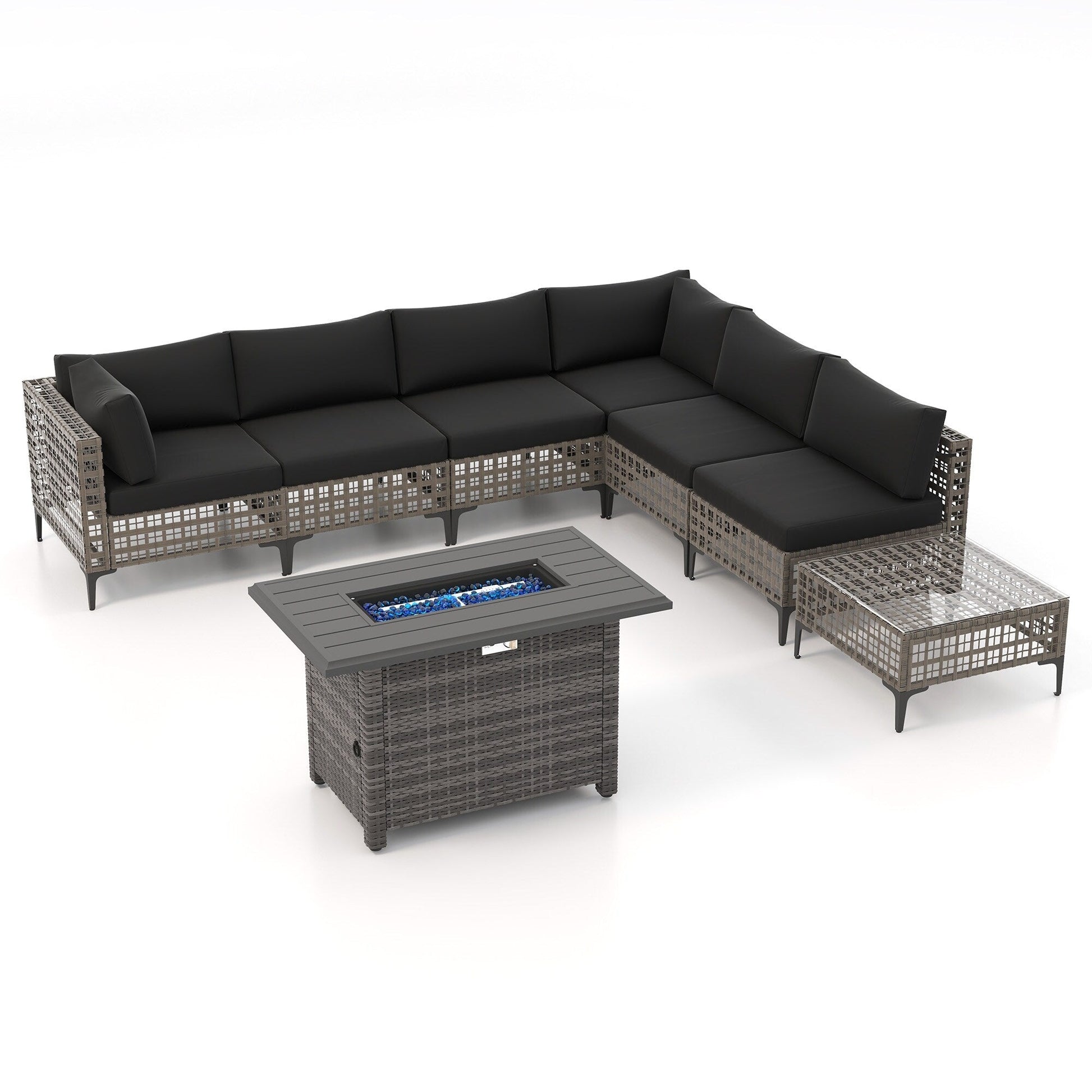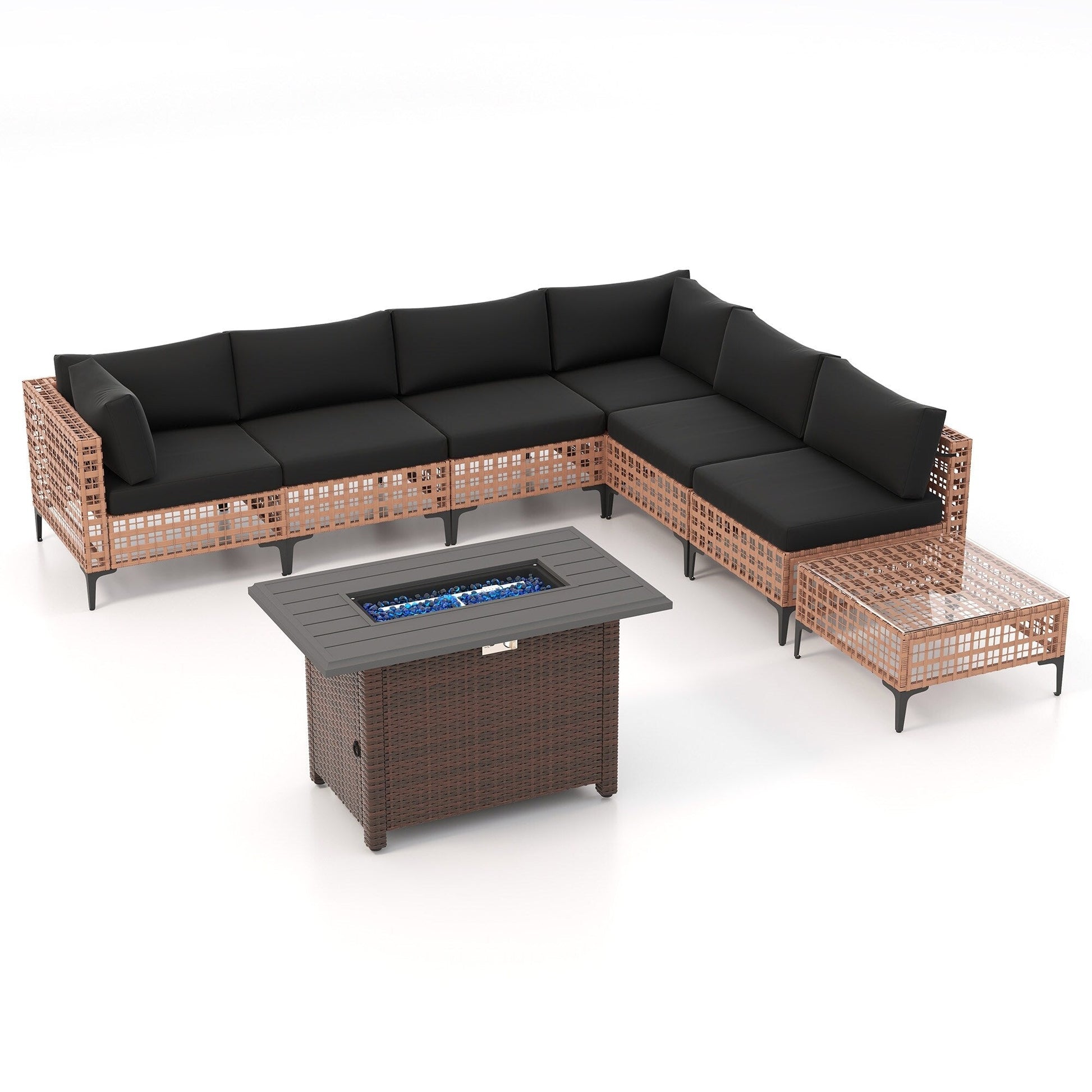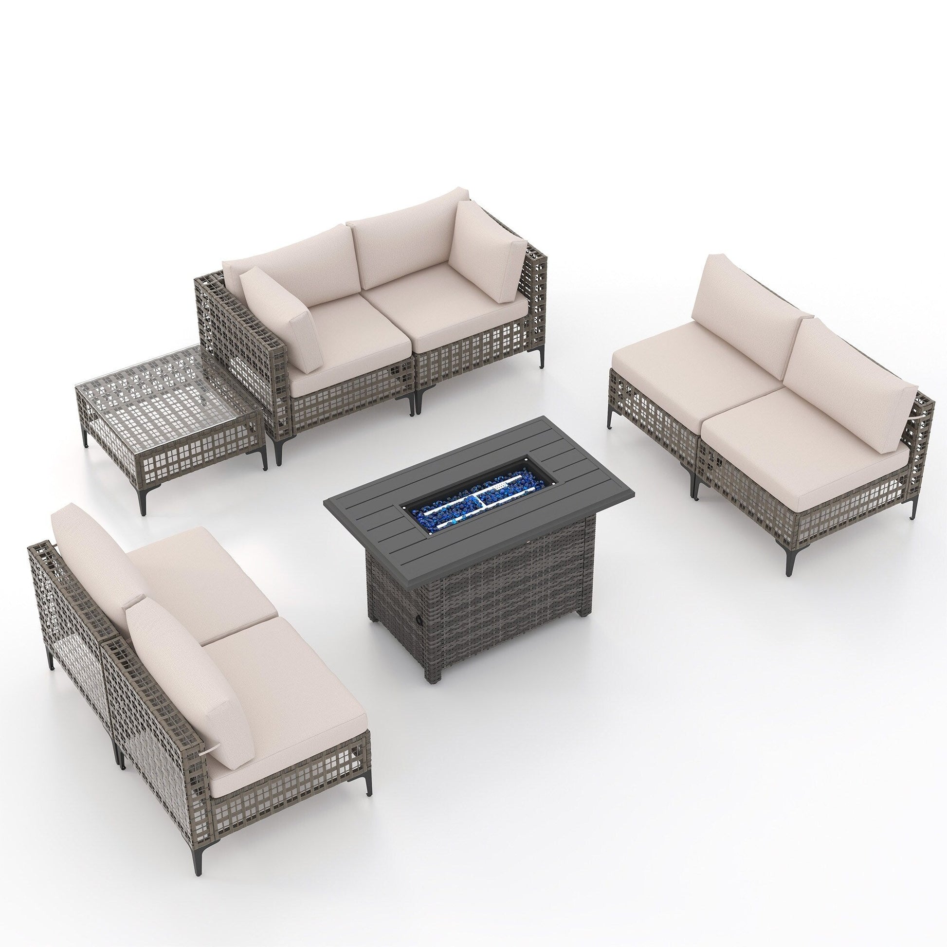Gruppo di posti a sedere componibili per esterni da 6 persone con braciere