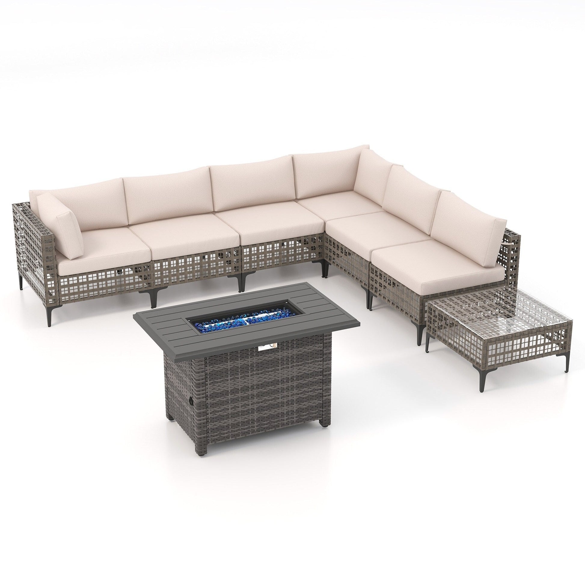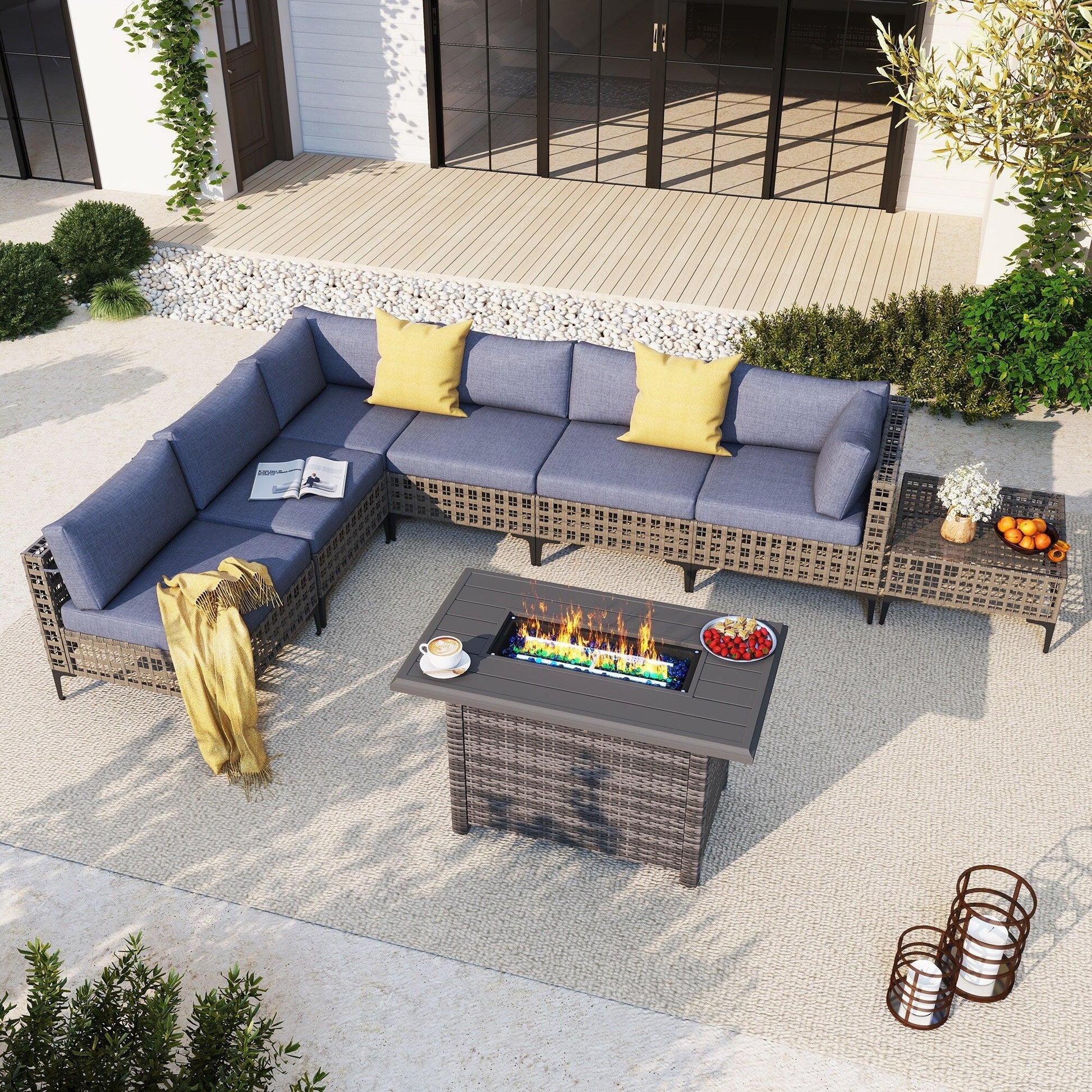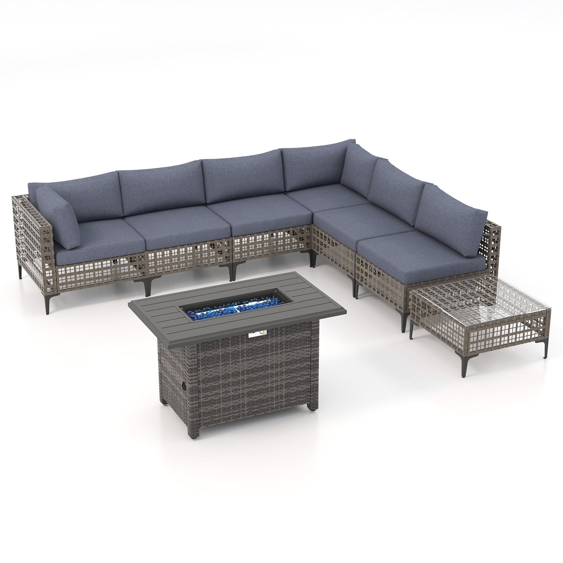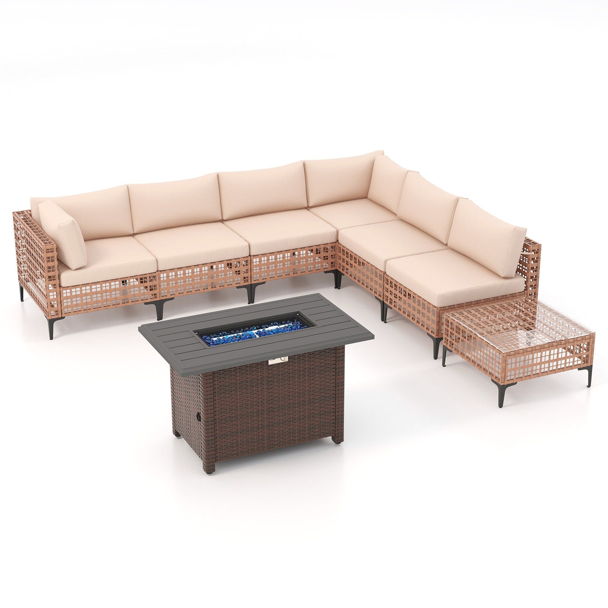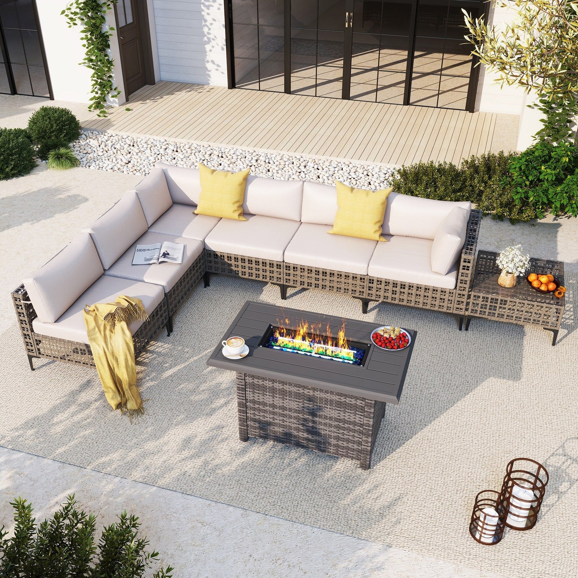 Gruppo di posti a sedere componibili per esterni da 6 persone con braciere