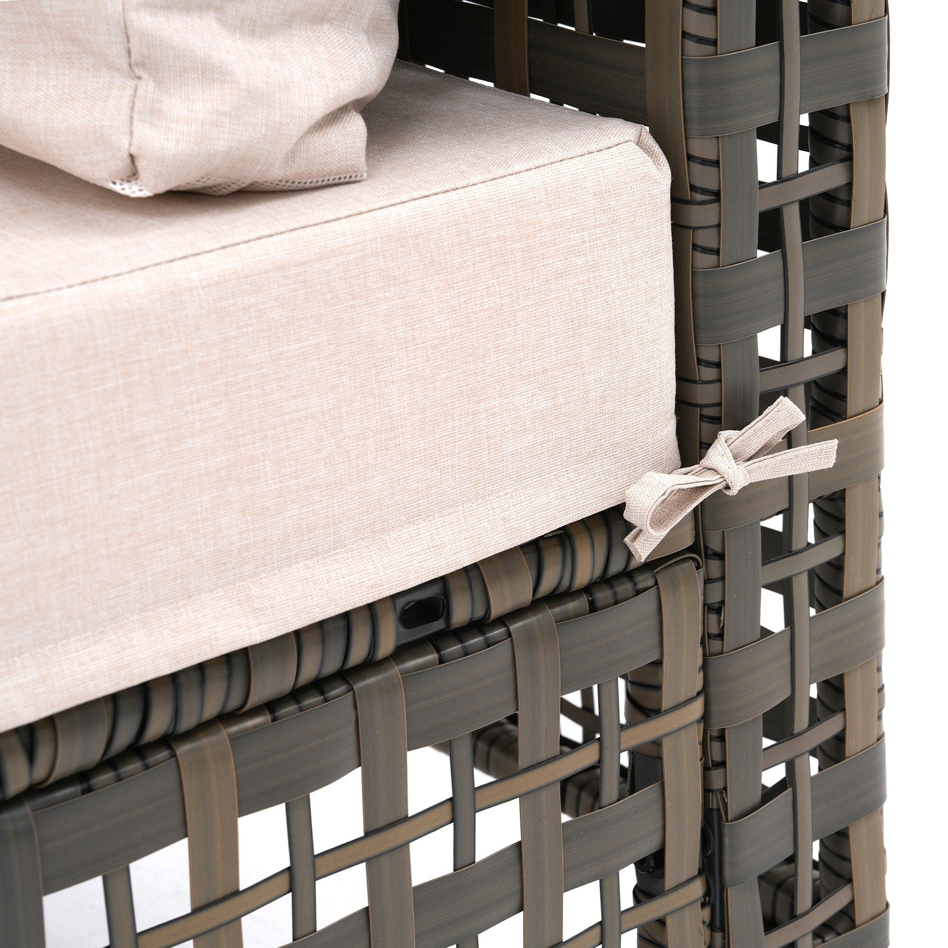Questo divano da esterno è realizzato in rattan PE intrecciato a mano, con una texture naturale e compatta, traspirante, resistente all'umidità e durevole. È realizzato con un cuscino in spugna elastica ad alta densità e una superficie in tessuto tecnico impermeabile, morbida al tatto e facile da pulire. La struttura in rattan adotta un processo di avvolgimento geometrico cavo, leggero e poco ingombrante. Con linee pulite e un coperchio che può essere chiuso e trasformato in un tavolo quando non in uso, il braciere porterà un'atmosfera accogliente al tuo spazio esterno. Disponibile in diversi colori, può essere facilmente integrato nel tuo giardino, balcone o terrazza per creare un angolo relax confortevole e naturale.