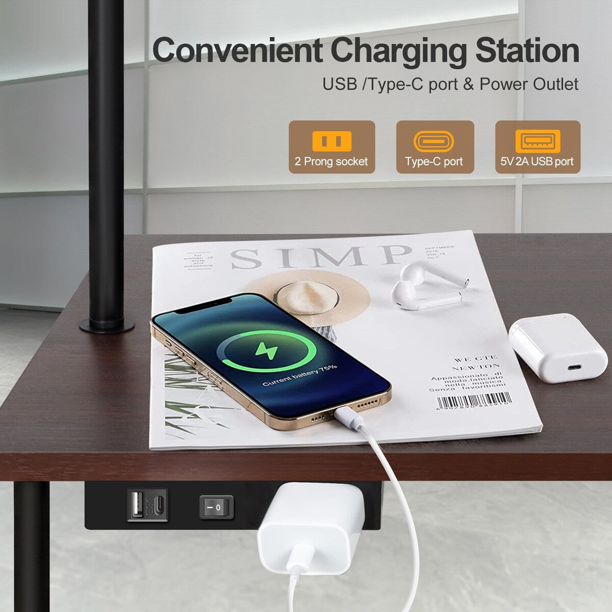 Lampada da terra da 62 pollici con scrivania portariviste - Stile cassetto
