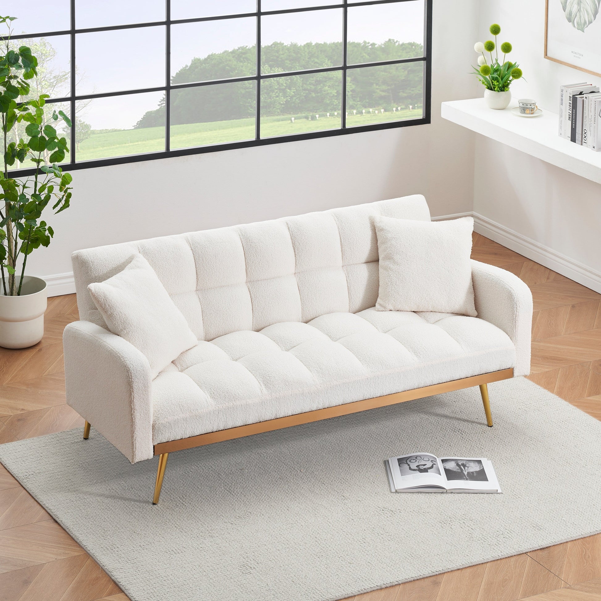 Divano letto beige da 69 pollici con divano...