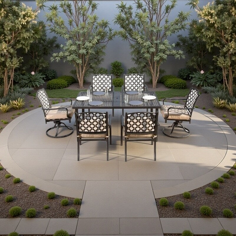 Provate un comfort eccezionale e uno stile senza tempo con il nostro set da pranzo da 7 pezzi per patio, caratterizzato da una robusta struttura in ferro progettata per la massima durata e stabilità. Ogni sedia vanta una seduta spaziosa con morbidi cuscini multistrato e braccioli curvi che vi coccoleranno in totale relax. La finitura bronzo anticato vintage con un classico motivo scozzese aggiunge un tocco di eleganza a qualsiasi ambiente esterno o interno. Il tavolo rettangolare è progettato con cura e dotato di fori di drenaggio per prevenire l'accumulo di pioggia e può ospitare comodamente più di quattro persone. Realizzato per resistere a diversi climi e resistere a sporco e crepe, questo set promette bellezza e comfort duraturi per le vostre riunioni all'aperto o per i vostri pranzi al chiuso.