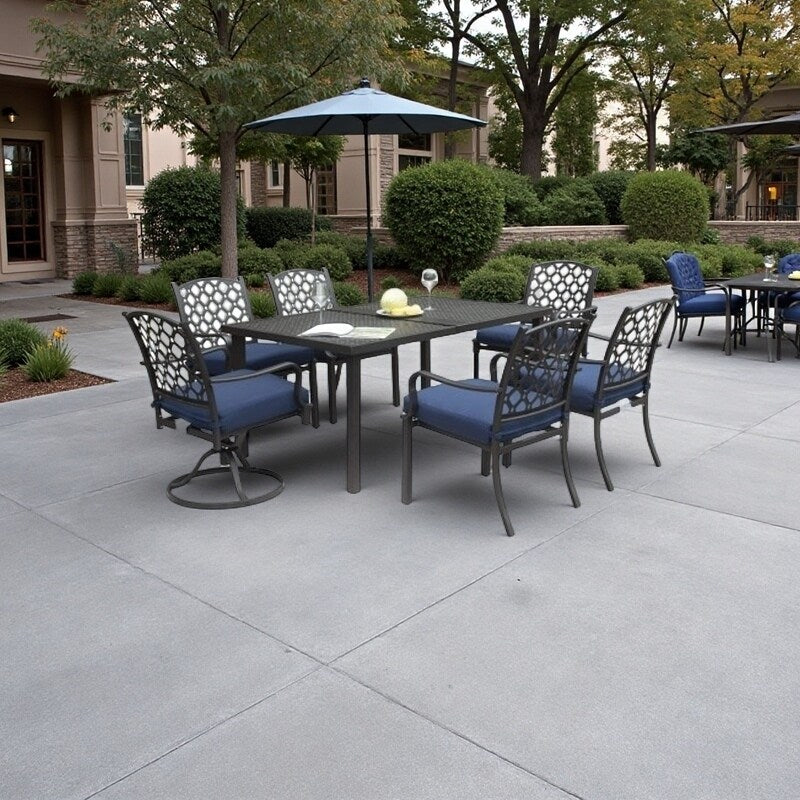 Set da pranzo per esterni in metallo da 7 pezzi con sedie girevoli e fisse e tavolo rettangolare resistente alle intemperie