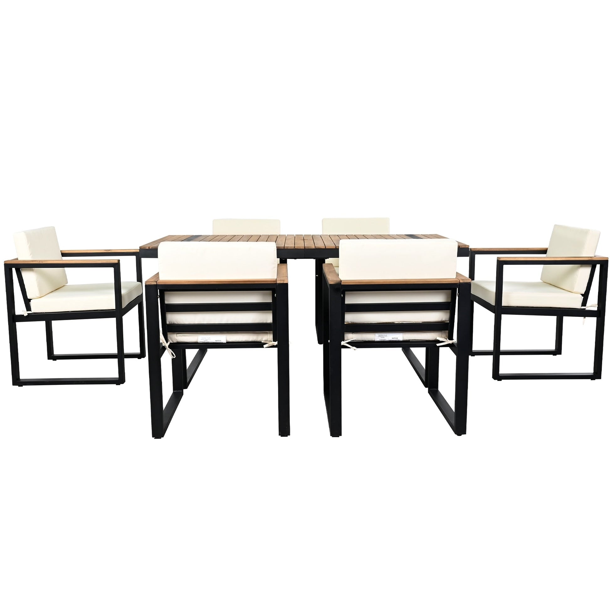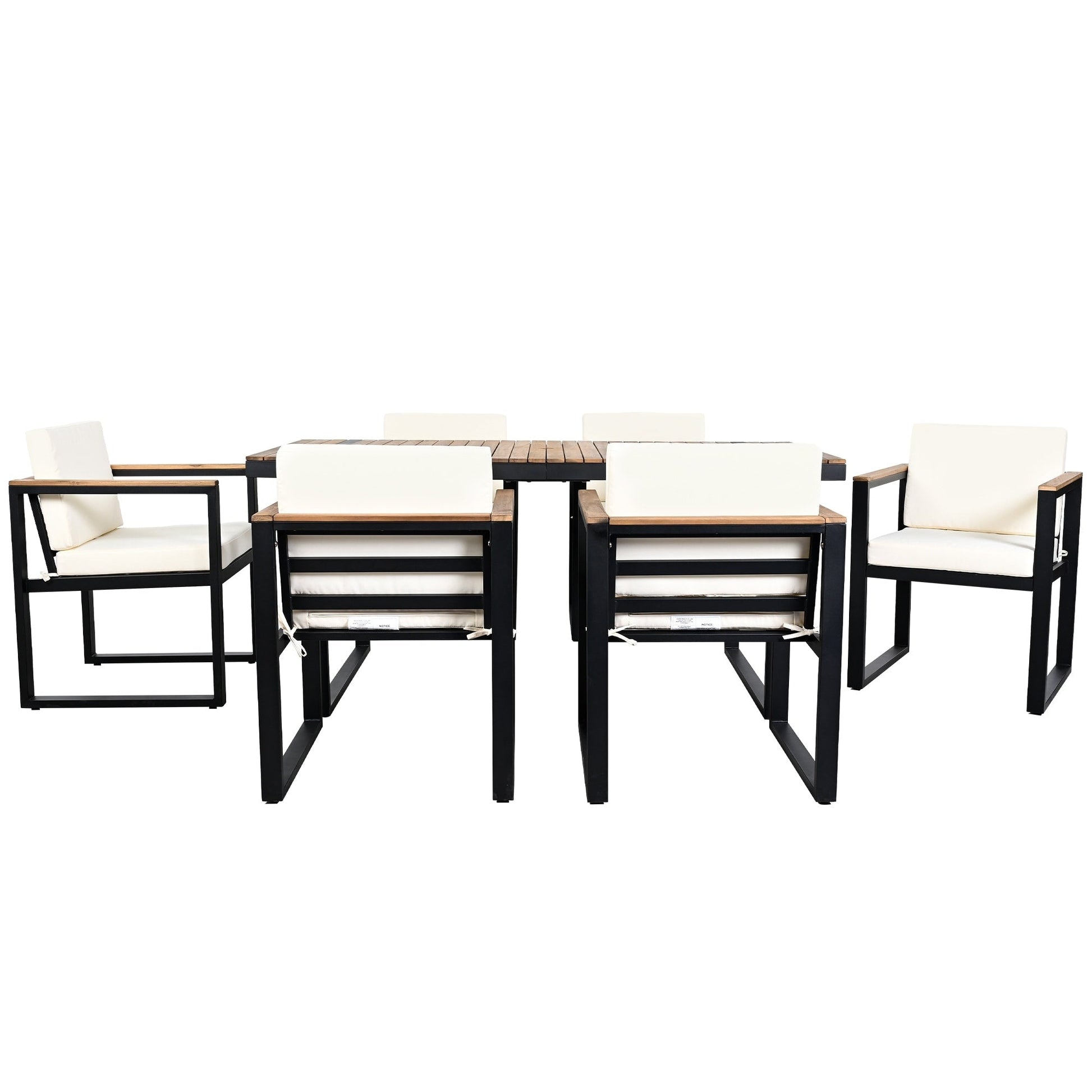 • Struttura in legno di acacia e acciaio - La struttura complessiva del set da pranzo è realizzata con una combinazione di legno di acacia di alta qualità e acciaio, garantendo durevolezza e stabilità. La struttura in acciaio fornisce una solida base, mentre il legno di acacia aggiunge un tocco naturale ed elegante al design, perfetto per gli ambienti esterni.