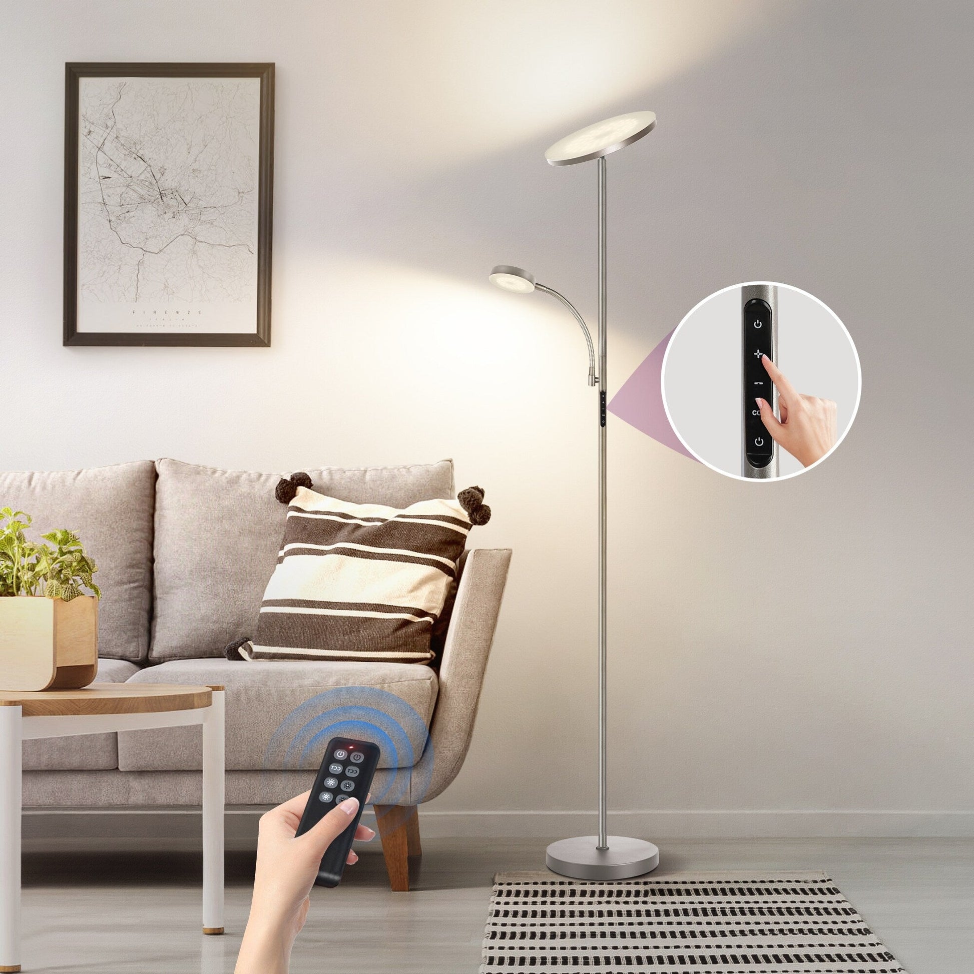 Lampada da terra Torchiere a 70 LED con controllo touch e telecomando - N/D