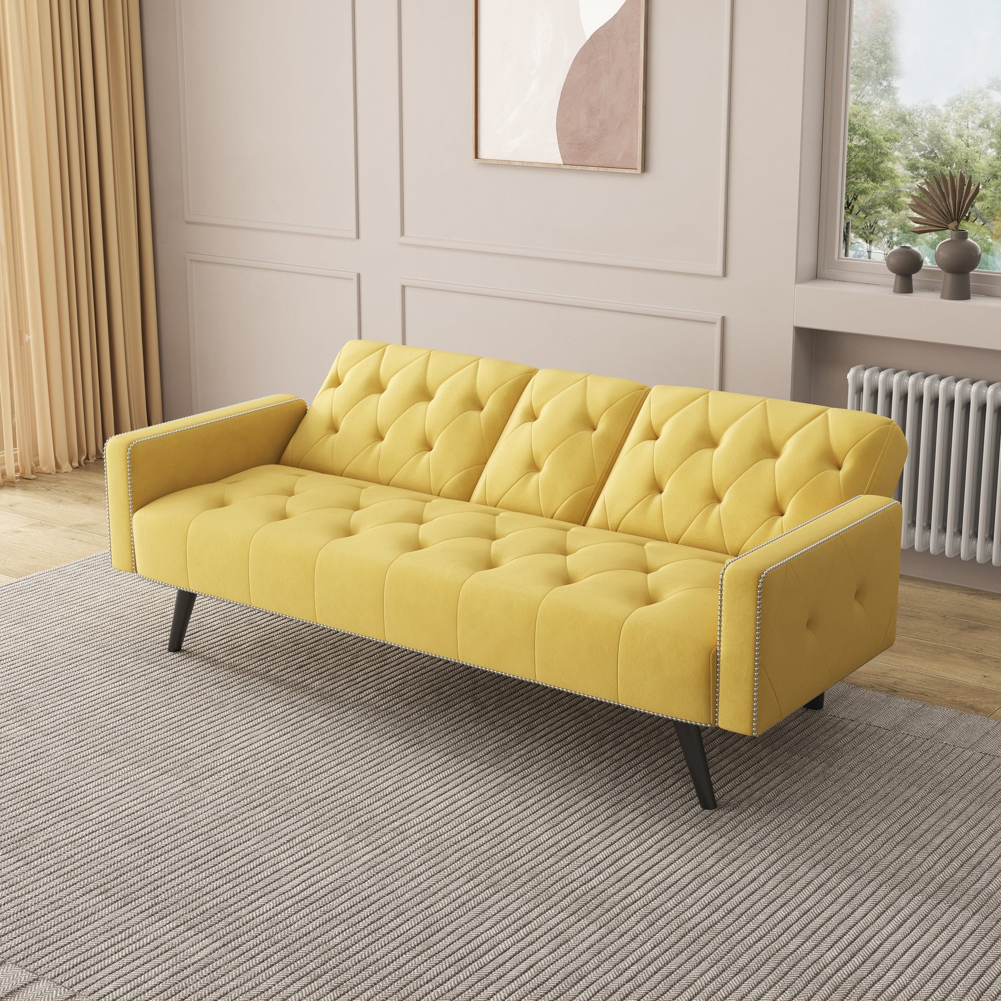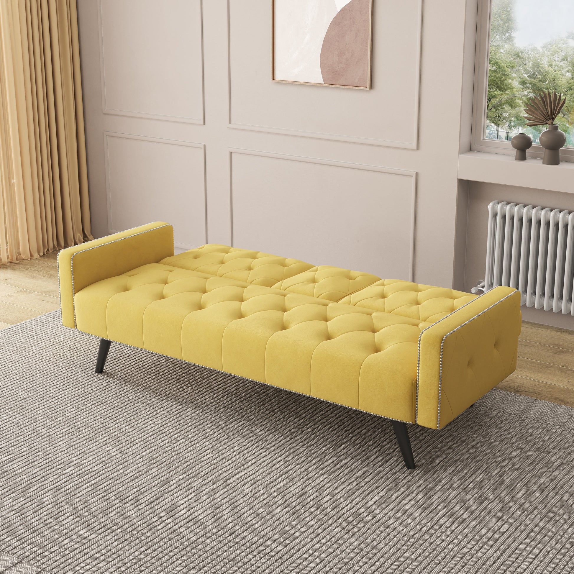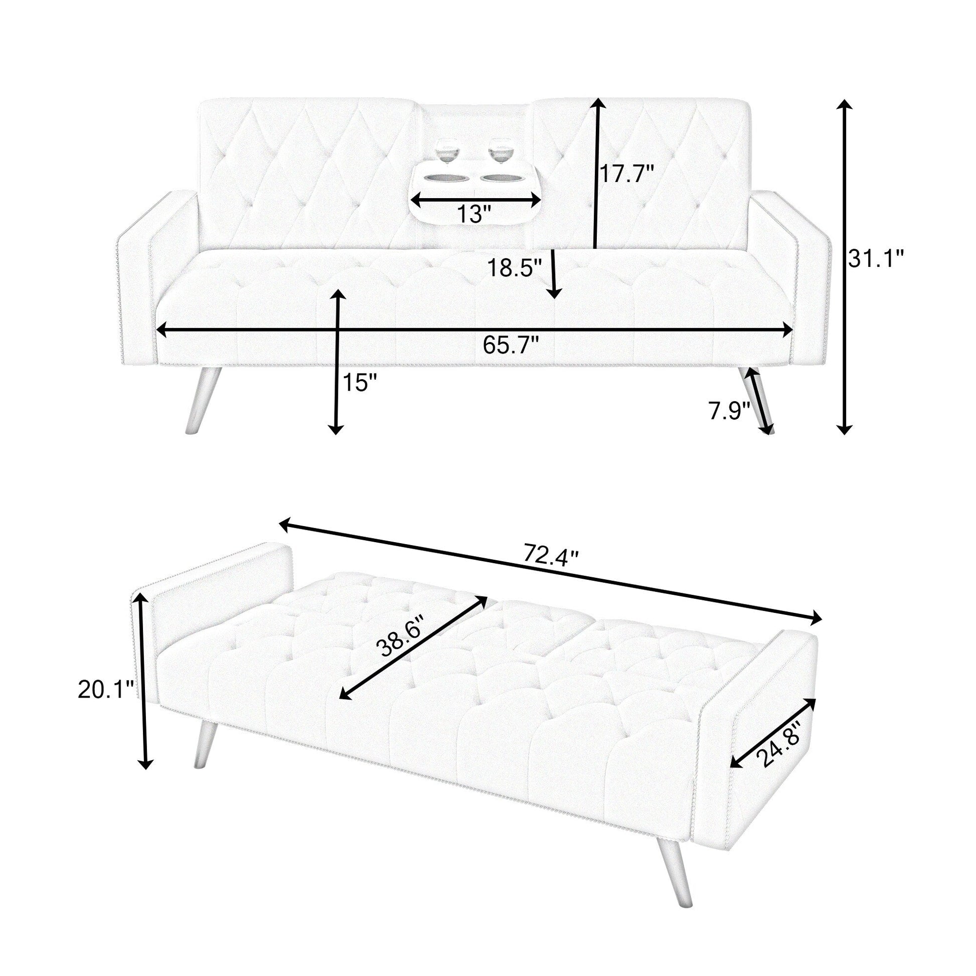 Divano letto in velluto a 3 posti con borchie e portabicchieri per soggiorno